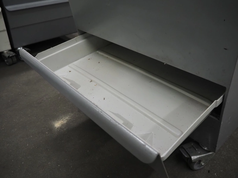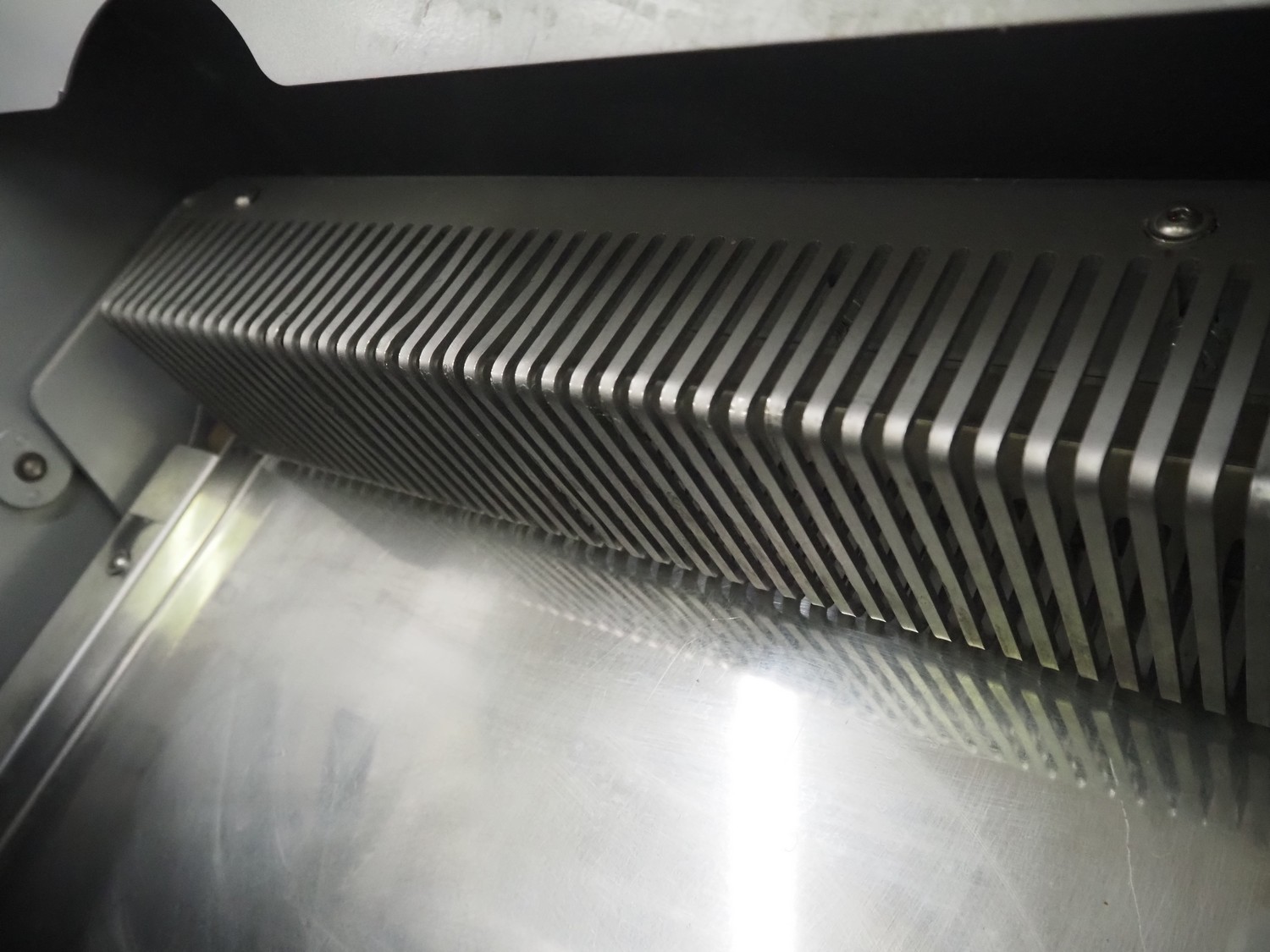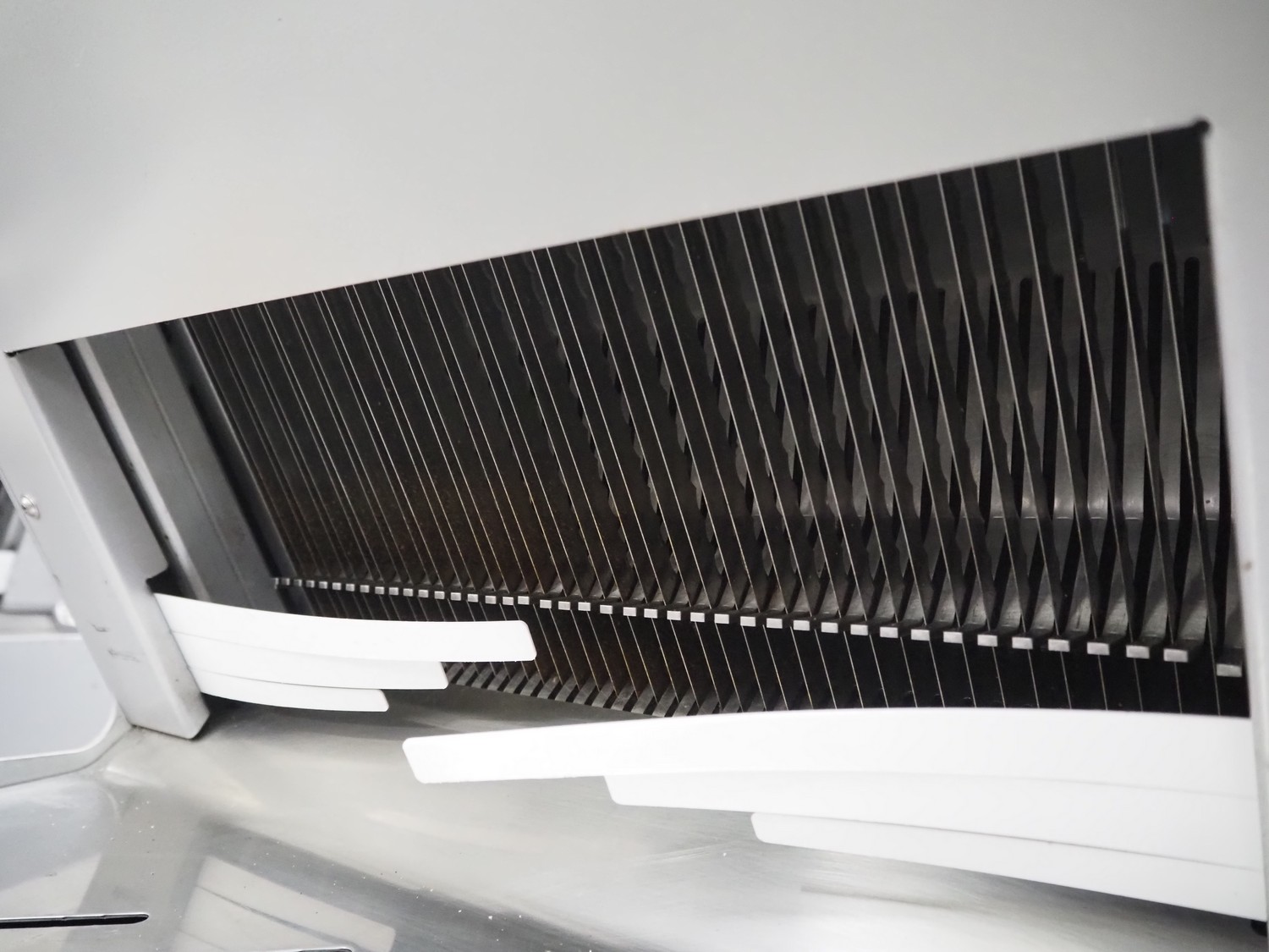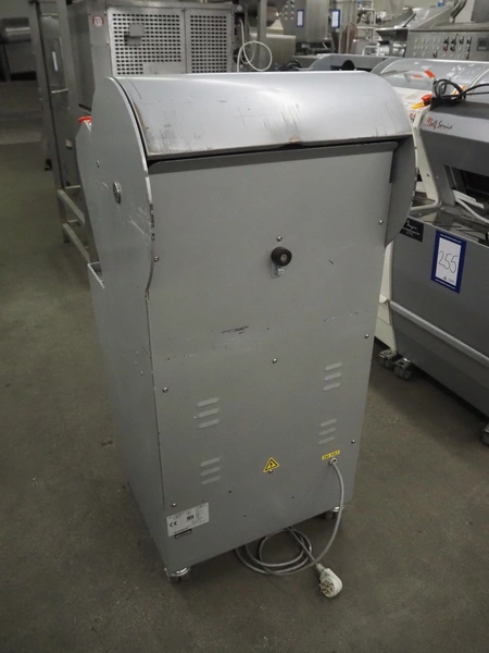 Jac mobile bread slicer, model: SLD 450/10, machine number: 10/8055/01, 400 V, 3 Ph, 50 Hz, 1.8 A, 0.49 kW, weight: 180 kg, working width: 440 mm, 41 knifes, distance between knifes: 10 mm, total dimensions: 700 mm x 600 mm x 1300 mm.