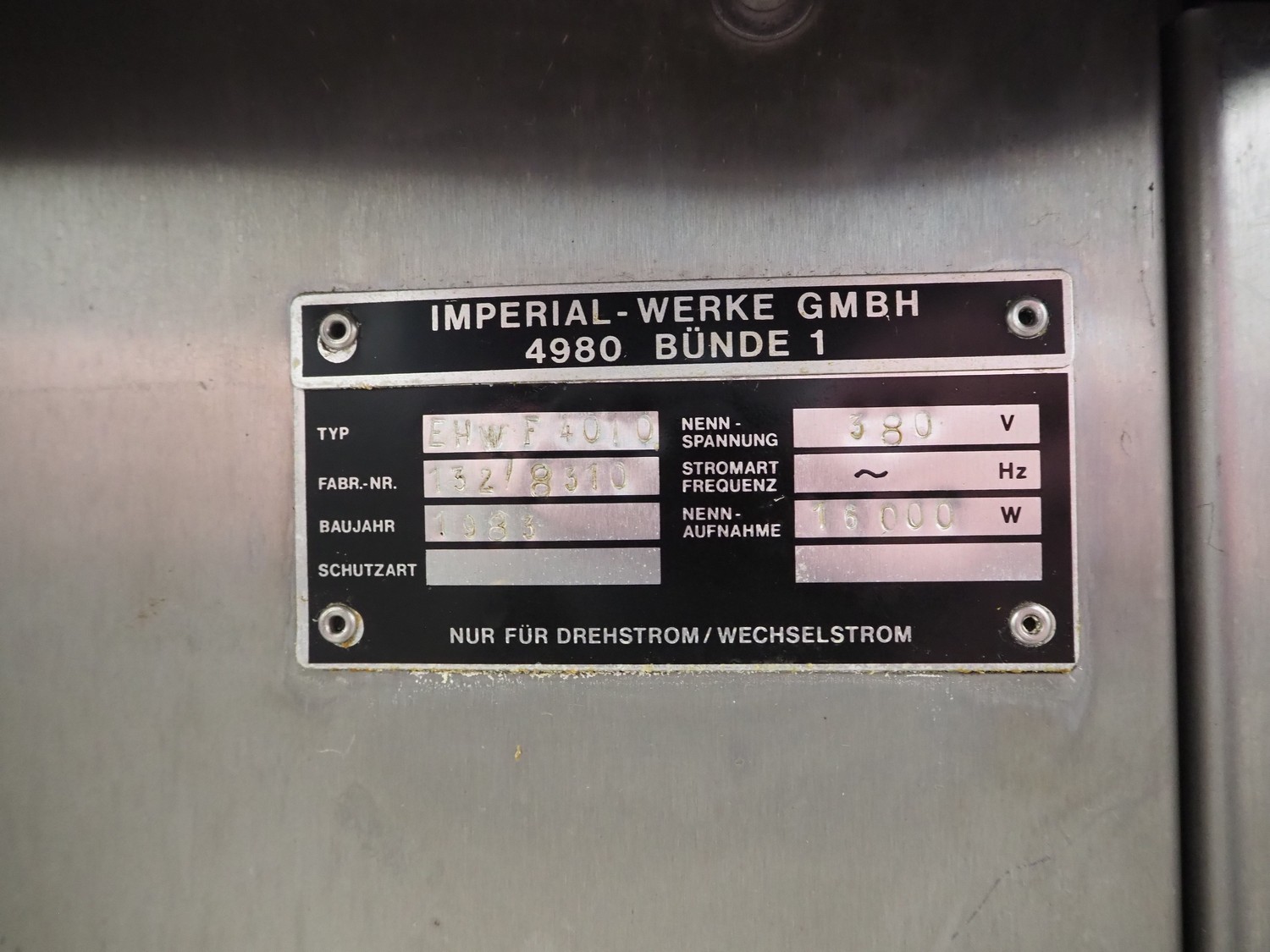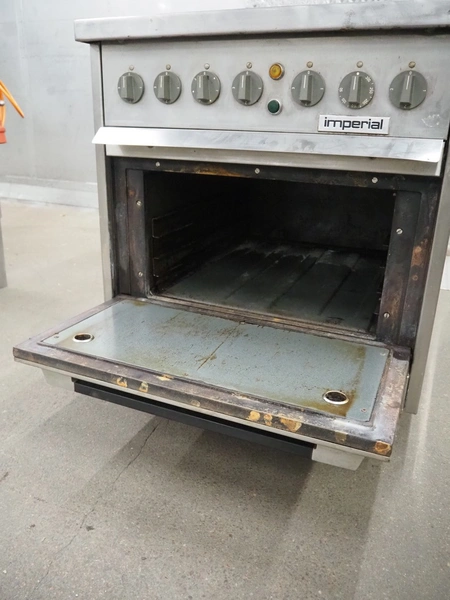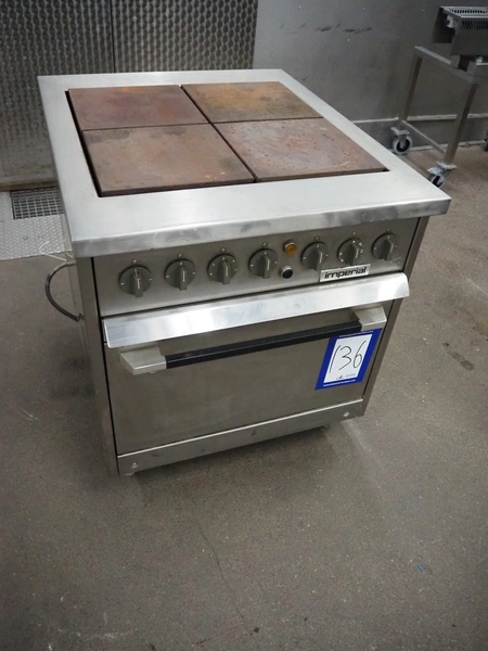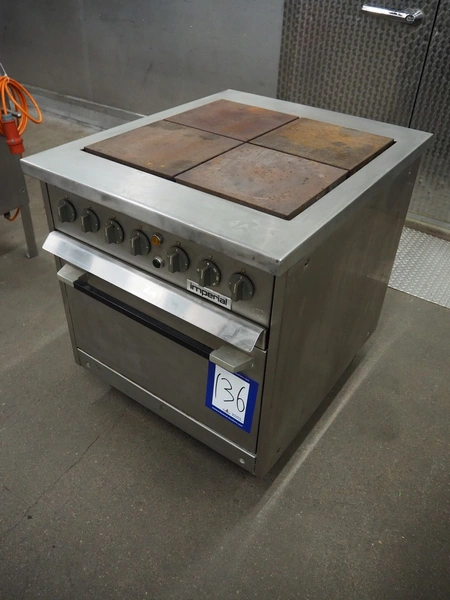 Imerial-Werke GmbH 4-pits stove with oven, type: EHWF4010, fabrication number: 132/8310, year of construction: 1983, 380 V, 16000 Watt, electric heated, dimensions: 900 mm x 750 mm x 860 mm.