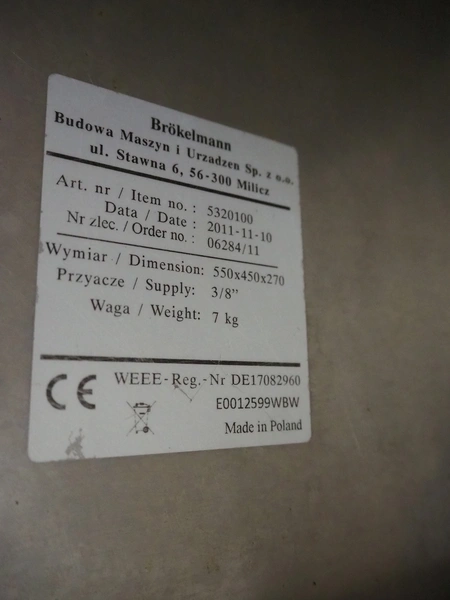 Brökelmann s/s sink with faucet, item number: 5320100, year of construction: 10-11-2011, weight: 7 kg, dimensions: 550 mm x 450 mm x 400 mm.
