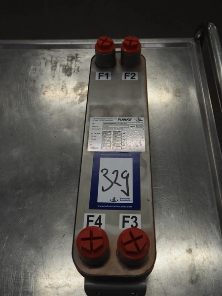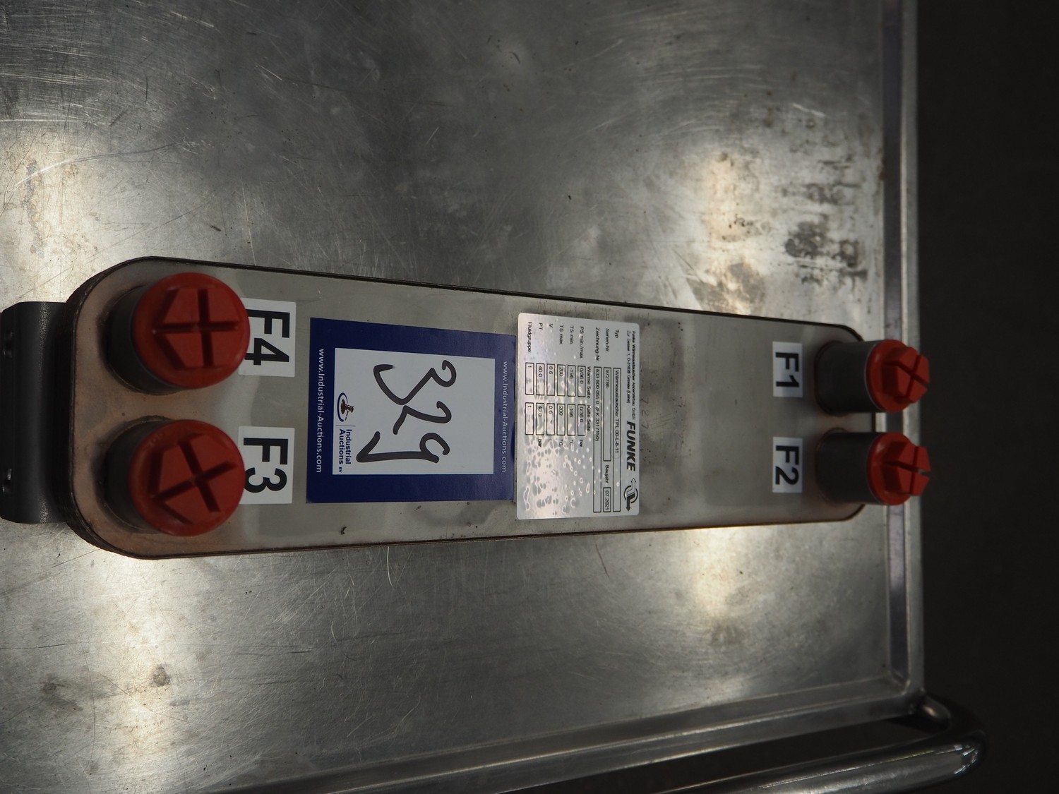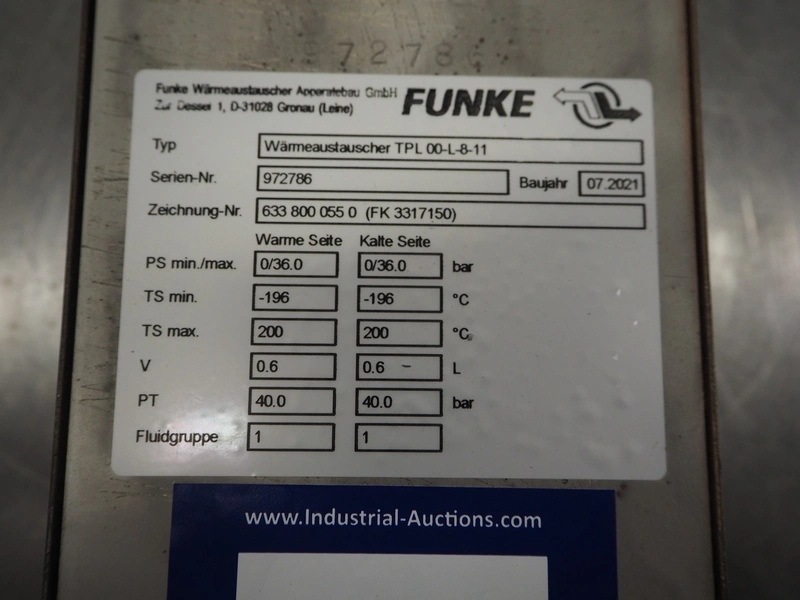Funke heat exchanger, type: Wärmeaustauscher TPL 00-L-8-11, serial number: 972786, year of construction: 07-2021, dimensions: 450 mm x 120 mm x 120 mm.