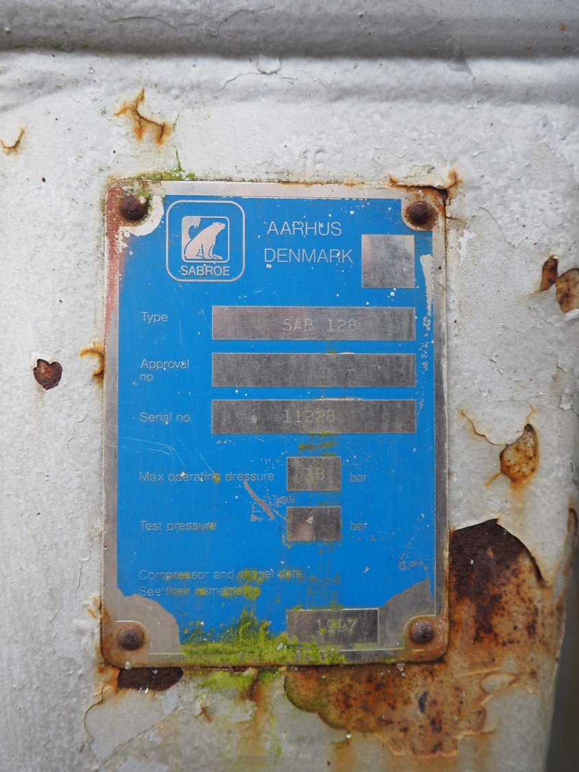 Sabroe screw compressor, type: SAB 128, serial number: 11228, year of construction: 1997, dimensions: 1500 mm x 2300 mm x 1900 mm.