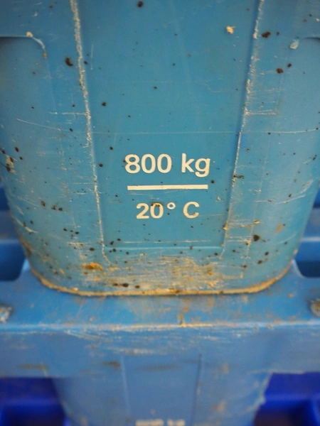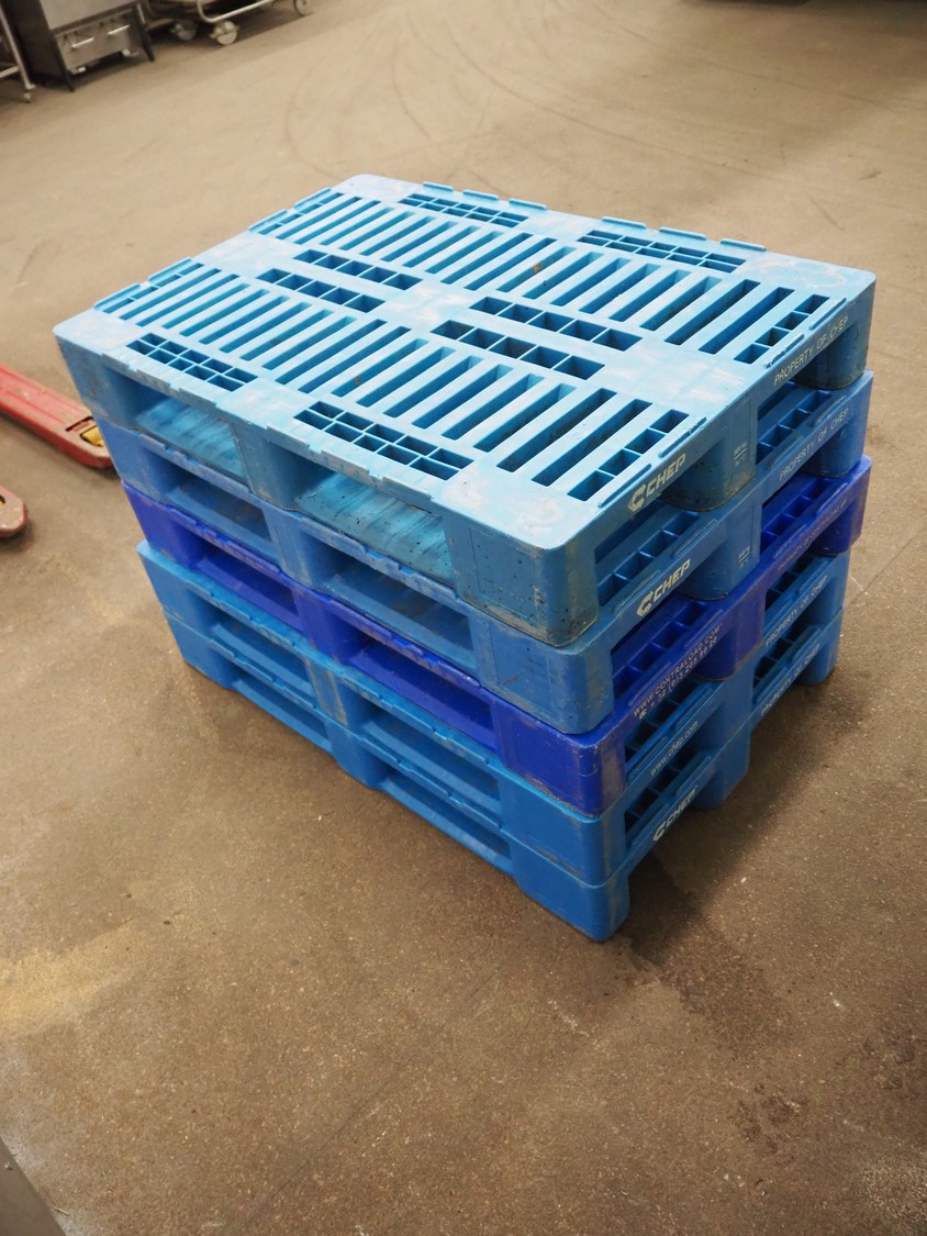 5 CHEP plastic pallets, dimensions: (5x) 1200 mm x 800 mm.