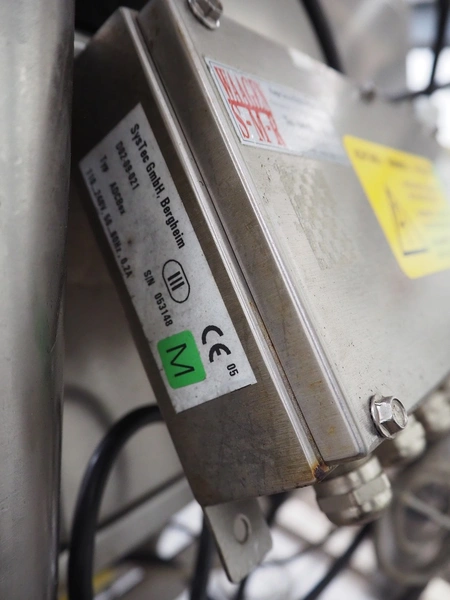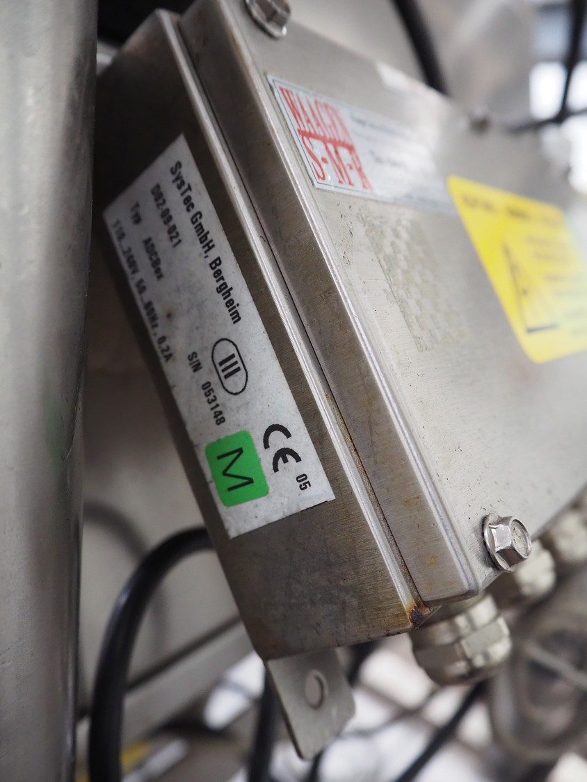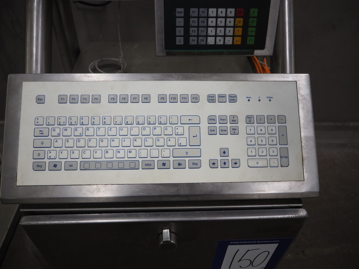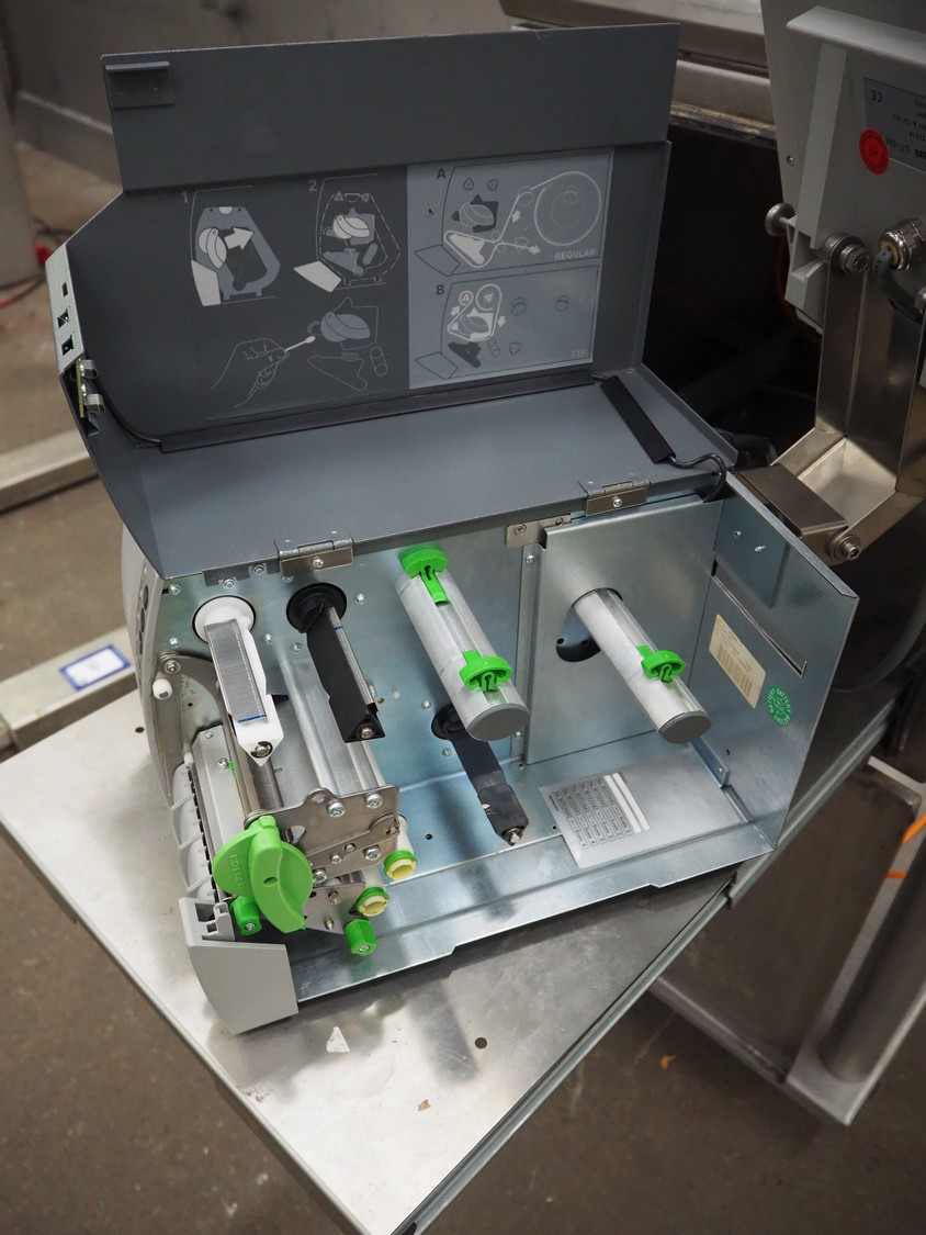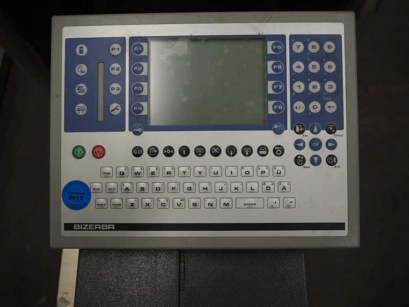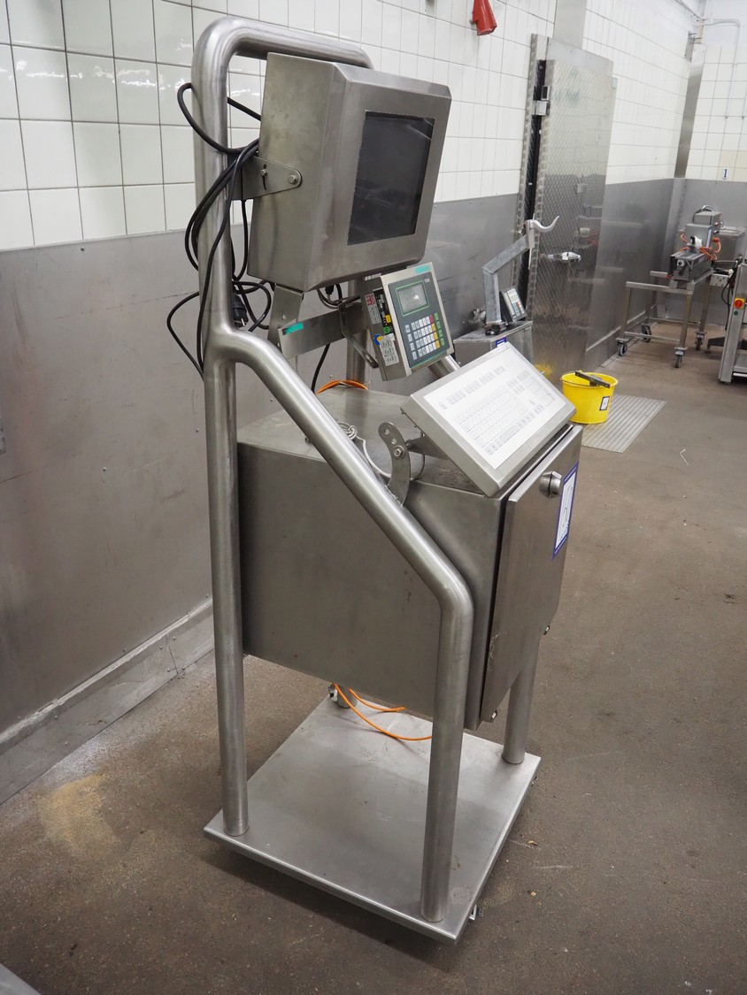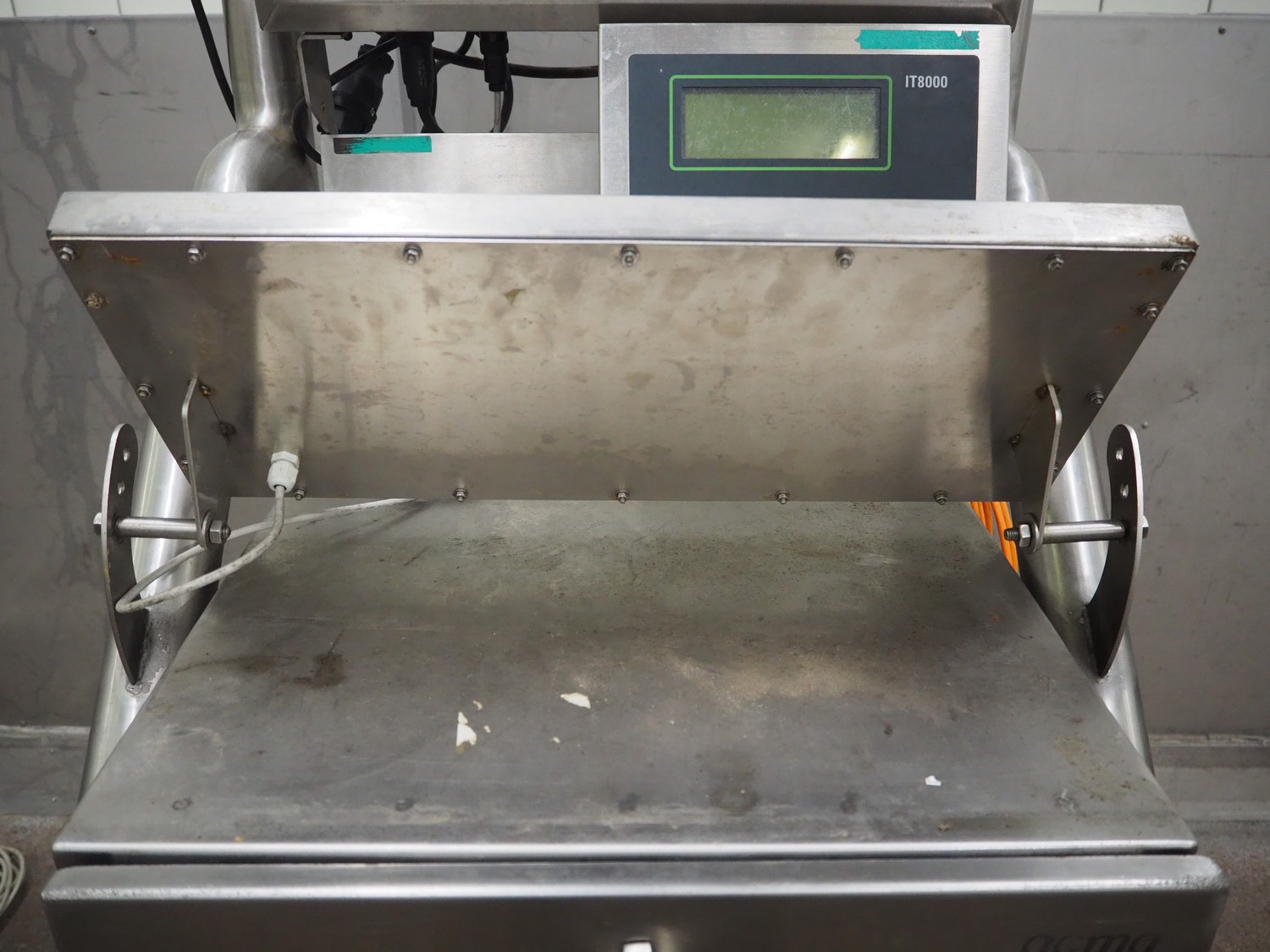 Bizerba pallet weighing scale with indicator and labelling machine, type indicator: GT-6M, number: 10722578, type labelling machine: GLP-W, number: 11000801, maximum weight: 6/15/30 kg, minimum weight: 40 gram, e= 2/5/10 gram, 230 V, 50 Hz, 0.65 A, dimensions scale: 1250 mm x 640 mm x 1850 mm, dimensions s/s cabinet: 650 mm x 640 mm x 1850 mm.