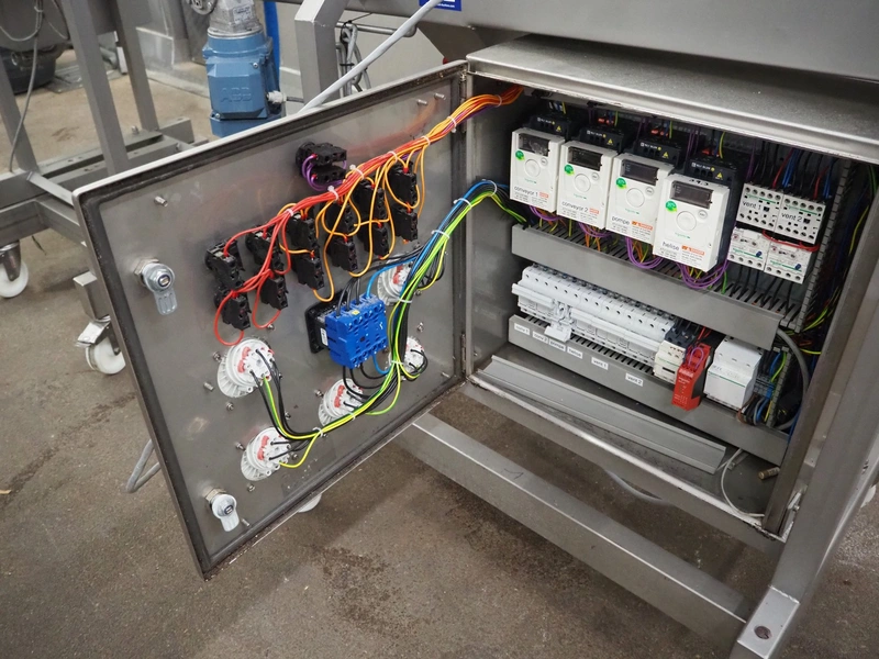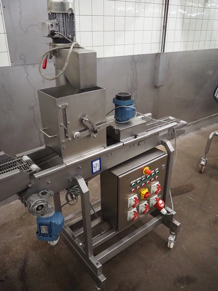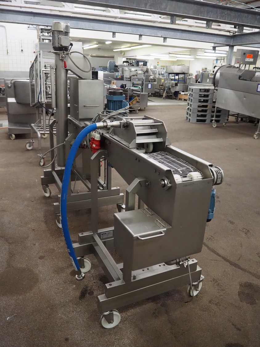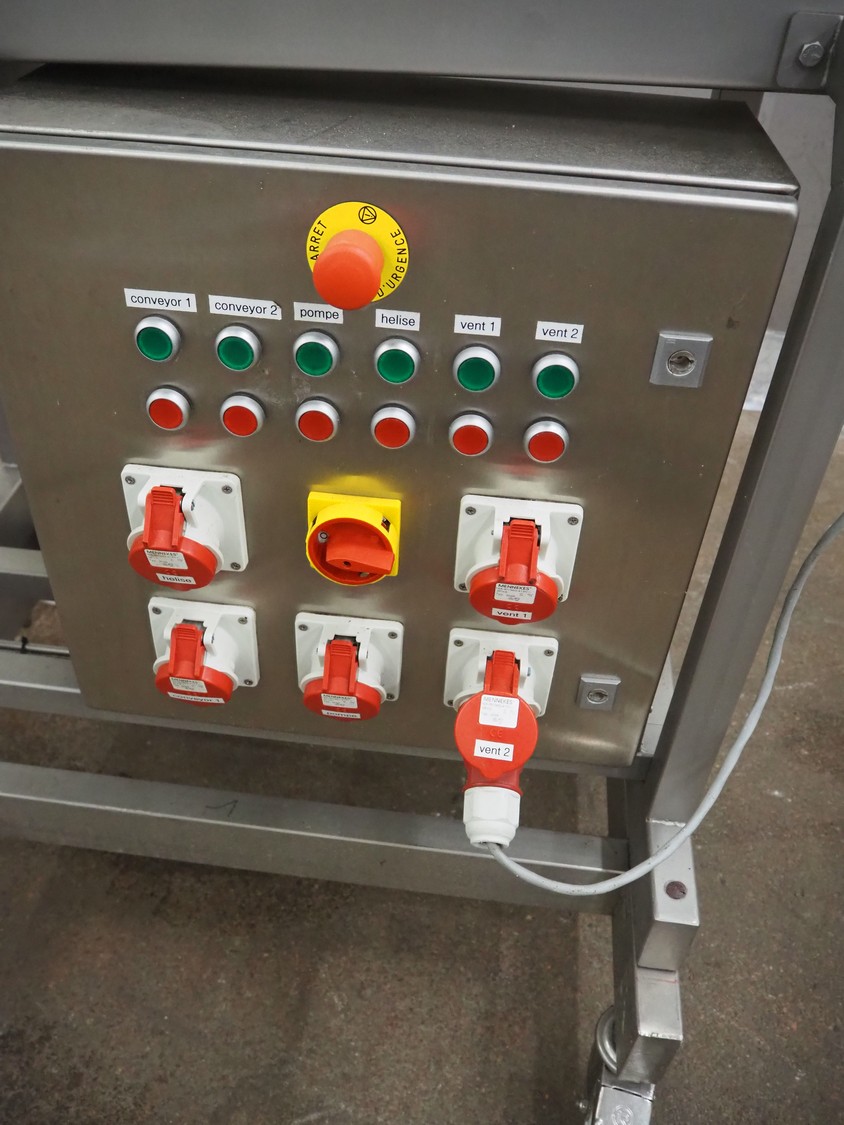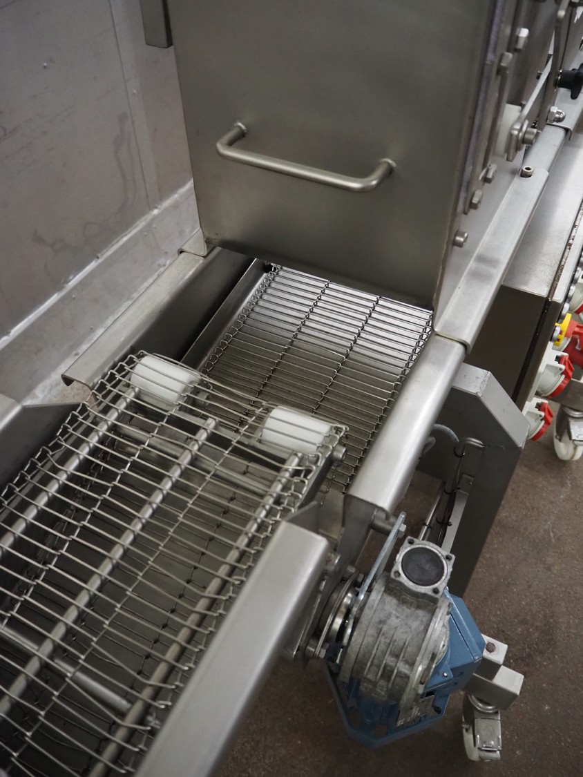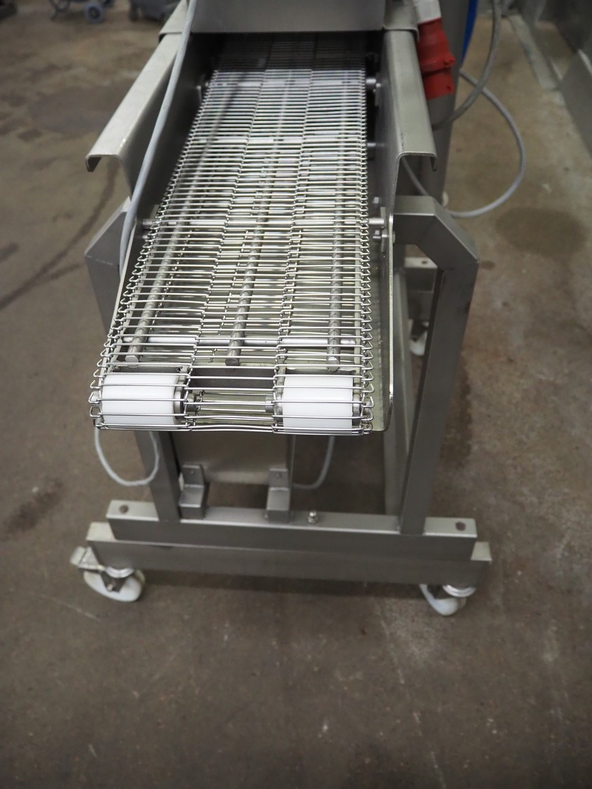 B.R.E. breading line consisting of mobile coating machine, type: E.W., serial number: 5235, year of construction: 2014, s/s mesh belt, belt width: 200 mm, dimensions coating machine: 1400 mm x 760 mm x 1400 mm and mobile breading machine, type: PAN, serial number: 5236, year of construction: 2014, s/s mesh belt, belt width: 200 mm, dimensions breading machine: 1500 mm x 760 mm x 1700 mm.