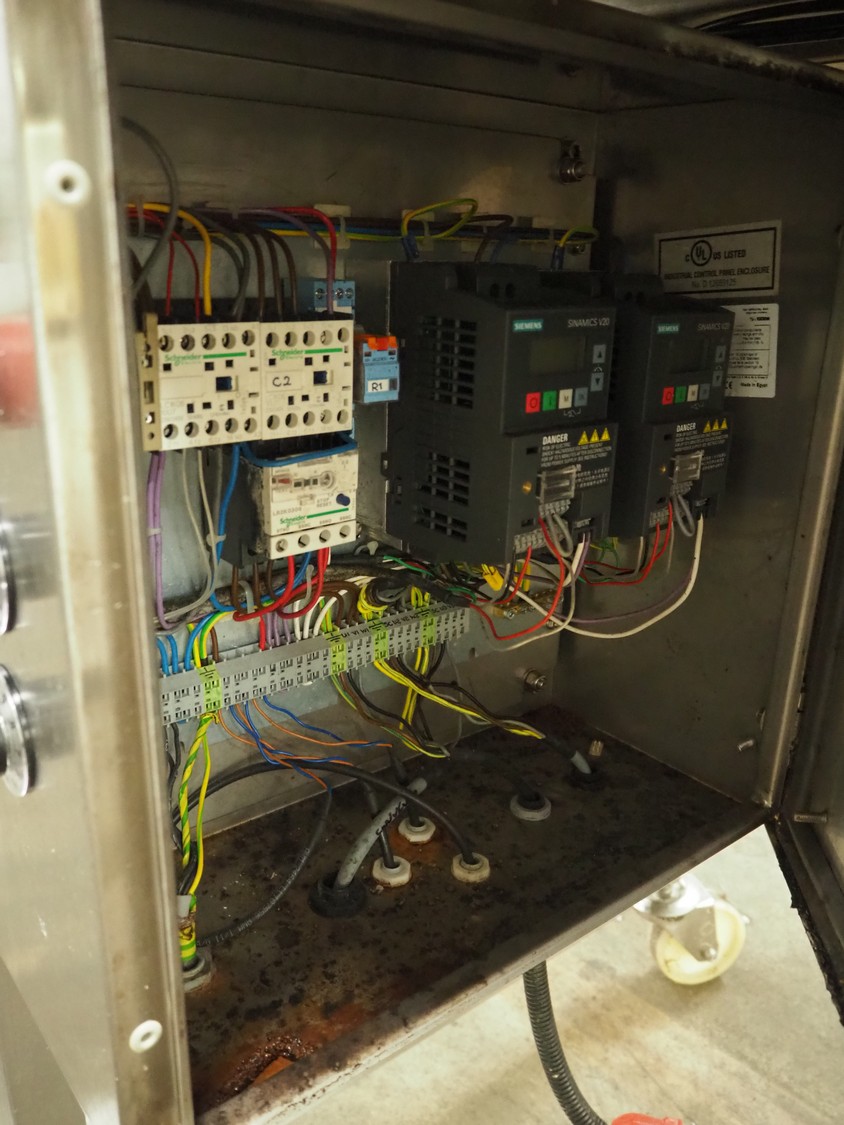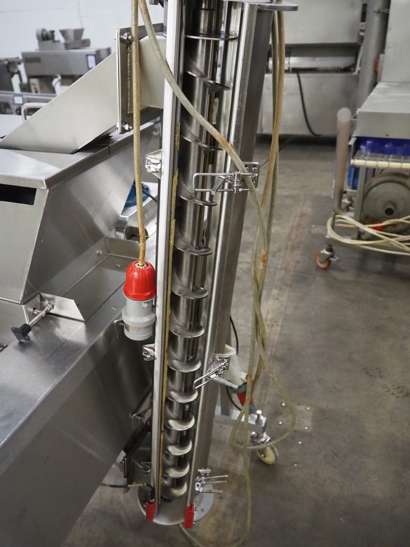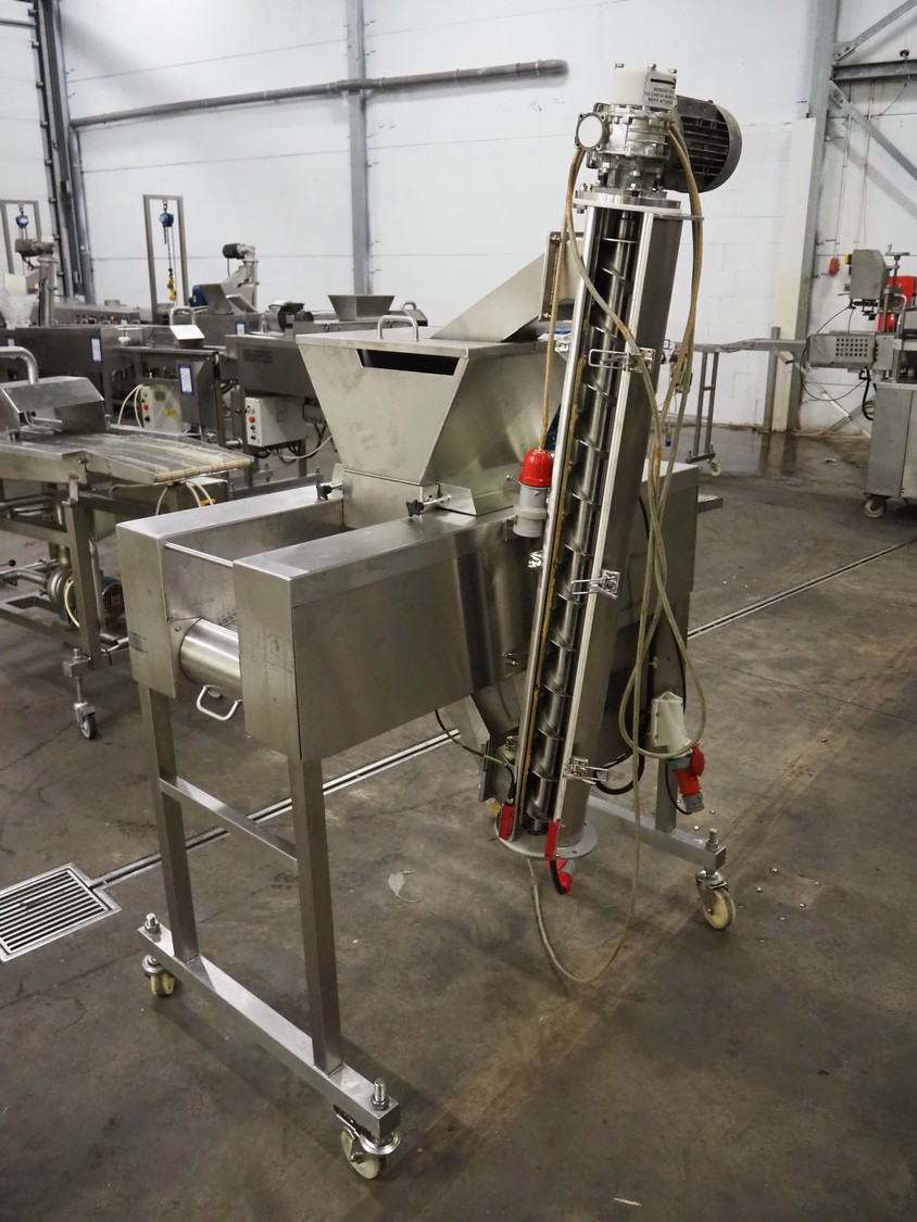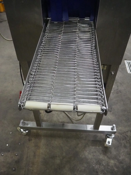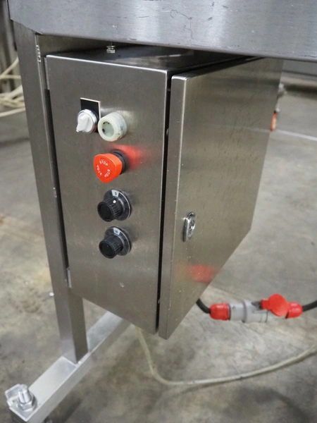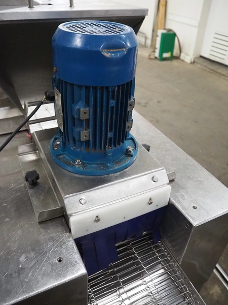 Deighton Manufacturing UK LTD mobile breading machine, s/s mesh belt, belt width: 200 mm, total dimensions: 1600 mm x 900 mm x 1900 mm.