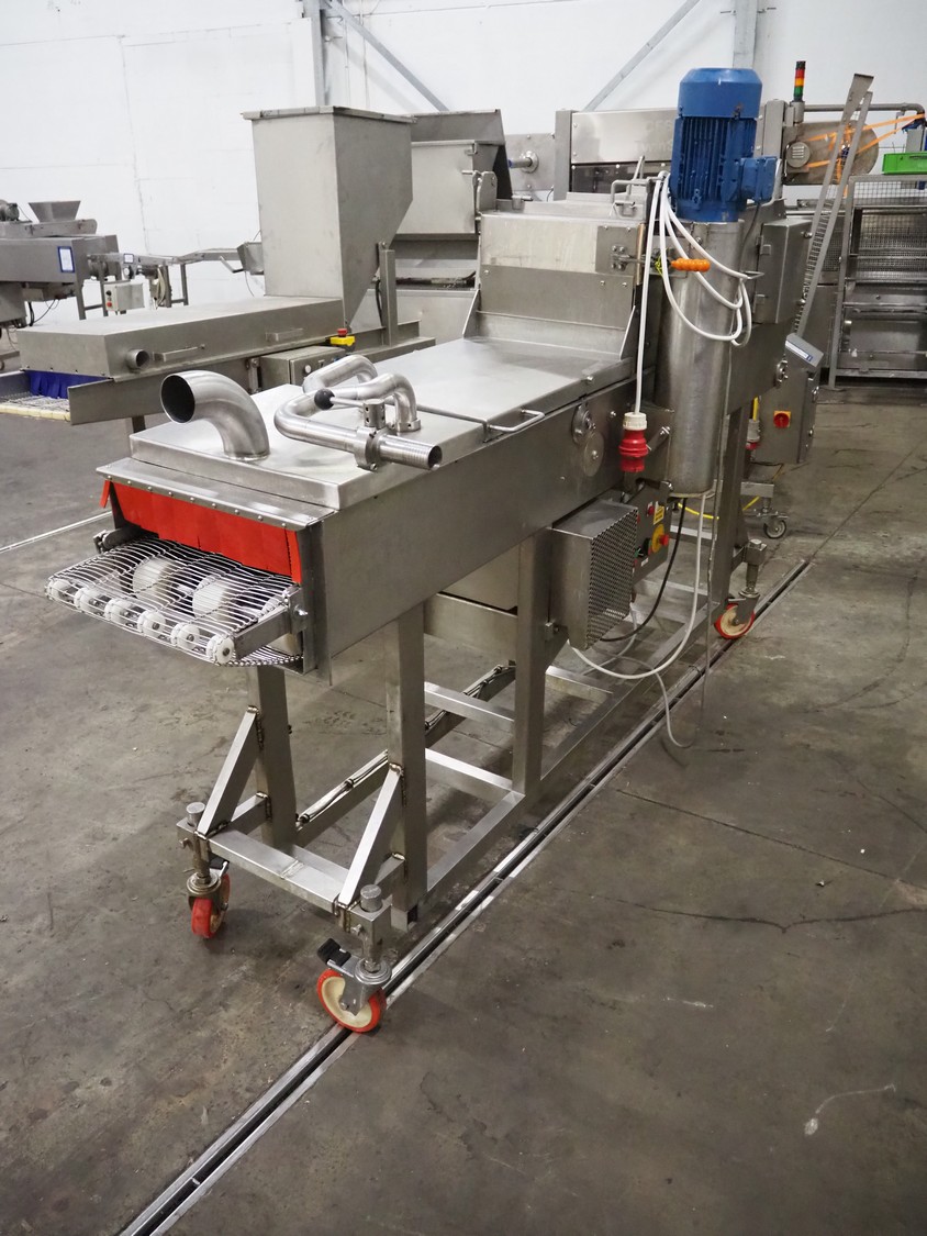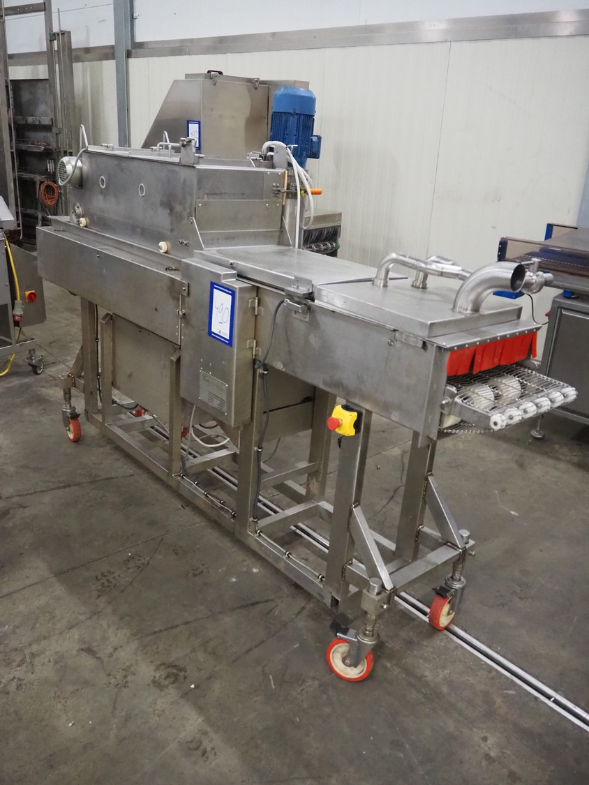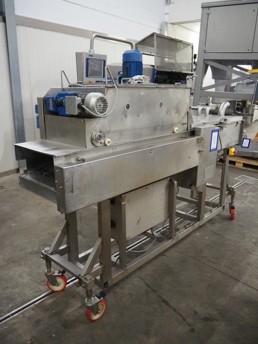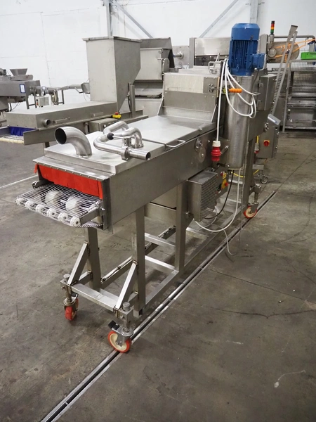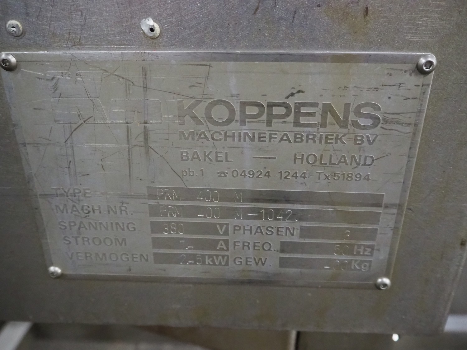 Koppens mobile pre-duster, type: PRM 400 M, machine number: PRM 400 M-1042, 380 V, 3 Ph, 50 Hz, 7.4 A, 2.45 kW, weight: 400 kg, s/s mesh belt, belt width: 400 mm, total dimensions: 2700 mm x 800 mm x 1800 mm.