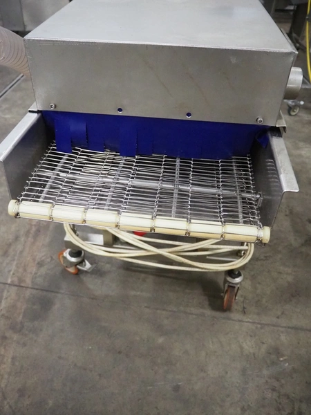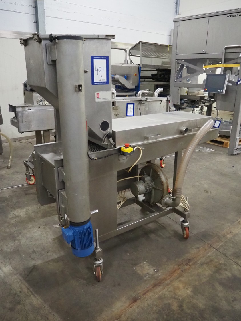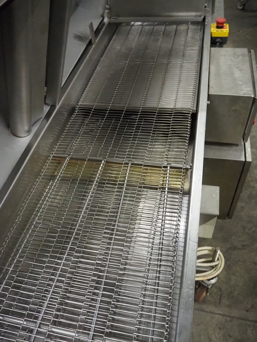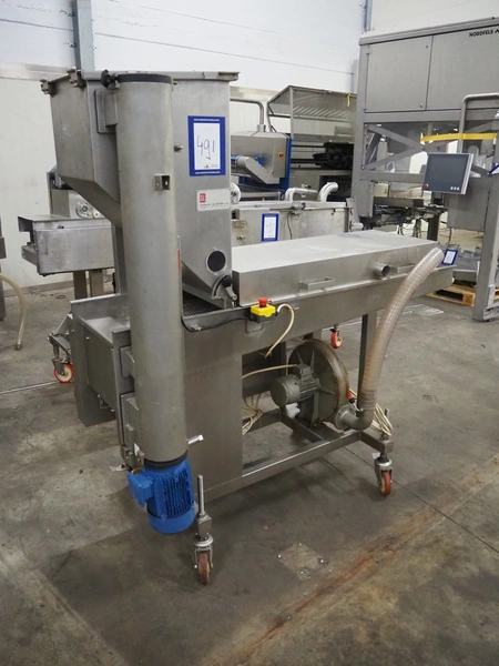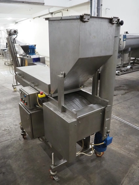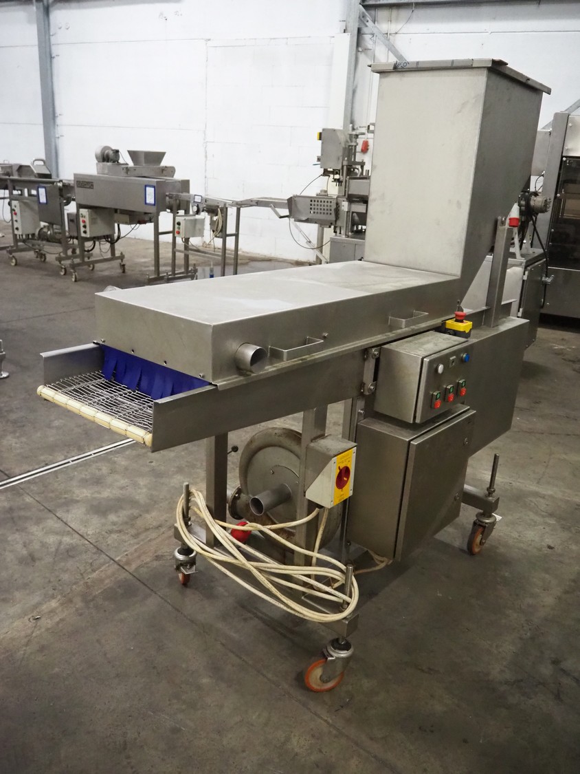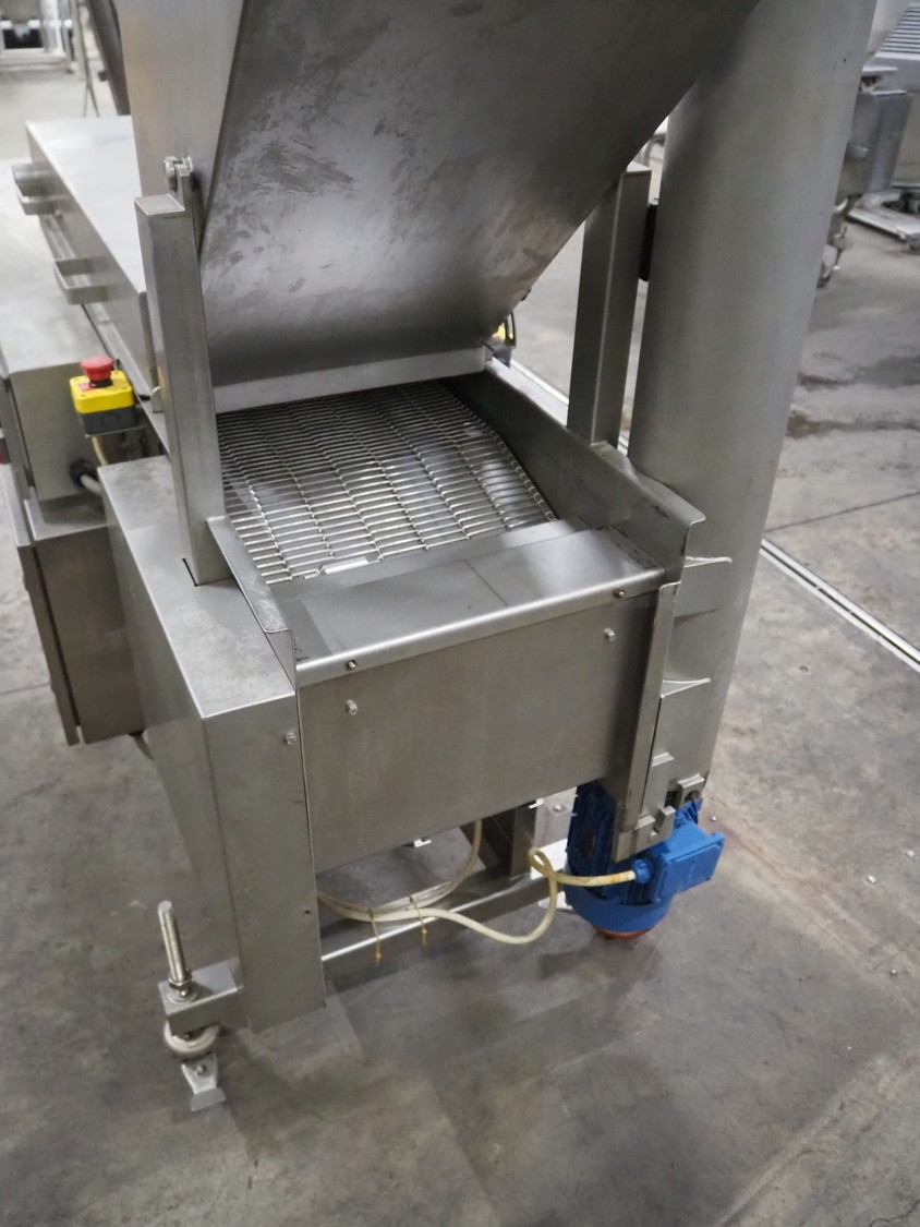 Seffelaar und Looyen GmbH mobile breading machine, s/s mesh belt, belt width: 400 mm, total dimensions: 1900 mm x 900 mm x 1800 mm.