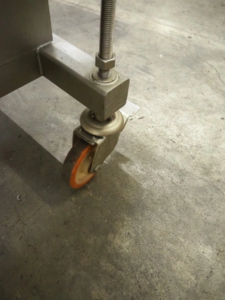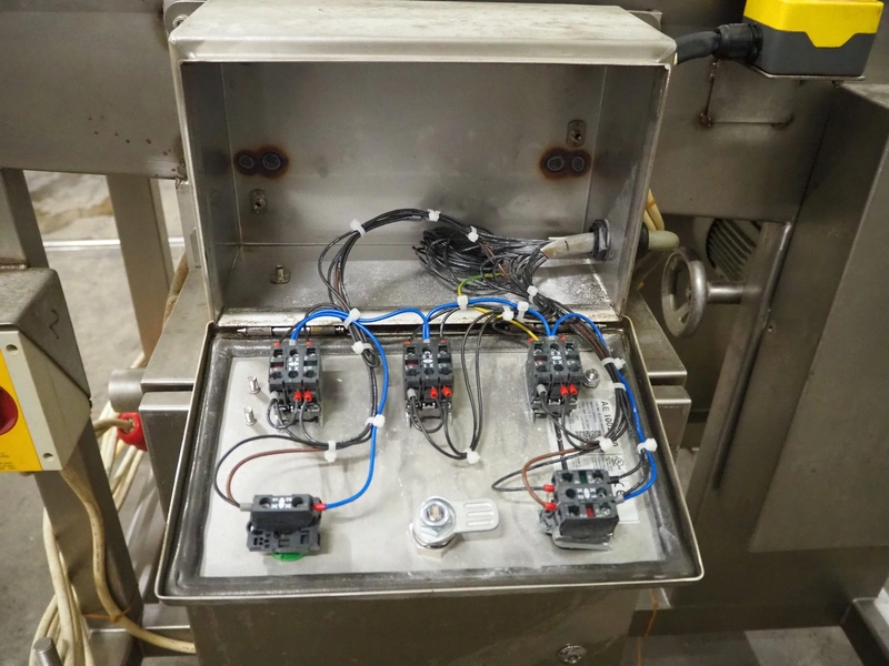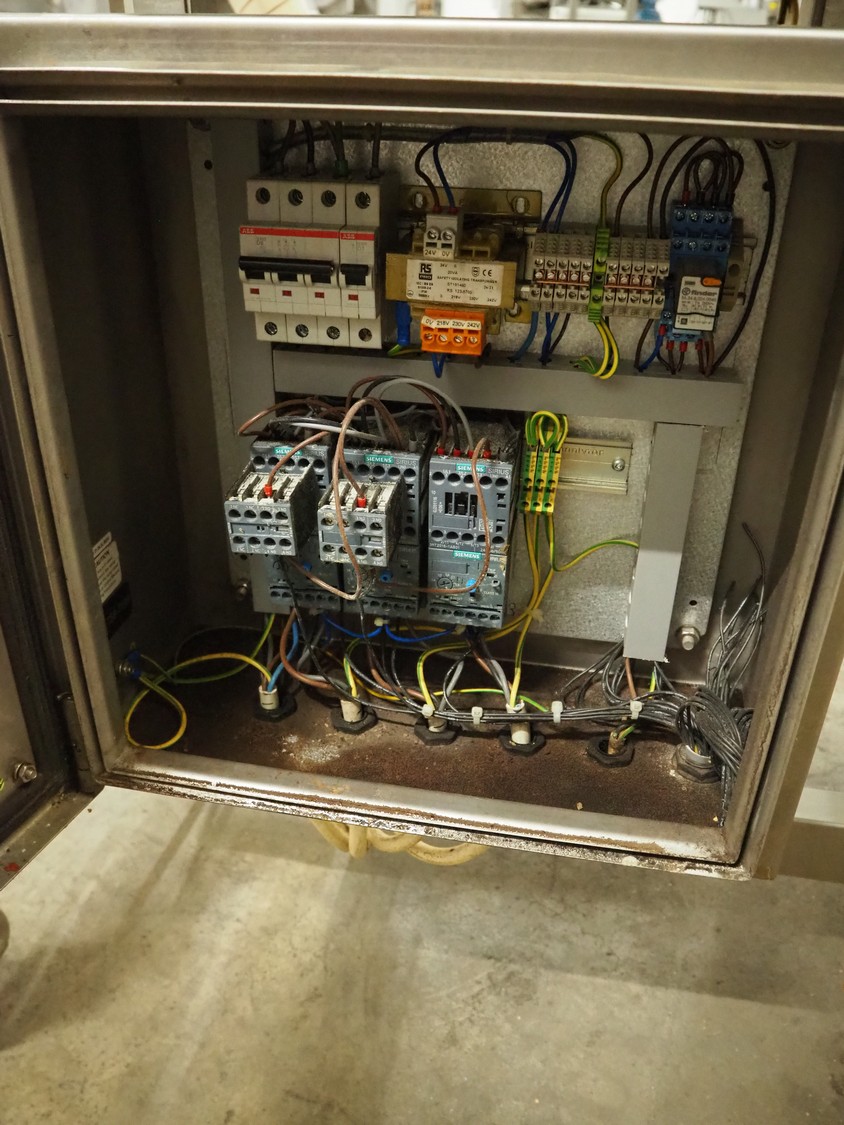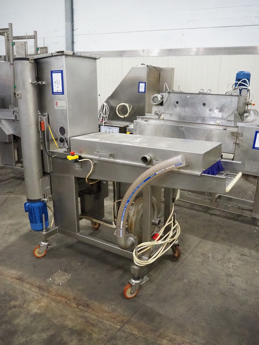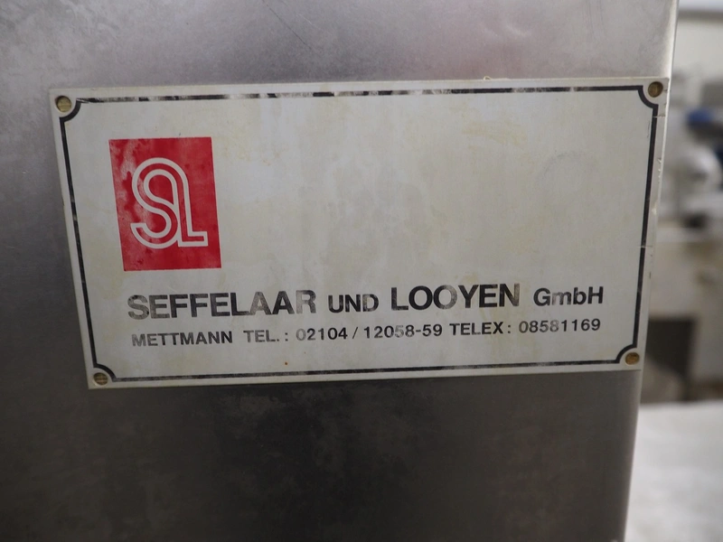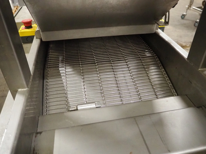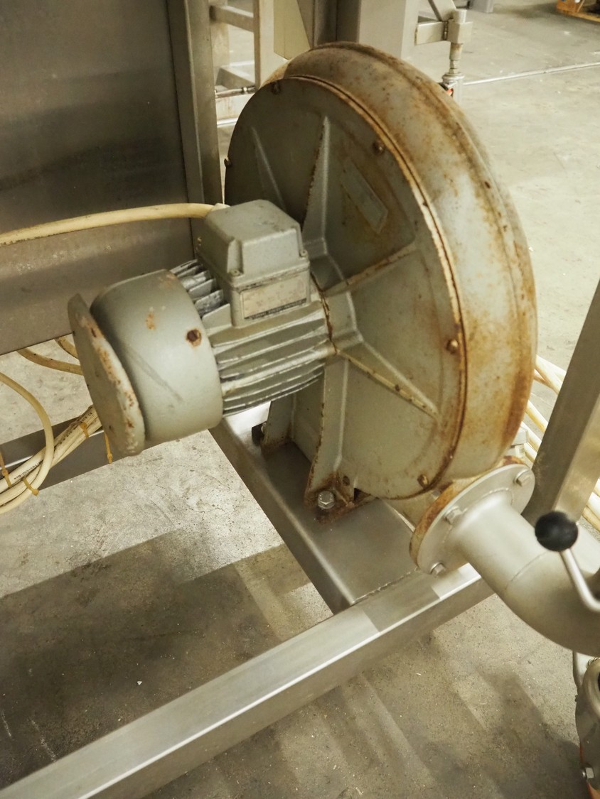 Seffelaar und Looyen GmbH mobile breading machine, s/s mesh belt, belt width: 400 mm, total dimensions: 1900 mm x 900 mm x 1800 mm.