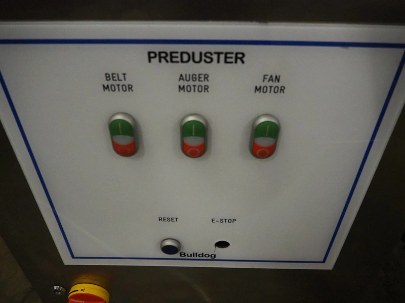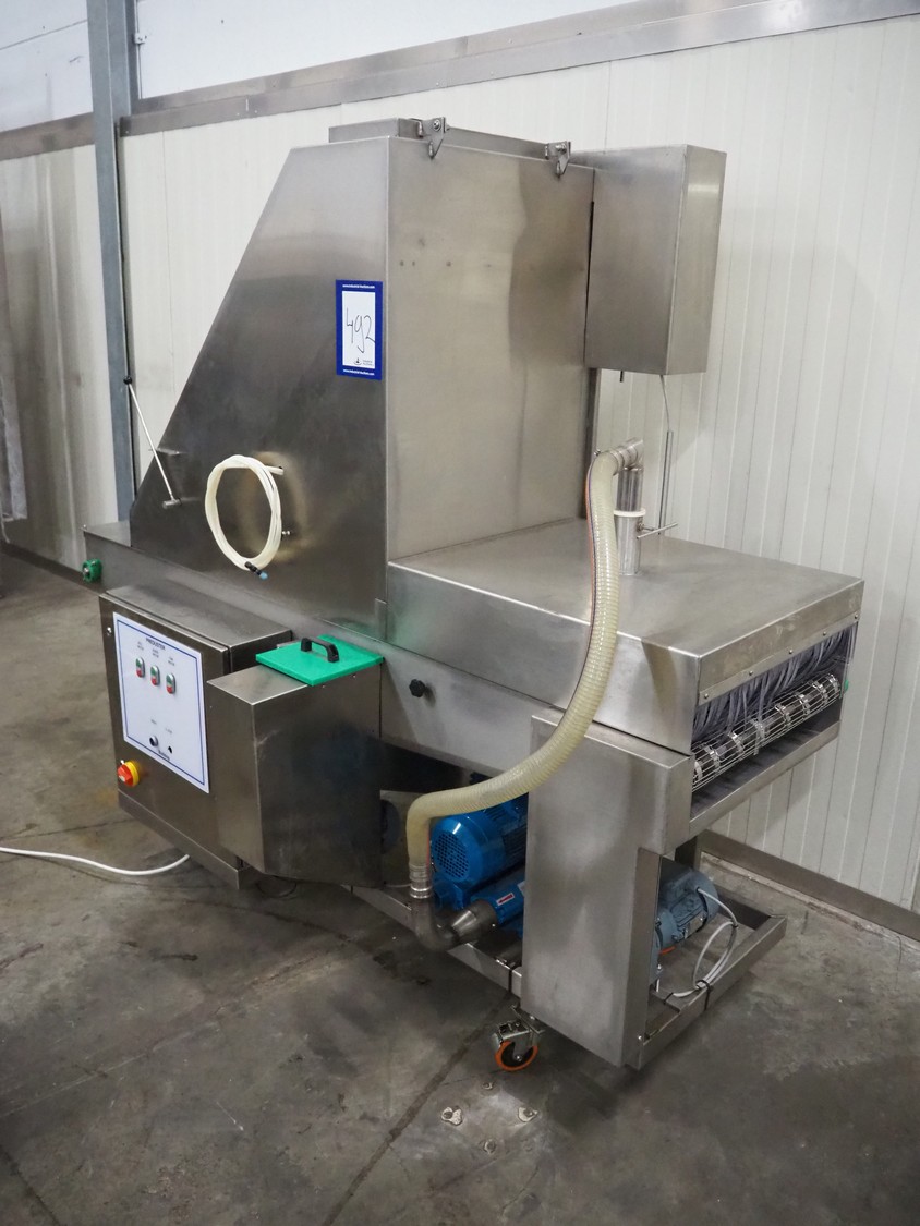 Bulldog mobile pre-duster, s/s mesh belt, belt width: 600 mm, total dimensions: 2300 mm x 1300 mm x 2000 mm. Never used.
