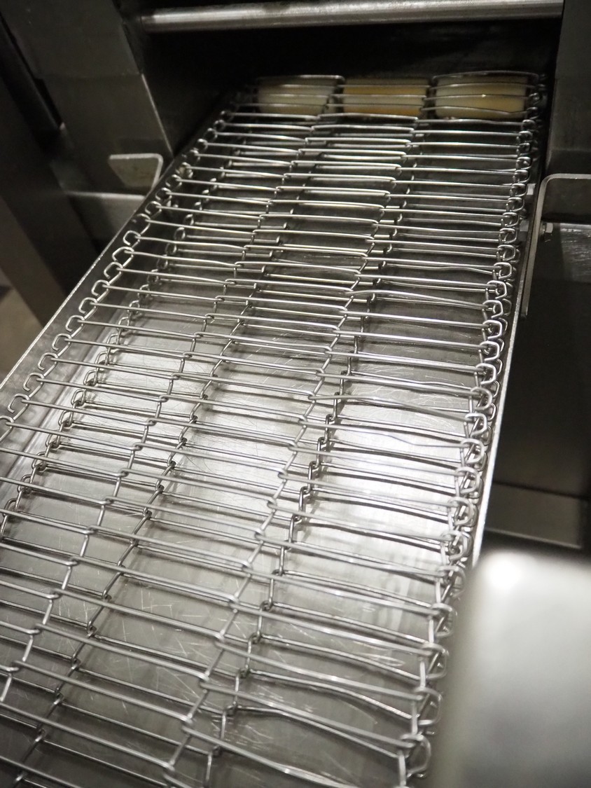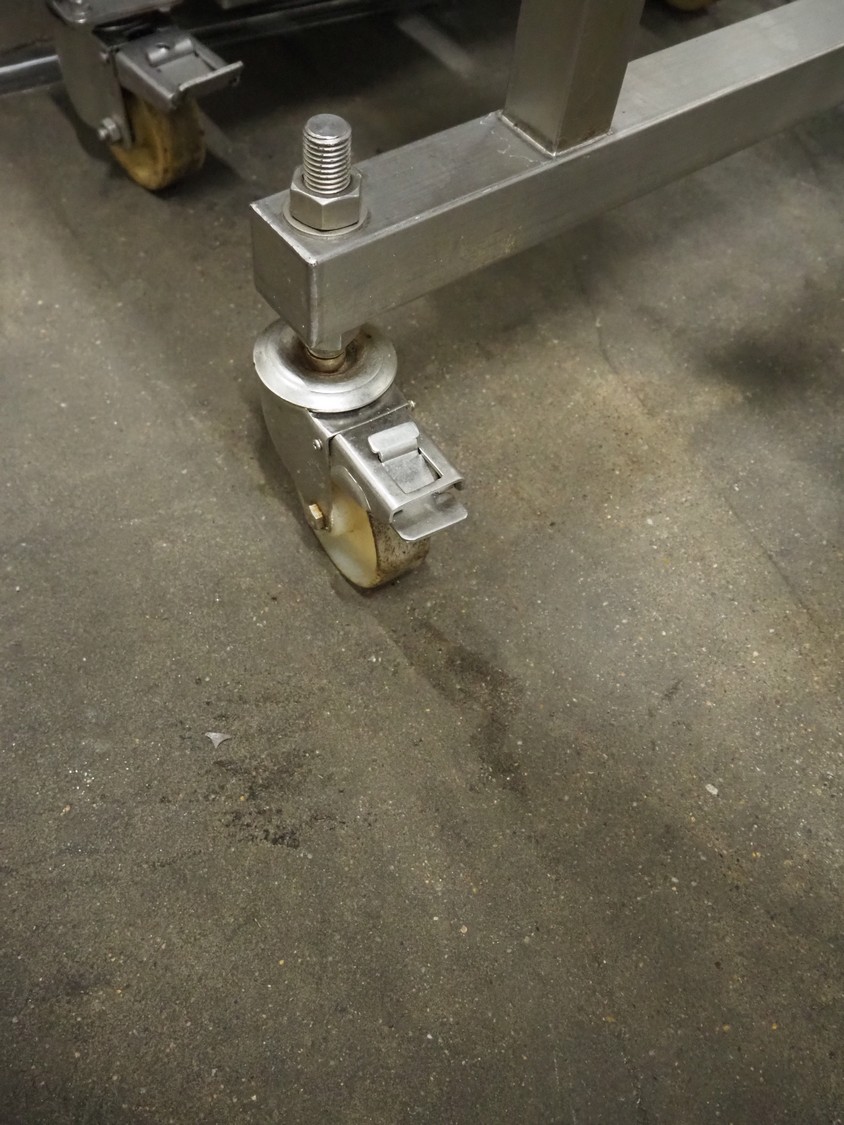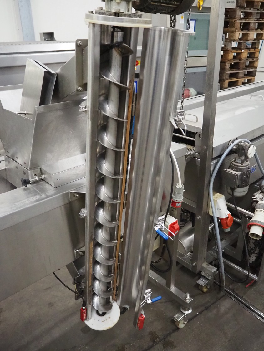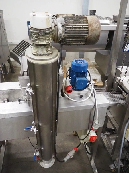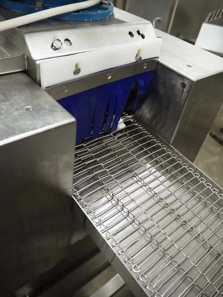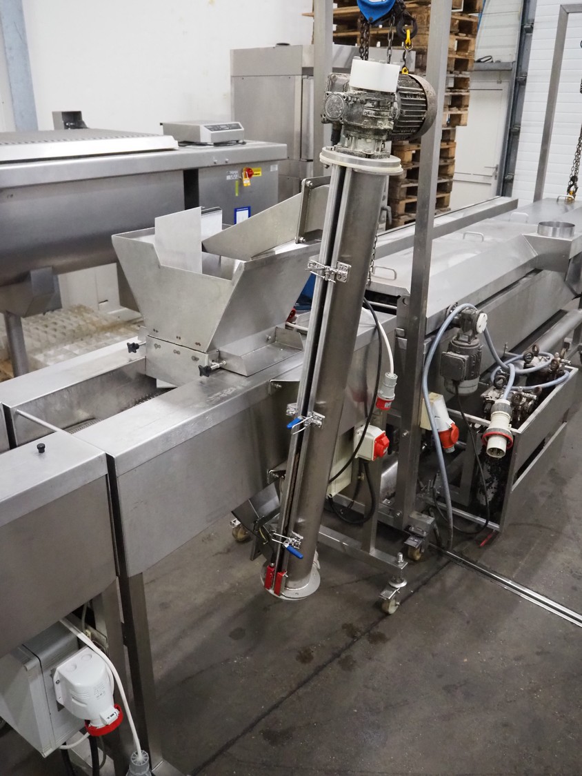 Deighton Manufacturing UK LTD mobile breading machine, s/s mesh belt, belt width: 220 mm, total dimensions: 1500 mm x 800 mm x 1200 mm.
