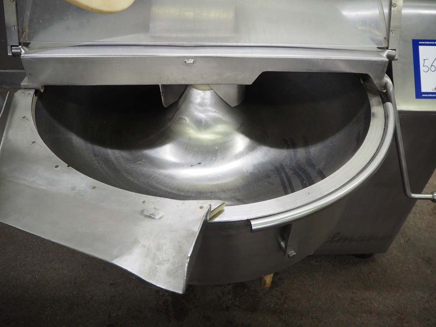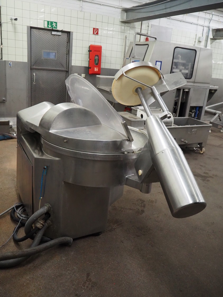 Seydelmann cutter, type: K90DC6, maschine number: 94168-1, 380 V, 50 Hz, 130 A, volume: 90 liter, s/s bowl, type control panel: Micro-12, dimensions: 1330 mm x 2050 mm x 1600 mm.