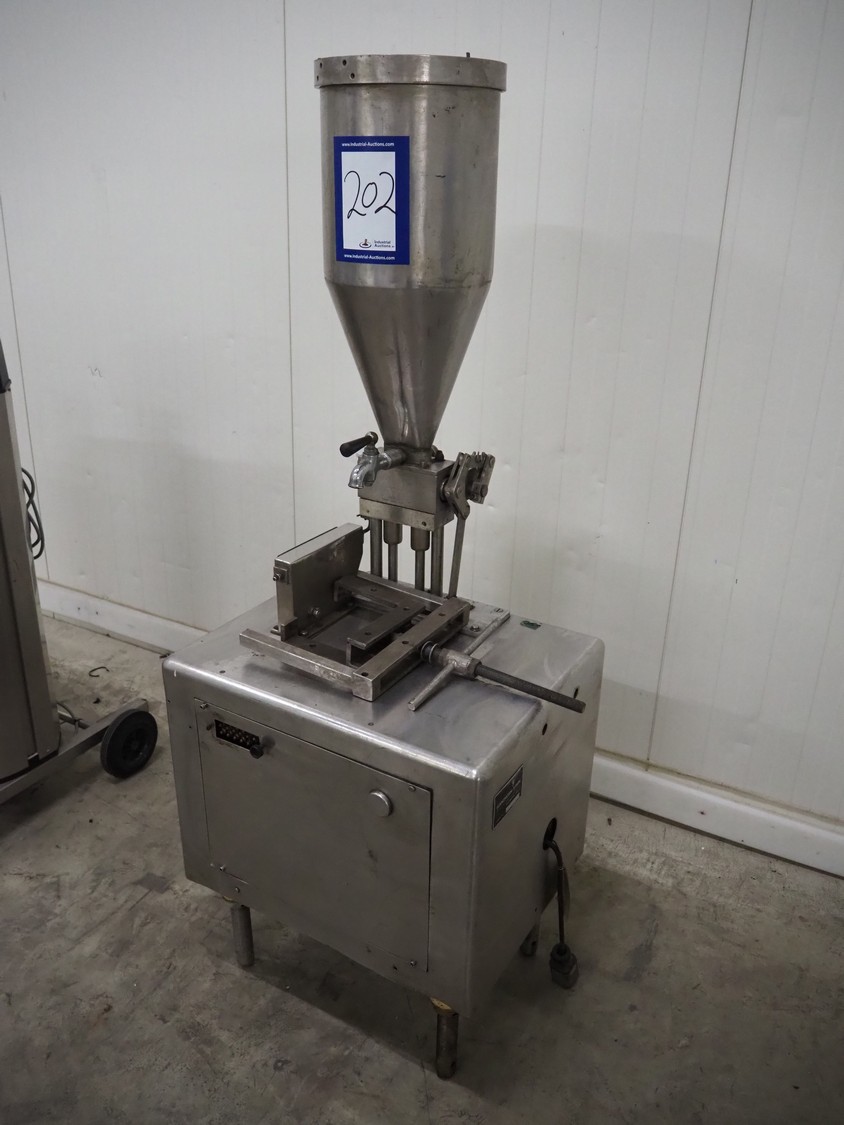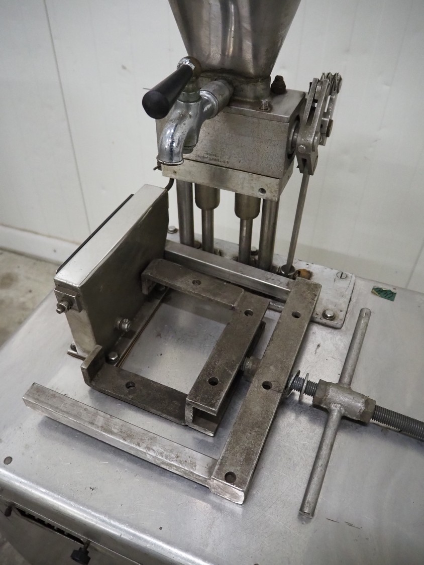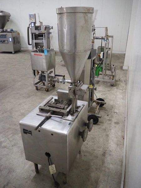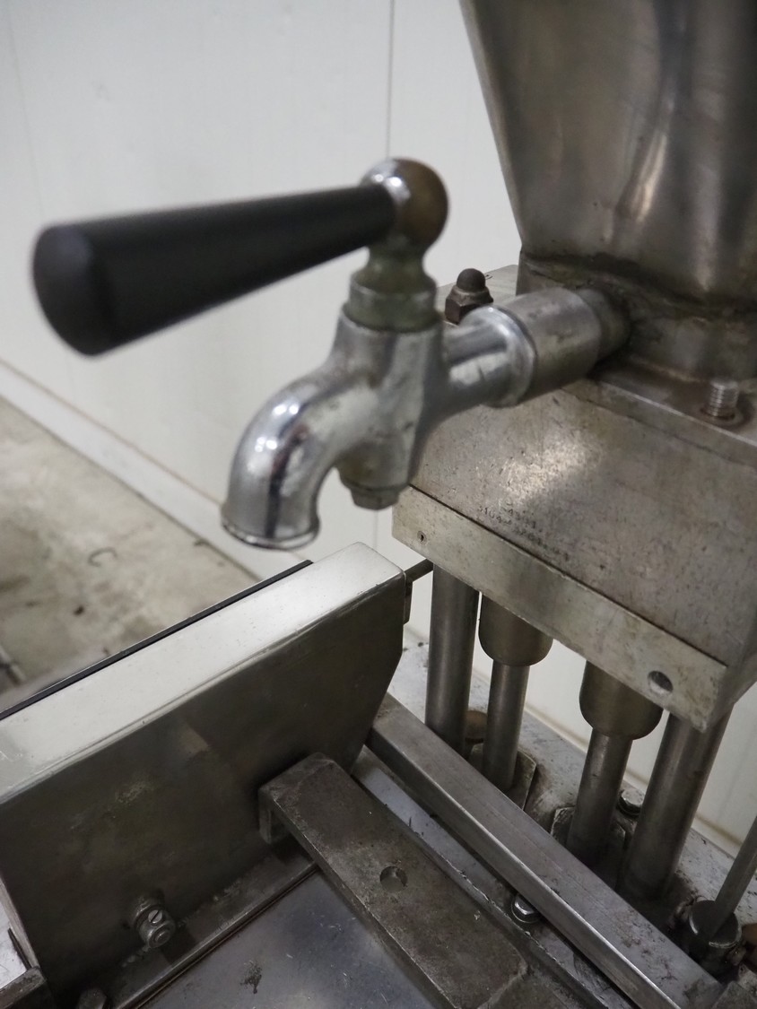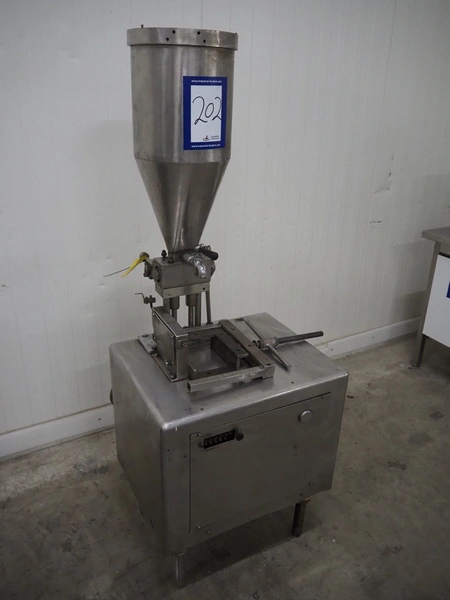 Ganzhorn + Stirn filling machine, number: 452.67, output: Ø 20, dimensions funnel: Ø 320 mm x 670 mm, total dimensions: 700 mm x 600 mm x 1800 mm.