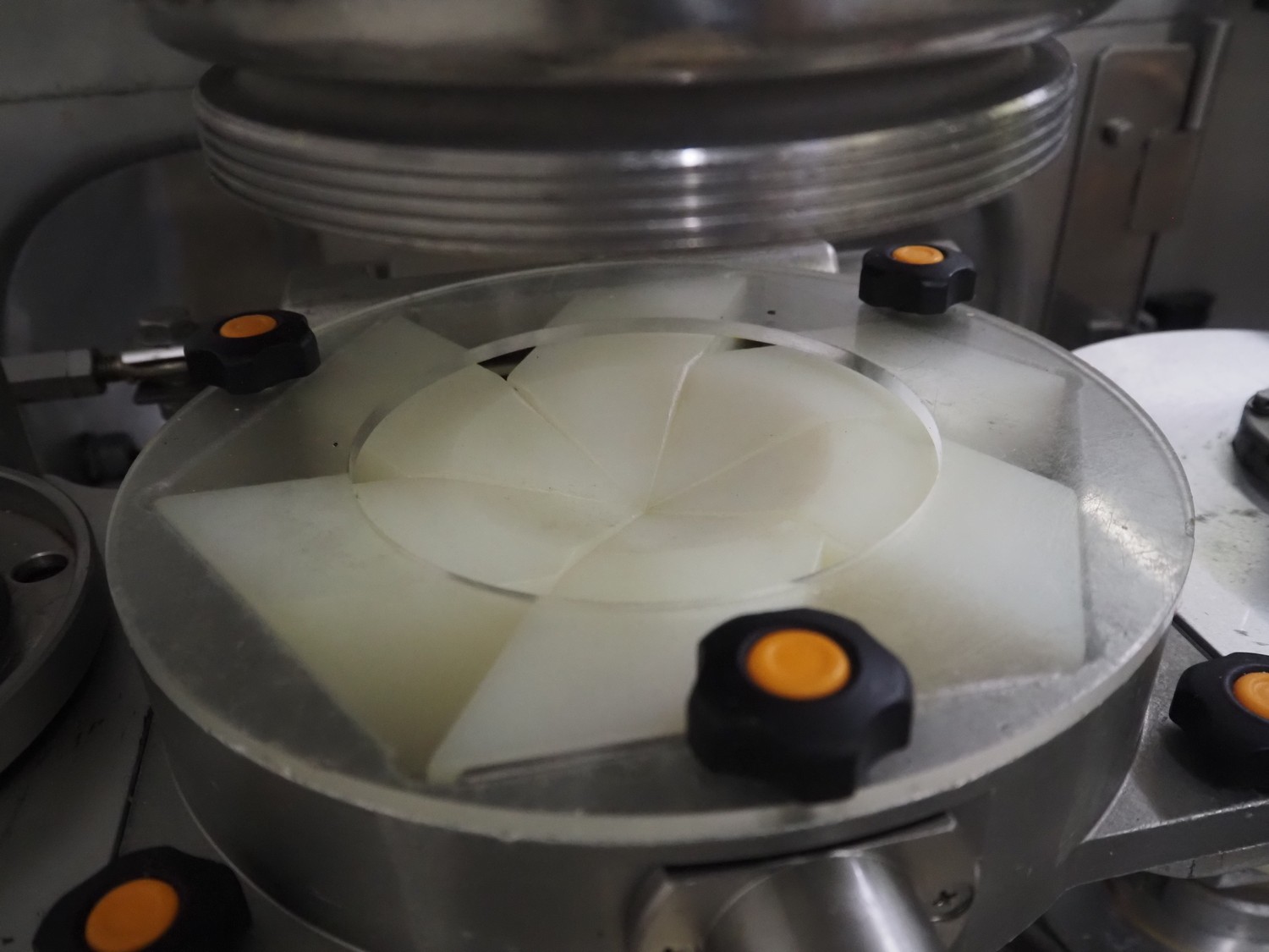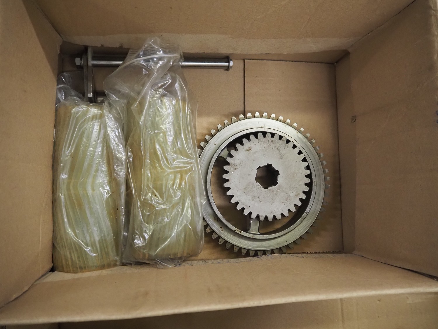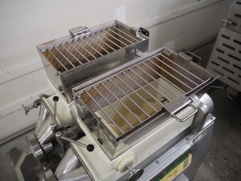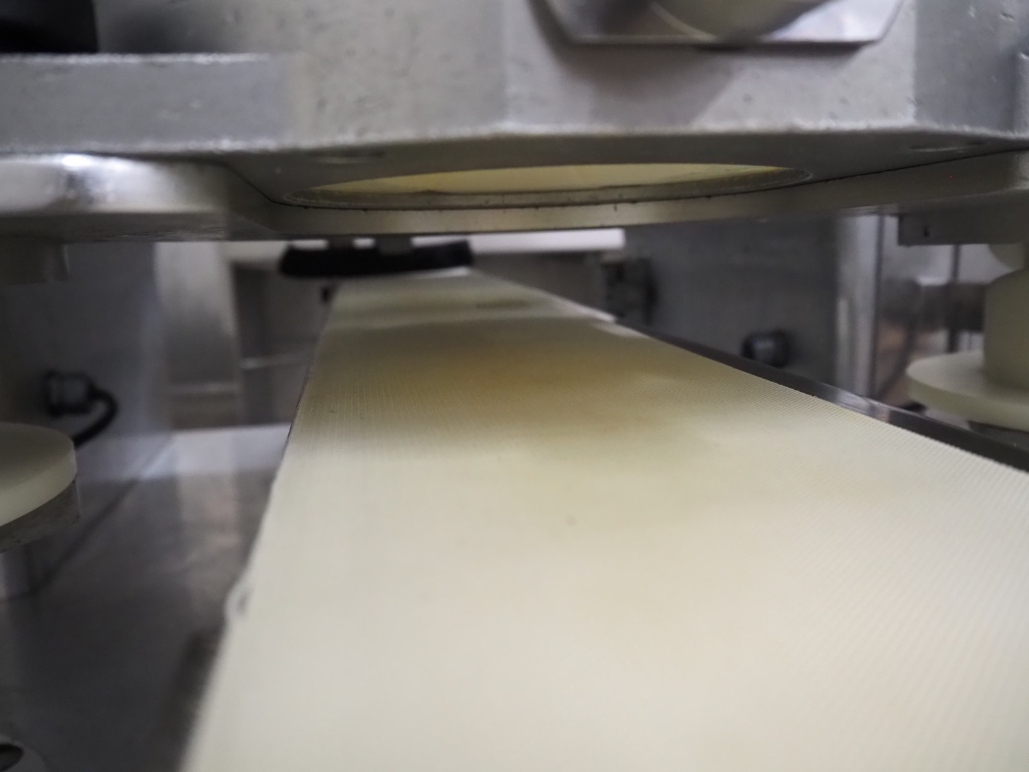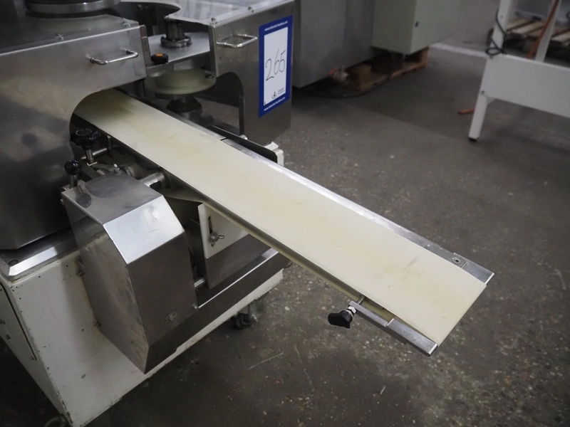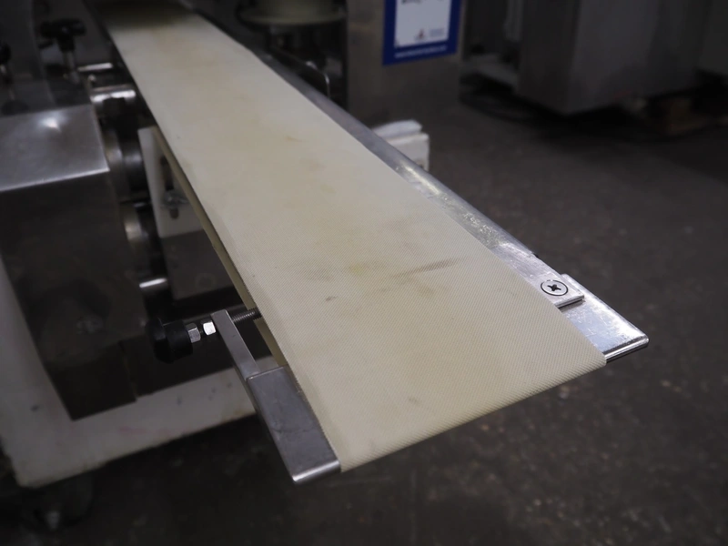 Rheon mobile encrusting machine, name: CORNUCOPIA, model: KN 200, serial number: 039, year of construction: sept 1989, 415 V, 3 Ph, 50 Hz, 1.64 kW, plastic belt, belt width: 130 mm, total dimensions: 1240 mm x 800 mm x 1590 mm. Including crate and box with parts.