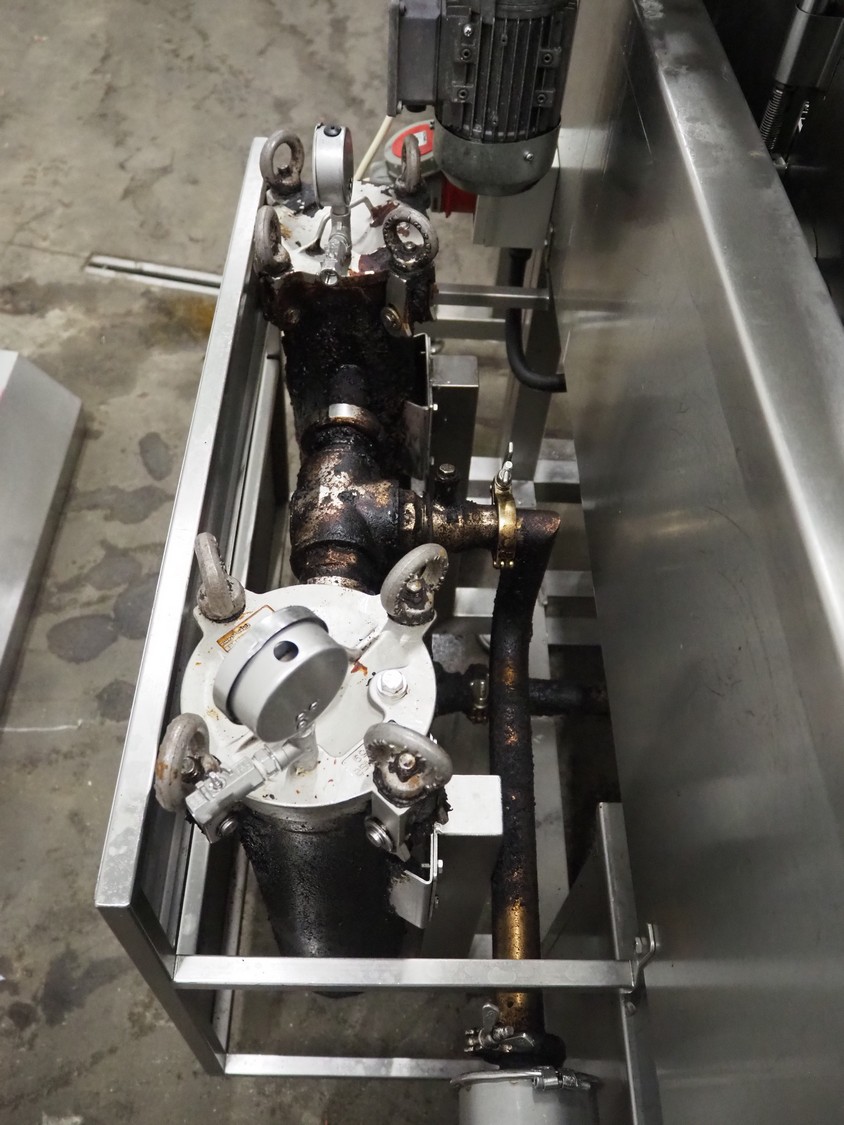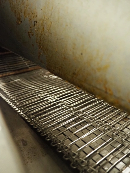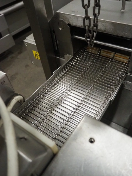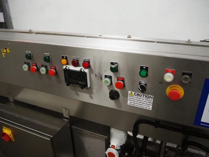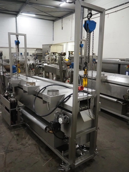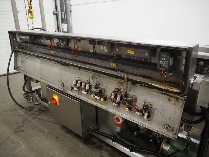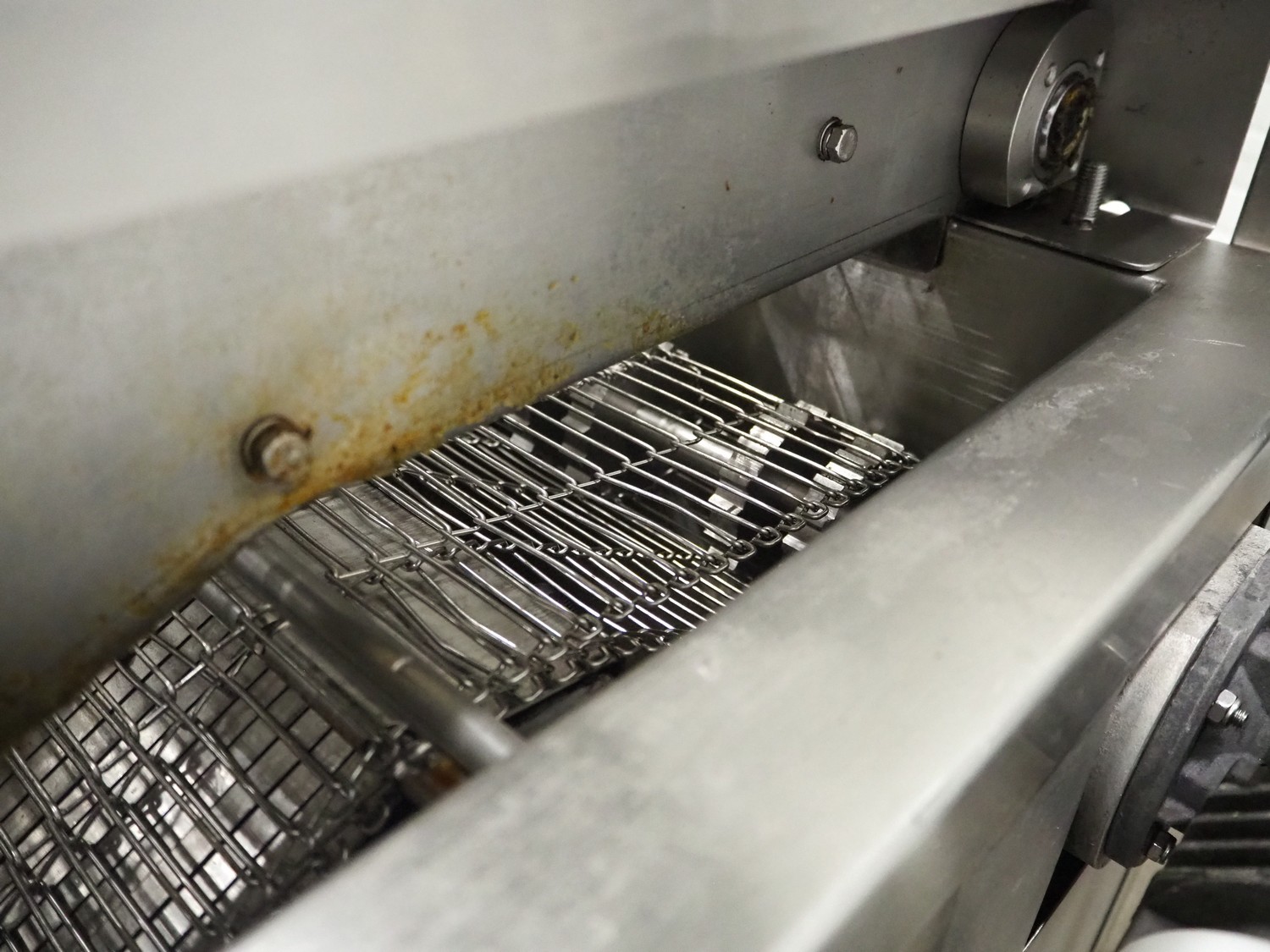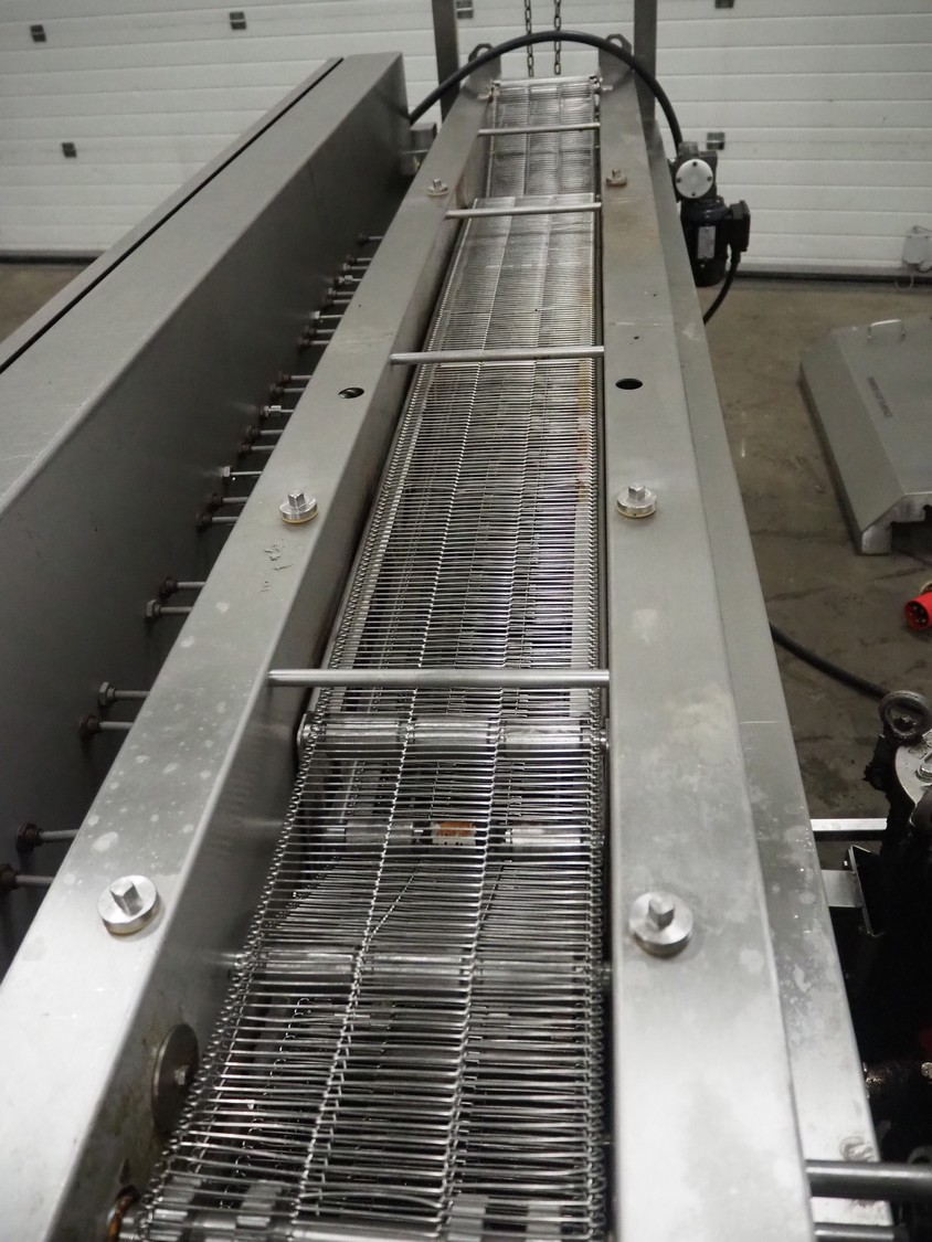Deighton Manufacturing UK LTD mobile fryer, s/s mesh belt, belt width: 220 mm, clearance: 220 mm x 80 mm, total dimensions: 3000 mm x 1200 mm x 2400 mm.
