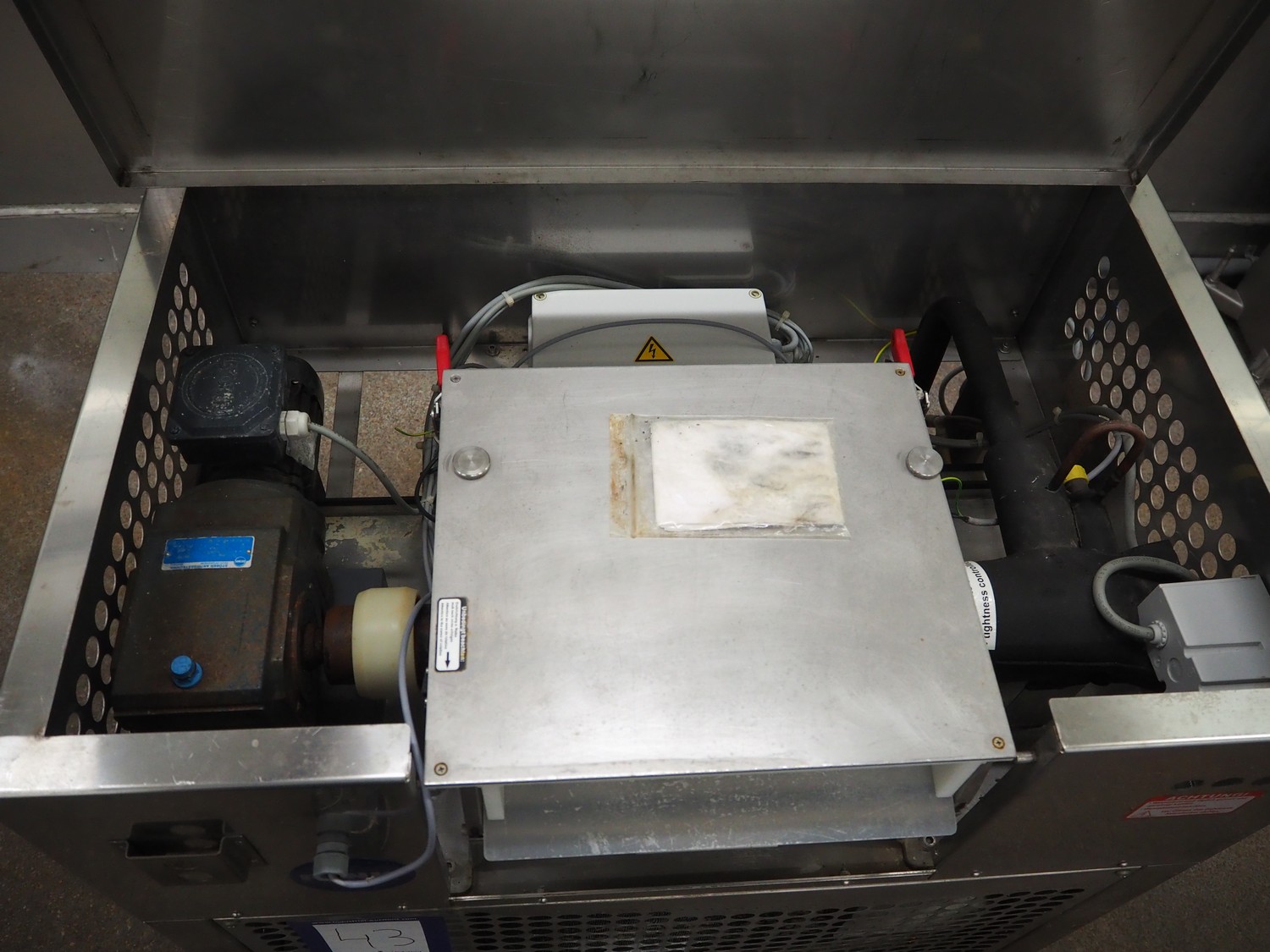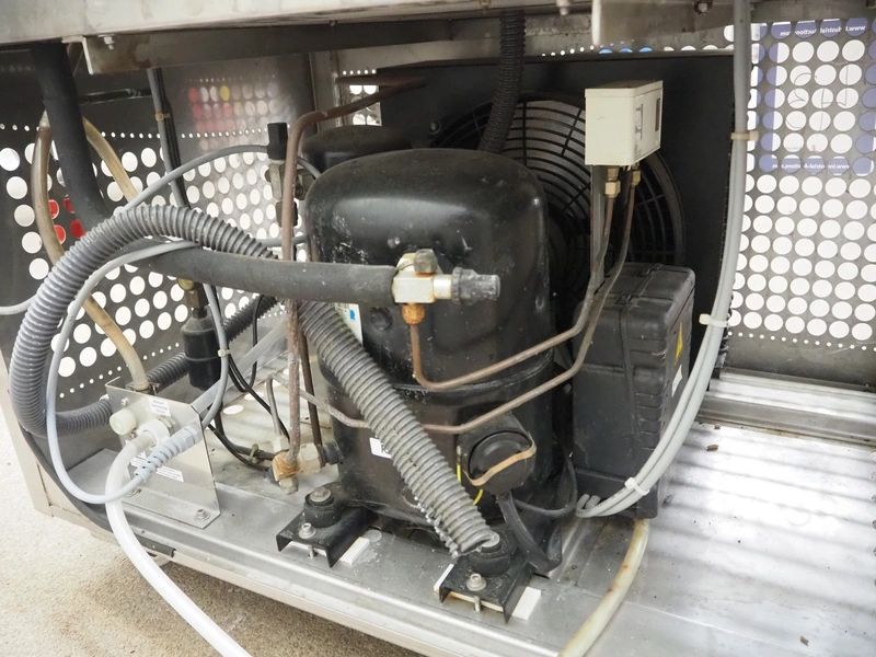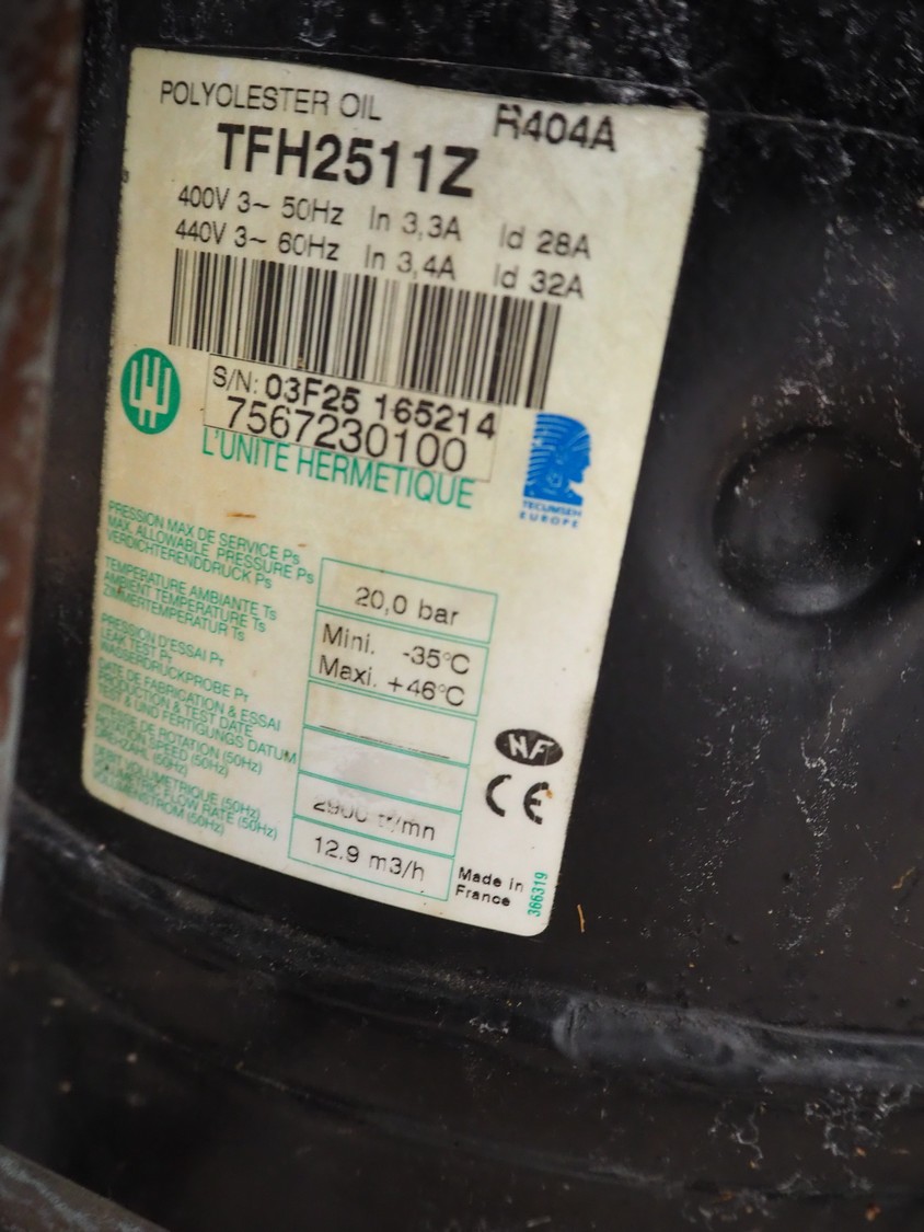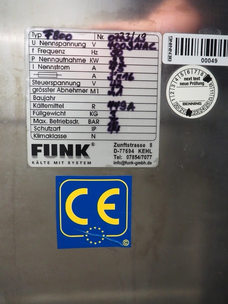 Funk ice machine, type: F800, number: 0773/19, 400 V, 3 Ph, 50 Hz, 4.5 A, refrigerant: R449a / 3 kg, dimensions: 1000 mm x 700 mm x 1000 mm.