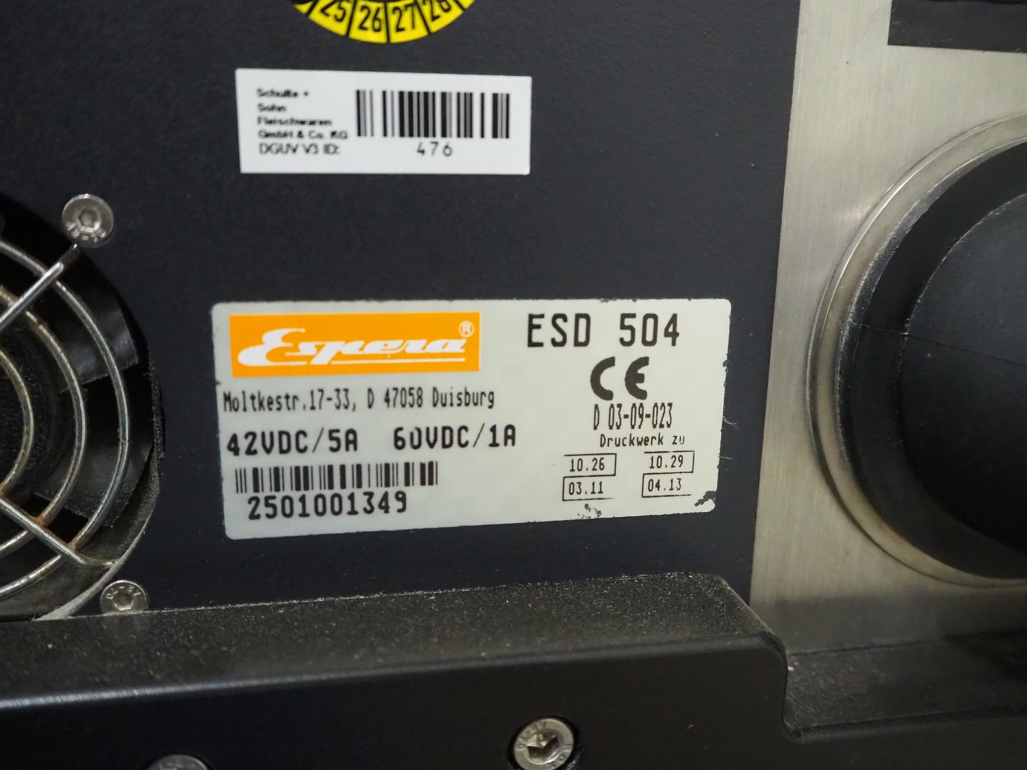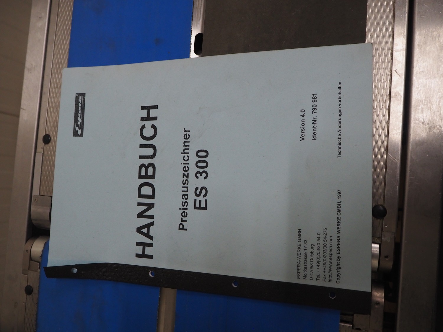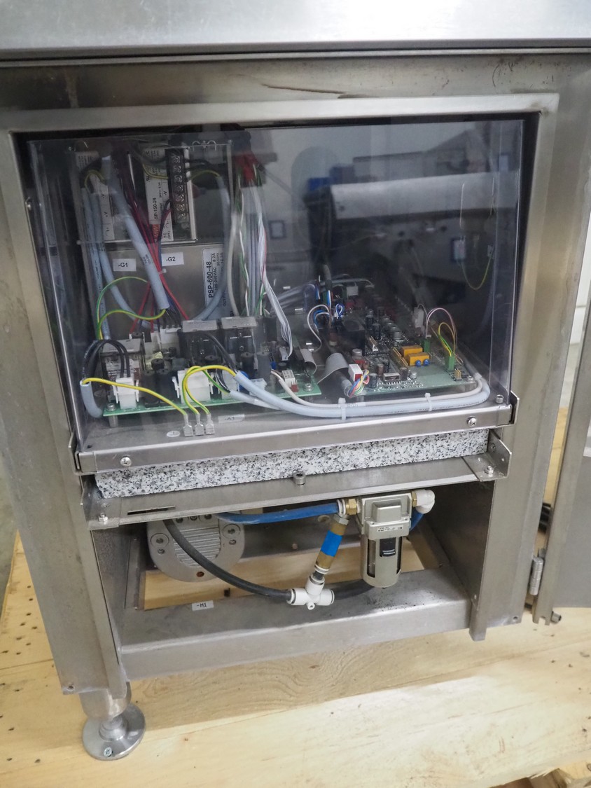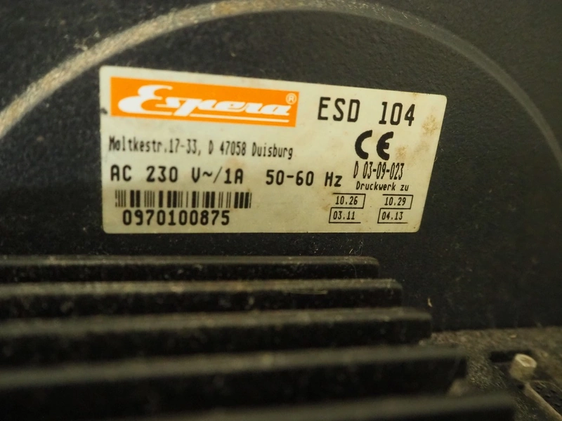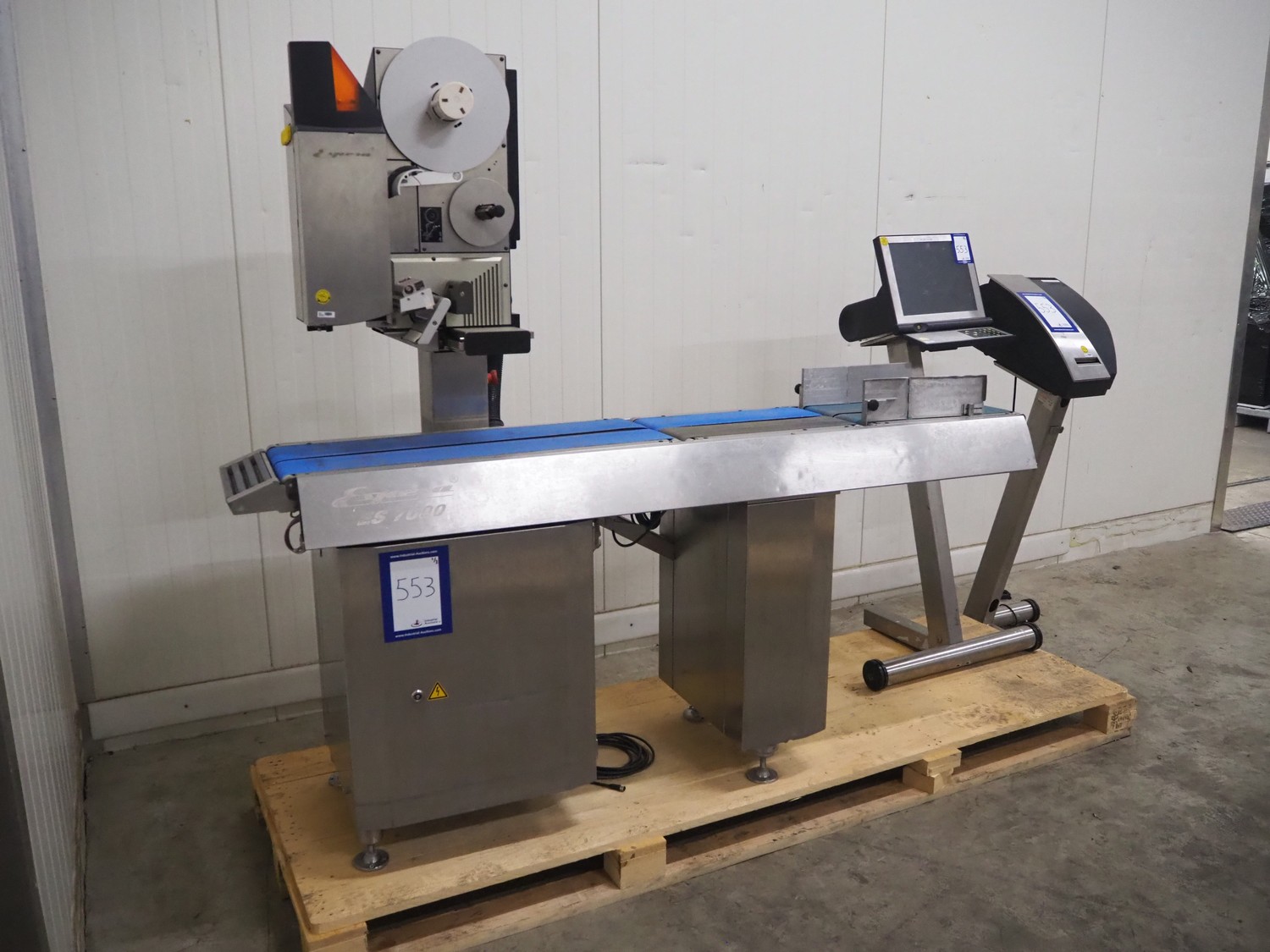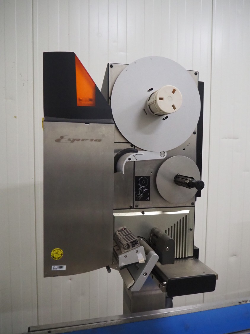 Espera labelling machine, model: ES 7000, model labeller: ESD 504, plastic belt, belt with: (2x) 145 mm, total dimensions: 2050 mm x 750 mm x 1800 mm. Including Espera controll panel, model: ESC 964 and Espera label printer, model: ESD 104, dimensions: 680 mm x 470 mm x 1370 mm and 680 mm x 580 mm x 1360 mm.