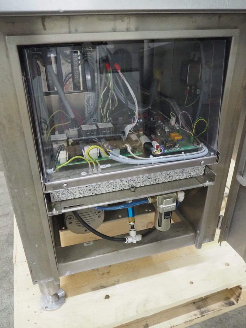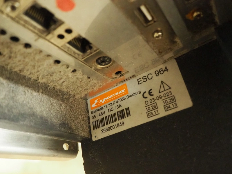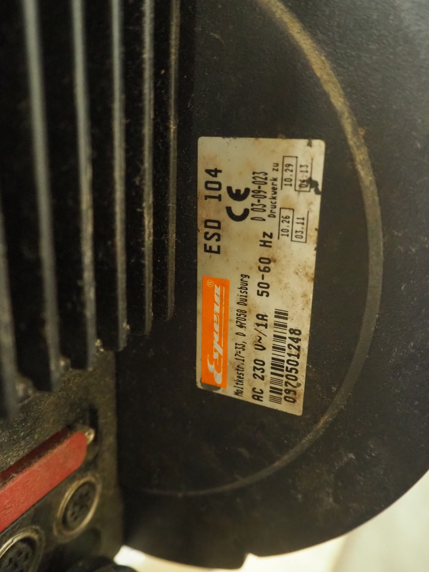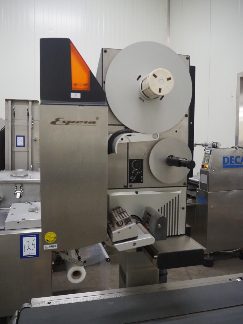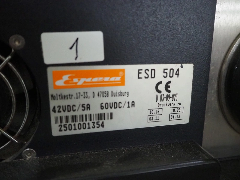 Espera labelling machine, model: ES 7000, model labeller: ESD 504, plastic belt, belt with: (2x) 145 mm, total dimensions: 2050 mm x 750 mm x 1800 mm. Including Espera control panel, model: ESC 964 and Espera label printer, model: ESD 104, dimensions: 680 mm x 470 mm x 1370 mm and 680 mm x 580 mm x 1360 mm.