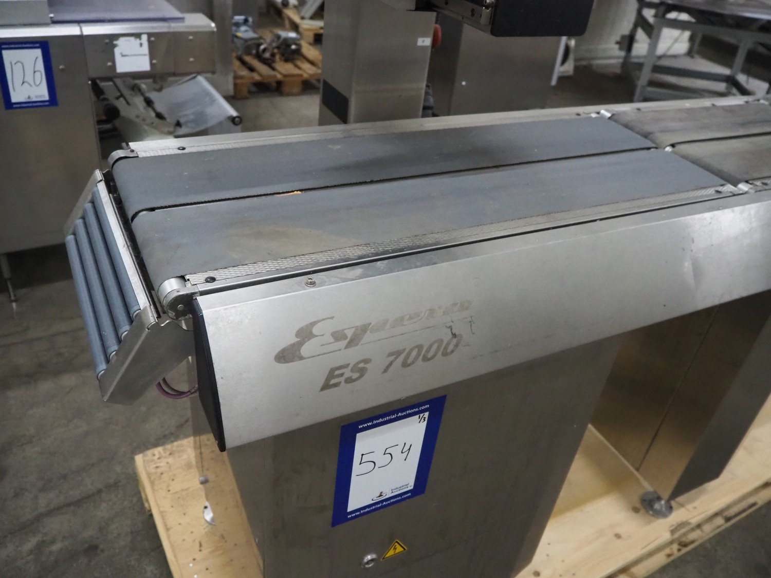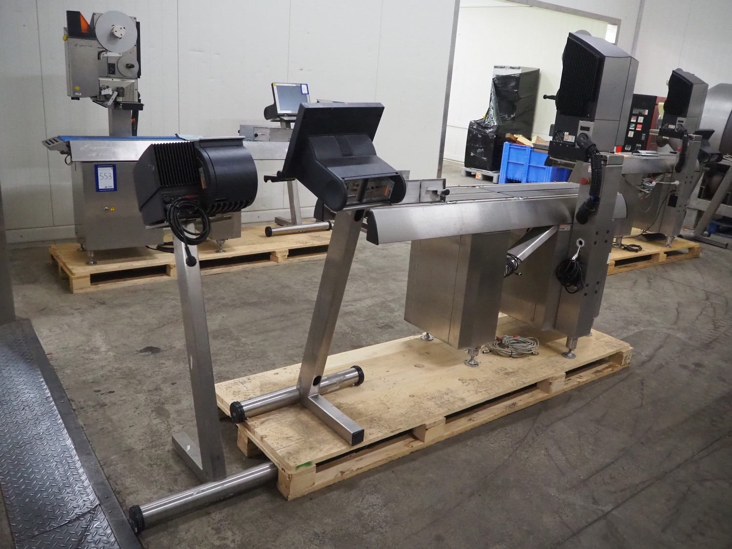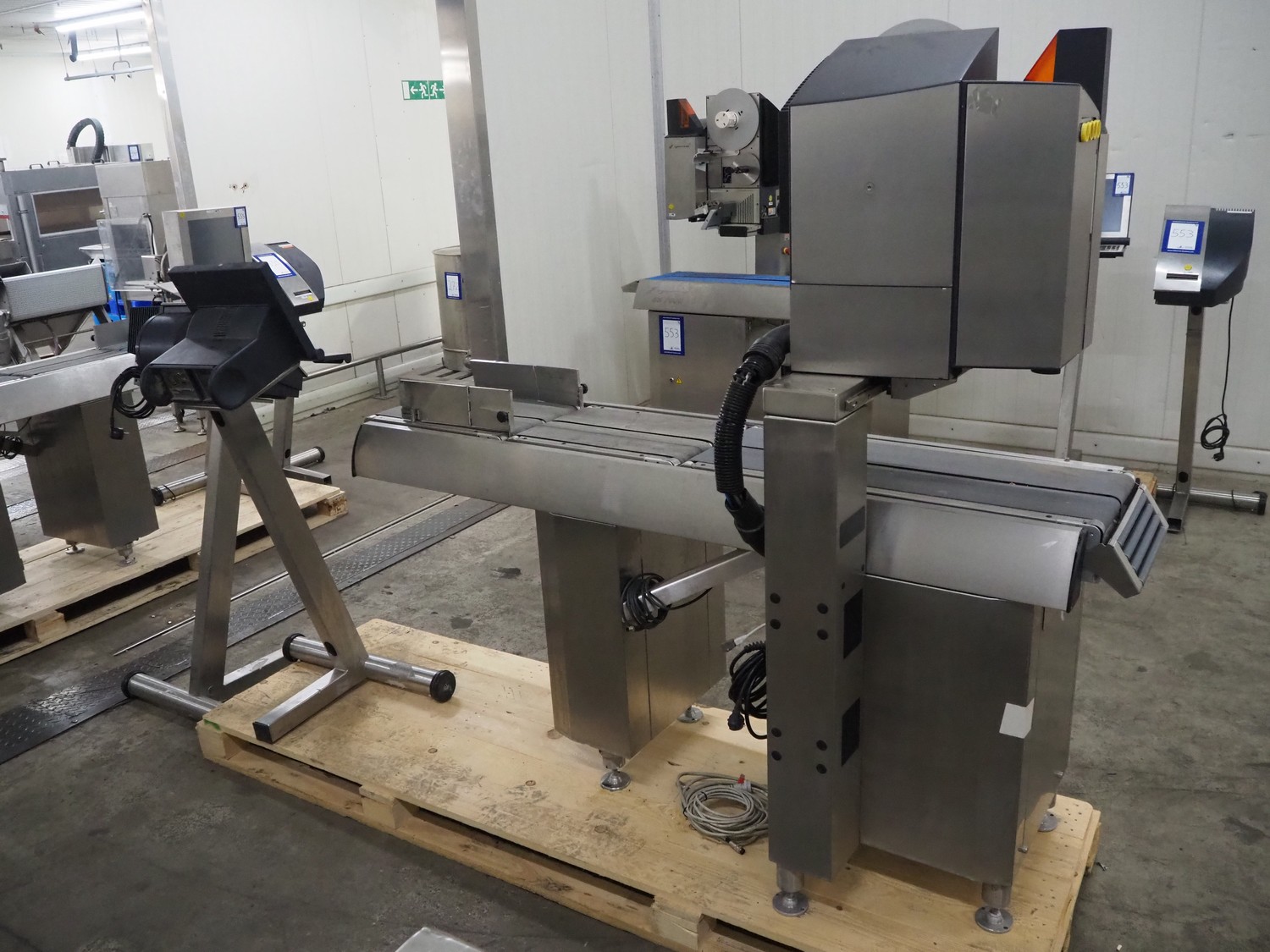 Espera labelling machine, model: ES 7000, model labeller: ESD 504, plastic belt, belt with: (2x) 145 mm, total dimensions: 2050 mm x 750 mm x 1800 mm. Including Espera control panel, model: ESC 964 and Espera label printer, model: ESD 104, dimensions: 680 mm x 470 mm x 1370 mm and 680 mm x 580 mm x 1360 mm.