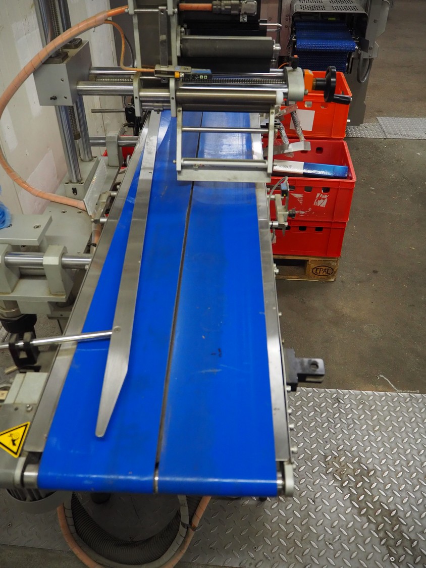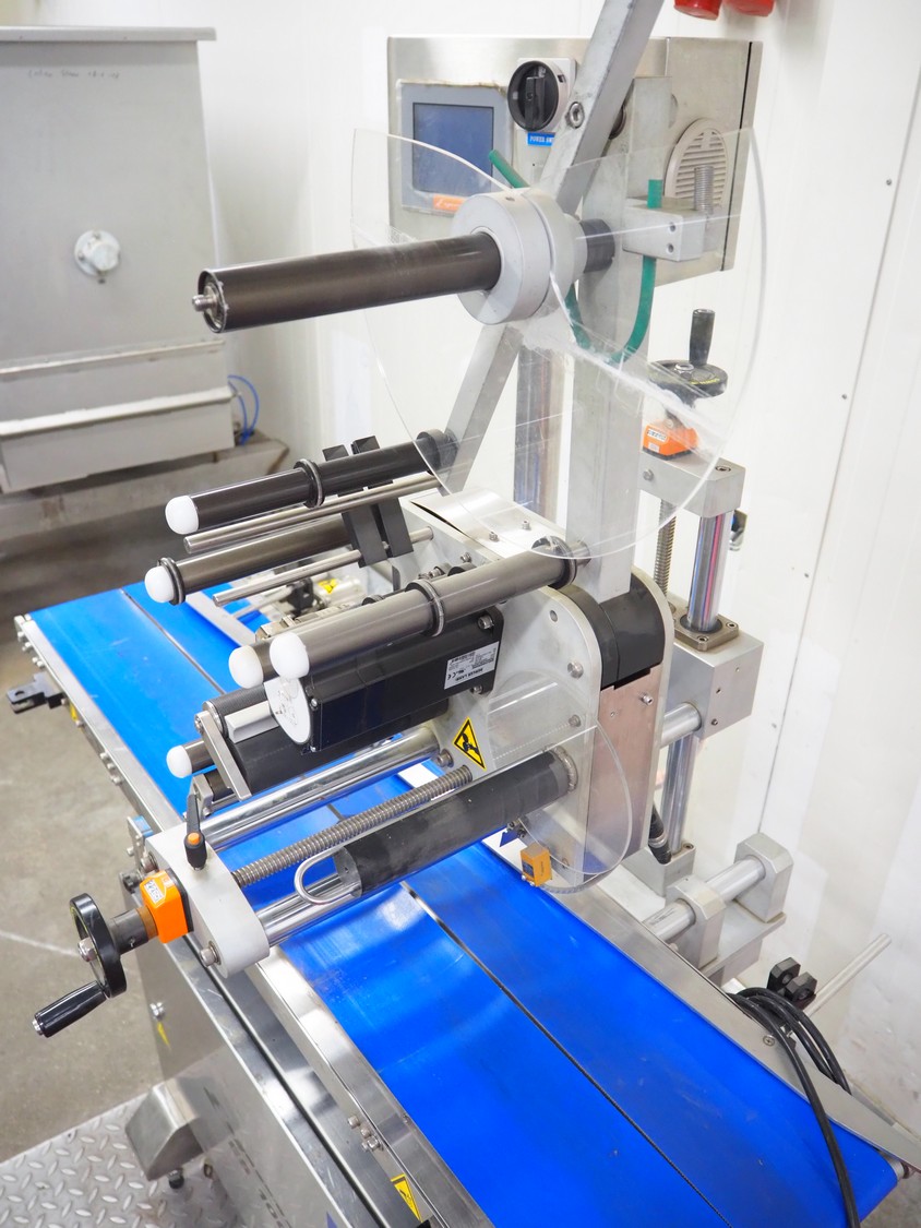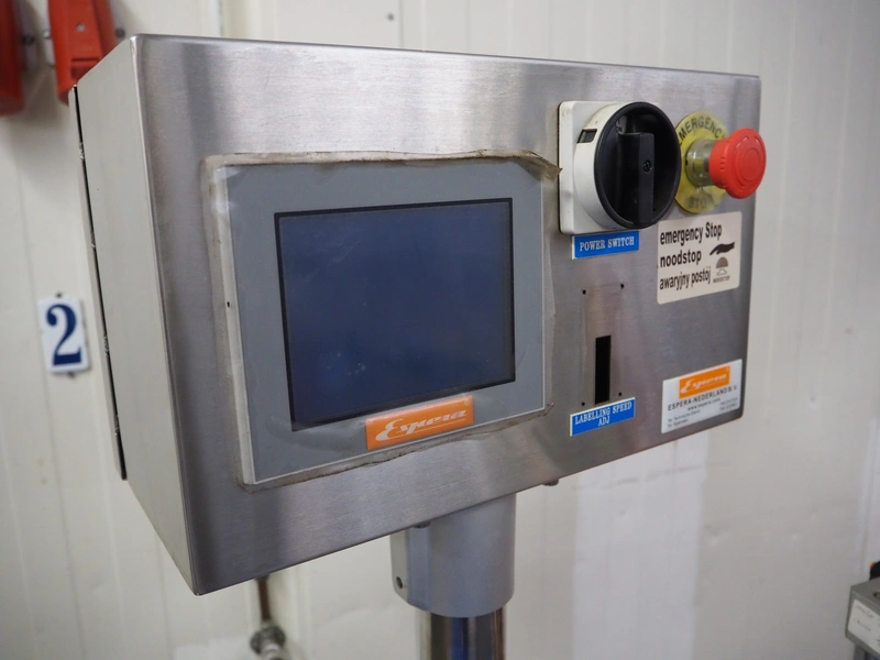 Espera labelling machine, model: ES 1000, type: ES 1210, 230 V, 50-60 Hz, 3 A, plastic belt, belt width: (2x) 140 mm, total dimensions: 1300 mm x 700 mm x 1750 mm.