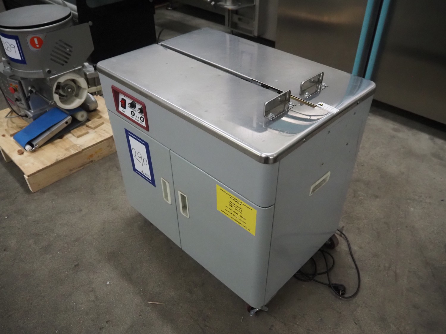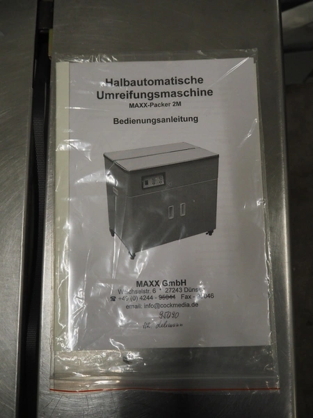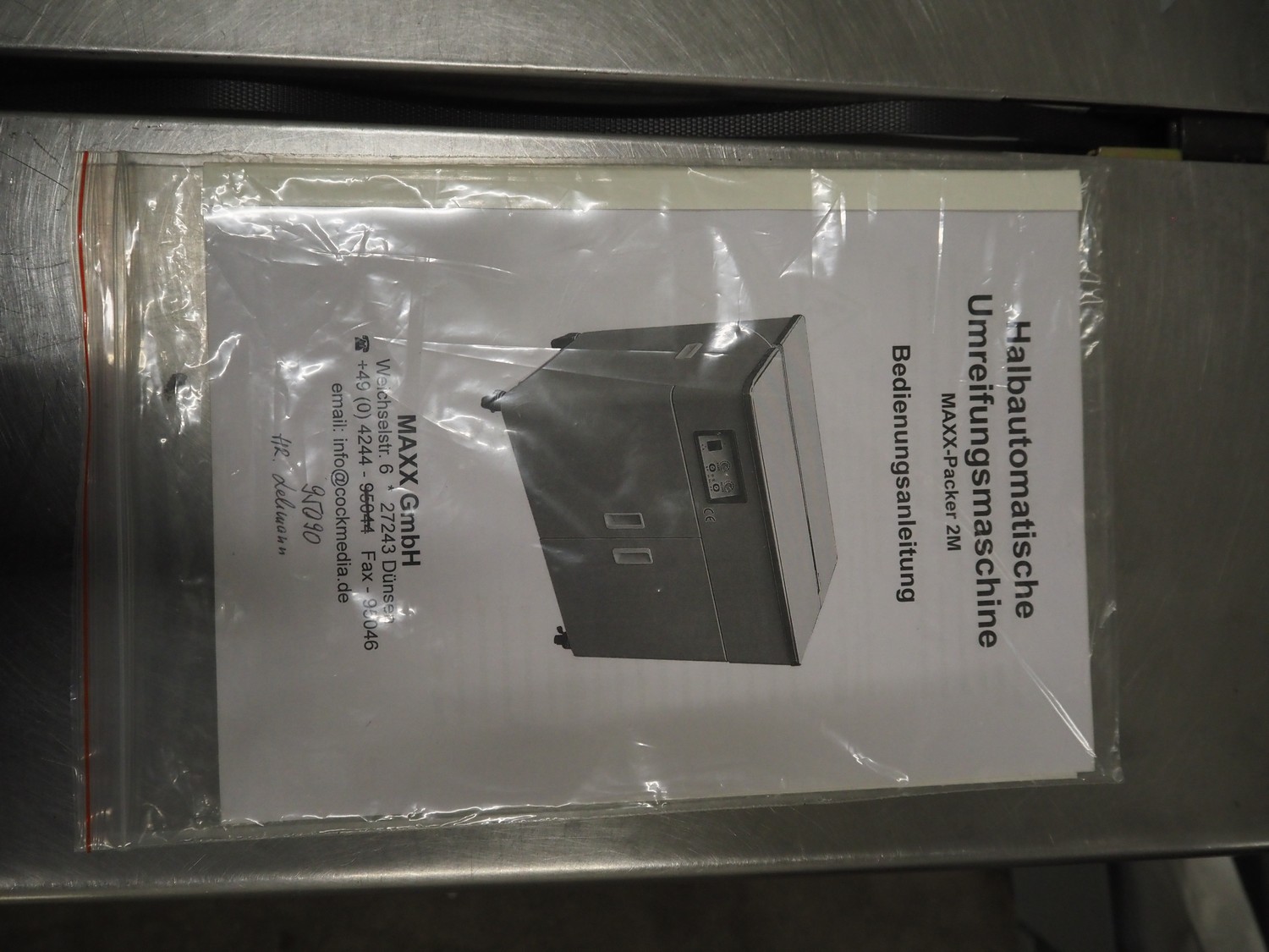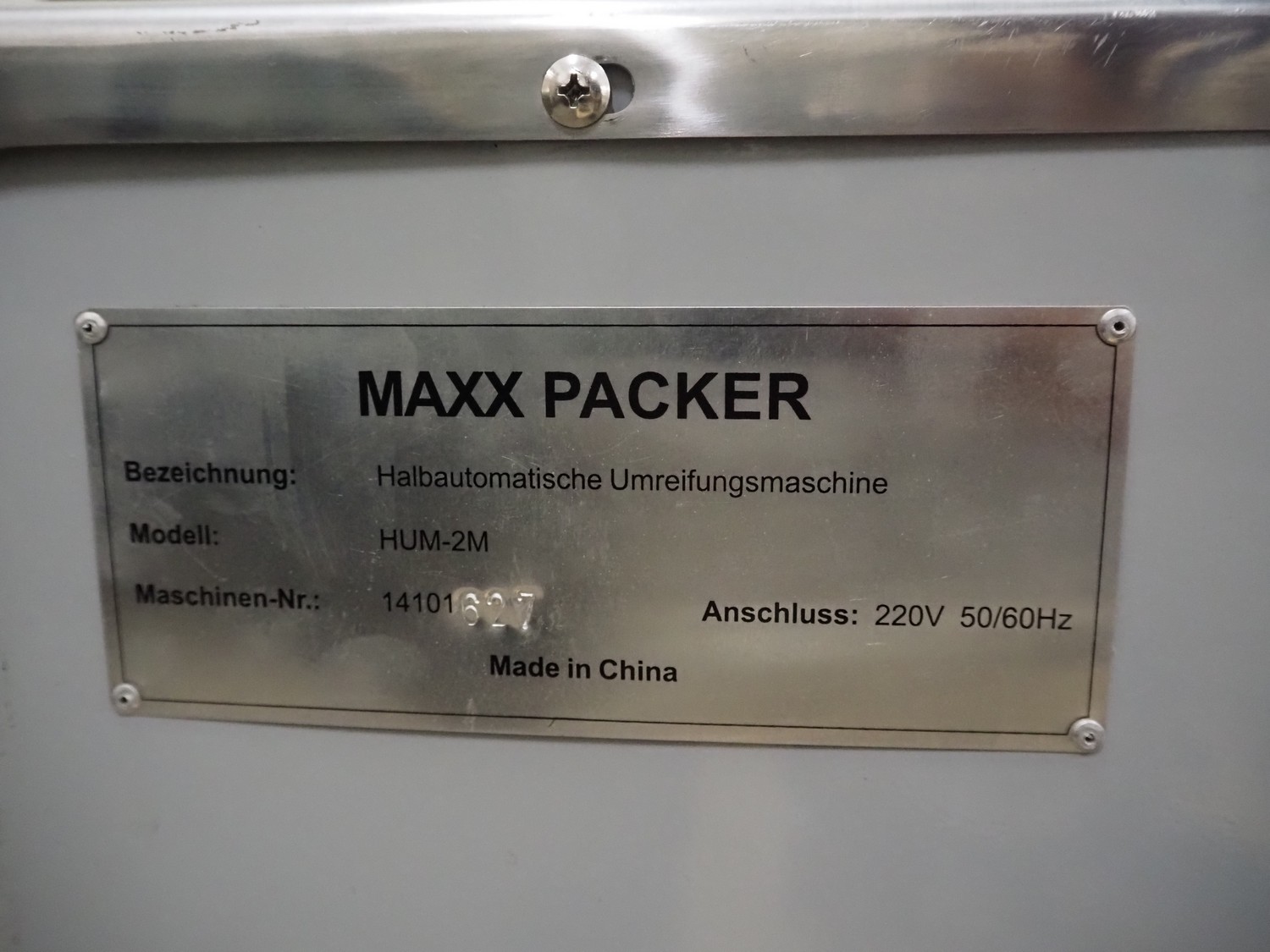 Maxx Packer mobile semi-automatic strapping machine, model: HUM-2M, serial number: 14101627, 220 V, 50/60 Hz, working width: 710 mm, total dimensions: 780 mm x 540 mm x 750 mm.