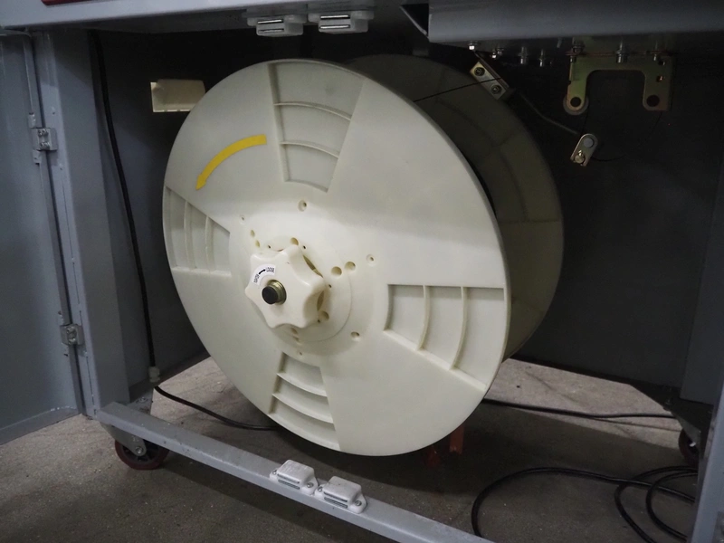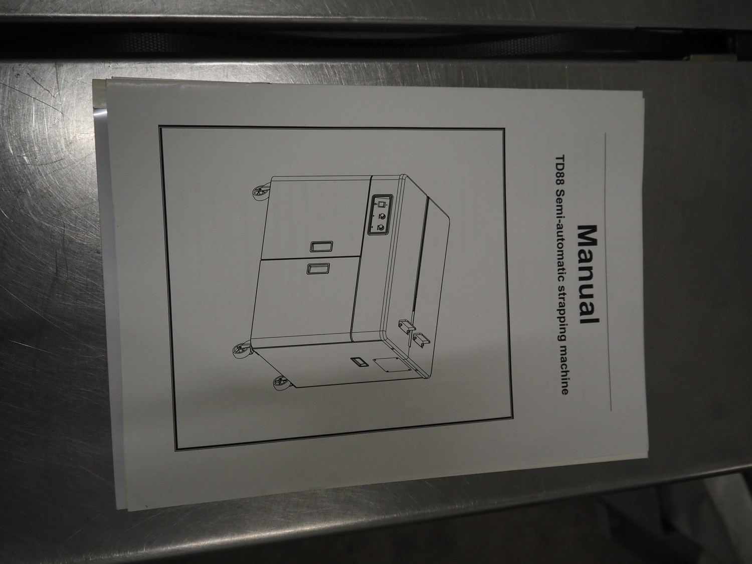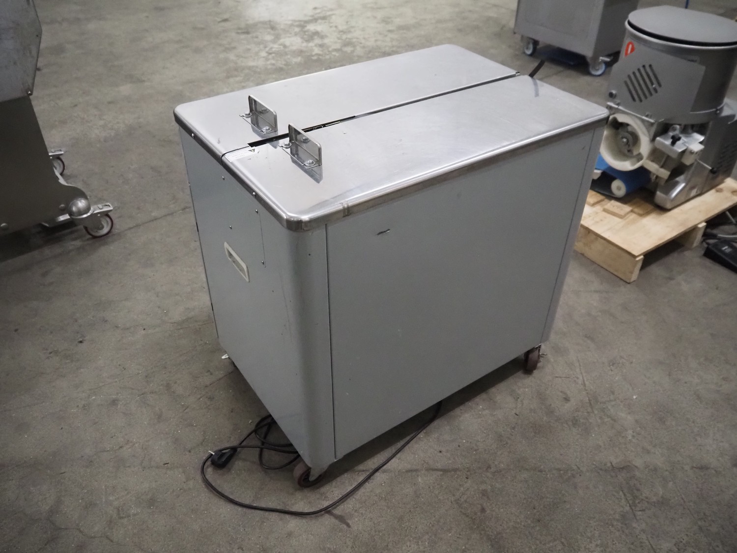 Maxx Packer mobile semi-automatic strapping machine, model: HUM-2M, serial number: 14101627, 220 V, 50/60 Hz, working width: 710 mm, total dimensions: 780 mm x 540 mm x 750 mm.