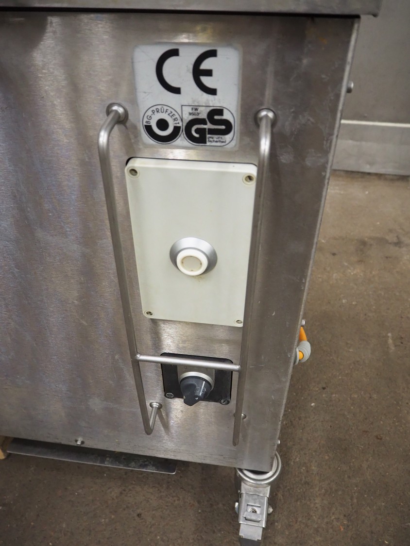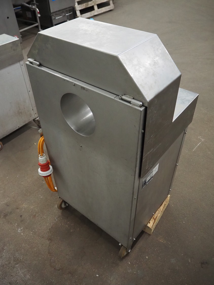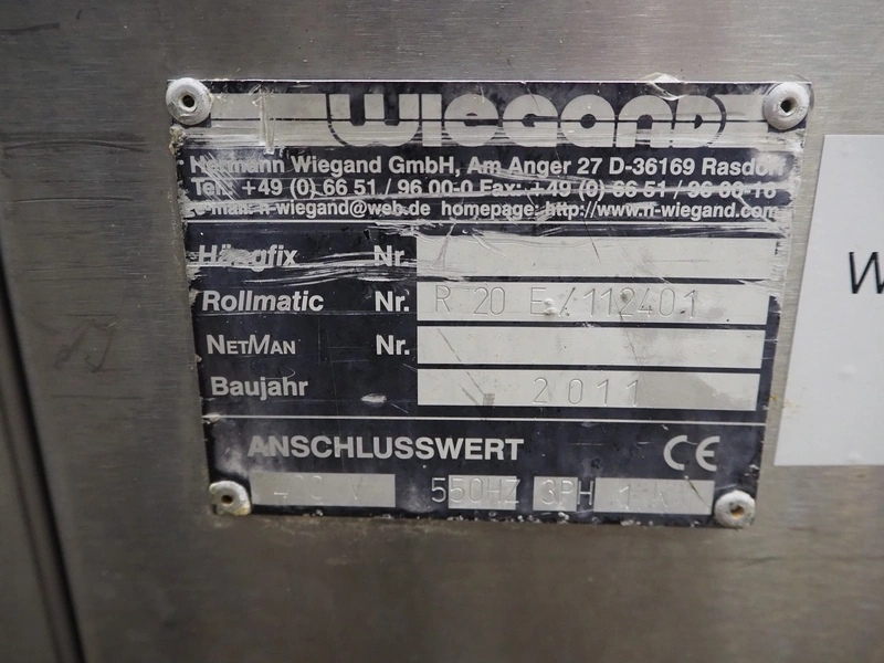 Wiegand mobile binding machine, number: R 20 E/112401, year of construction: 2011, 400 V, 3 Ph, 50 Hz, 1 kW, clearance: Ø 180 mm, total dimensions: 650 m x 540 mm x 1340 mm. Missing 1 wheel.
