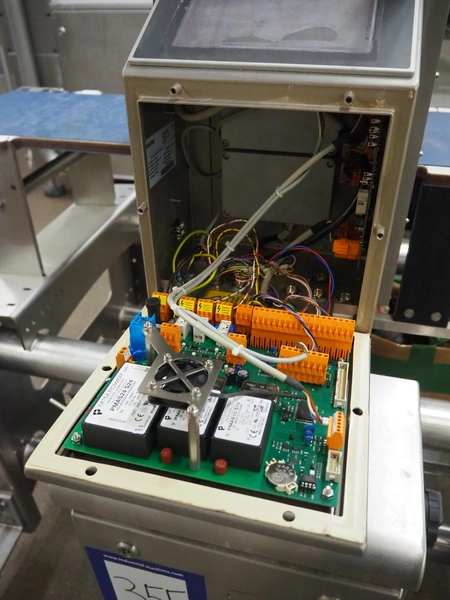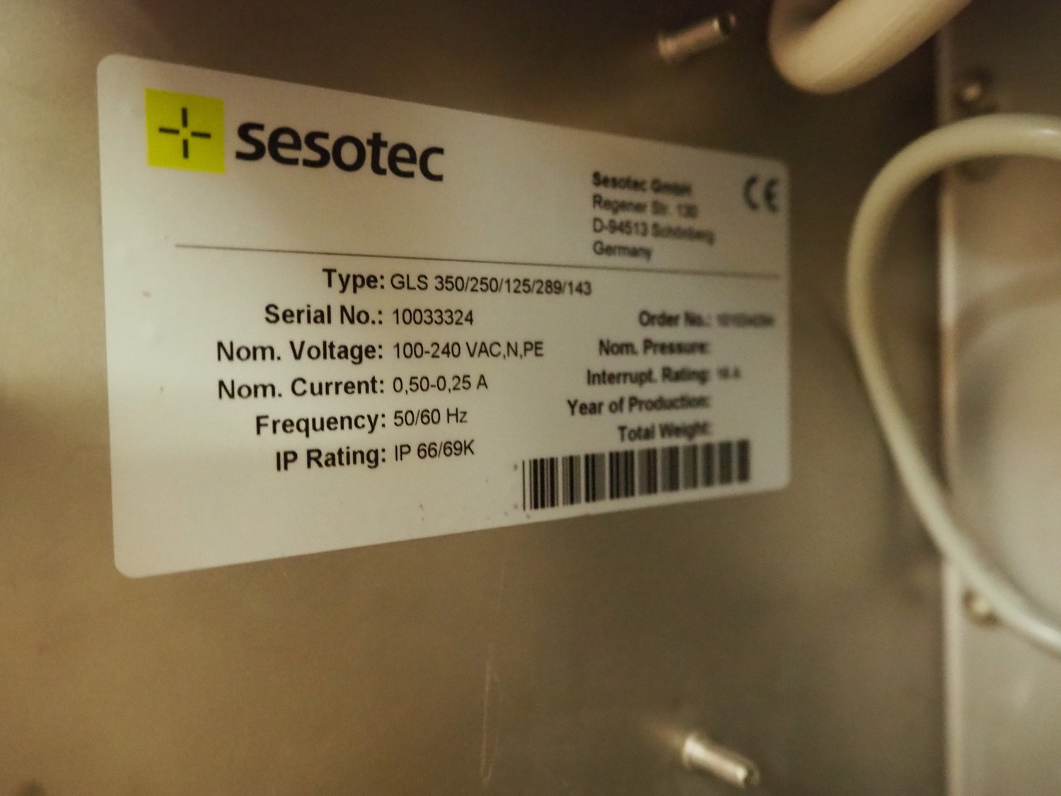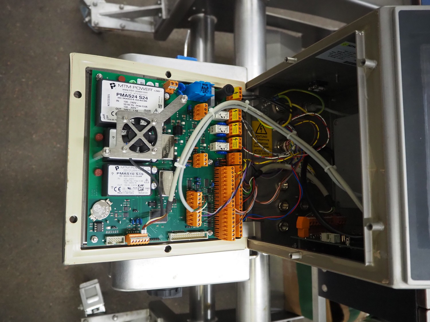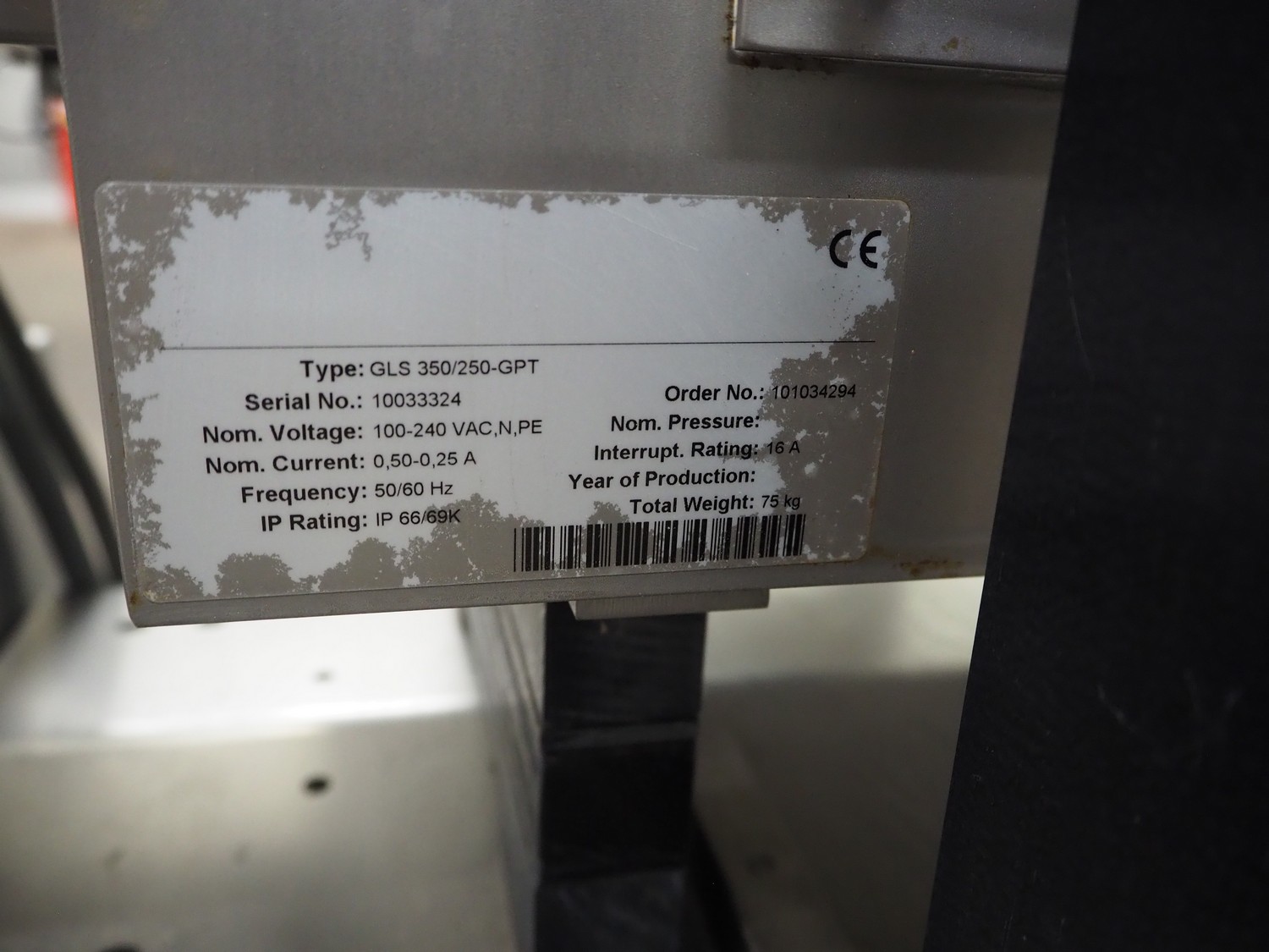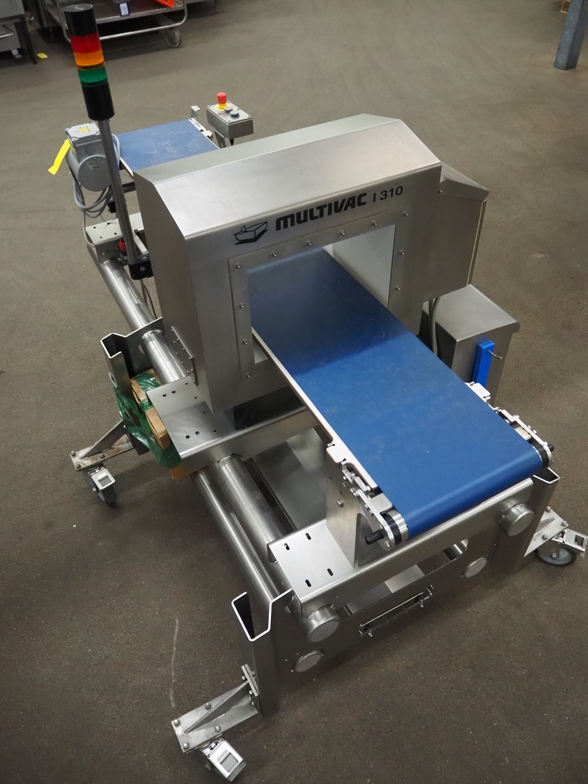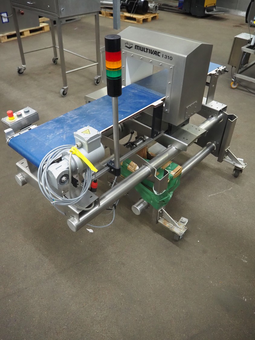 Multivac/Sesotec mobile metal detector, type: GLS 350/250/125/289/143, serial number: 1003324, 400 V, 50/60 Hz, clearance: 340 mm x 200 mm, plastic belt, belt width: 290 mm, total dimensions: 1800 mm x 1250 mm x 1400 mm.