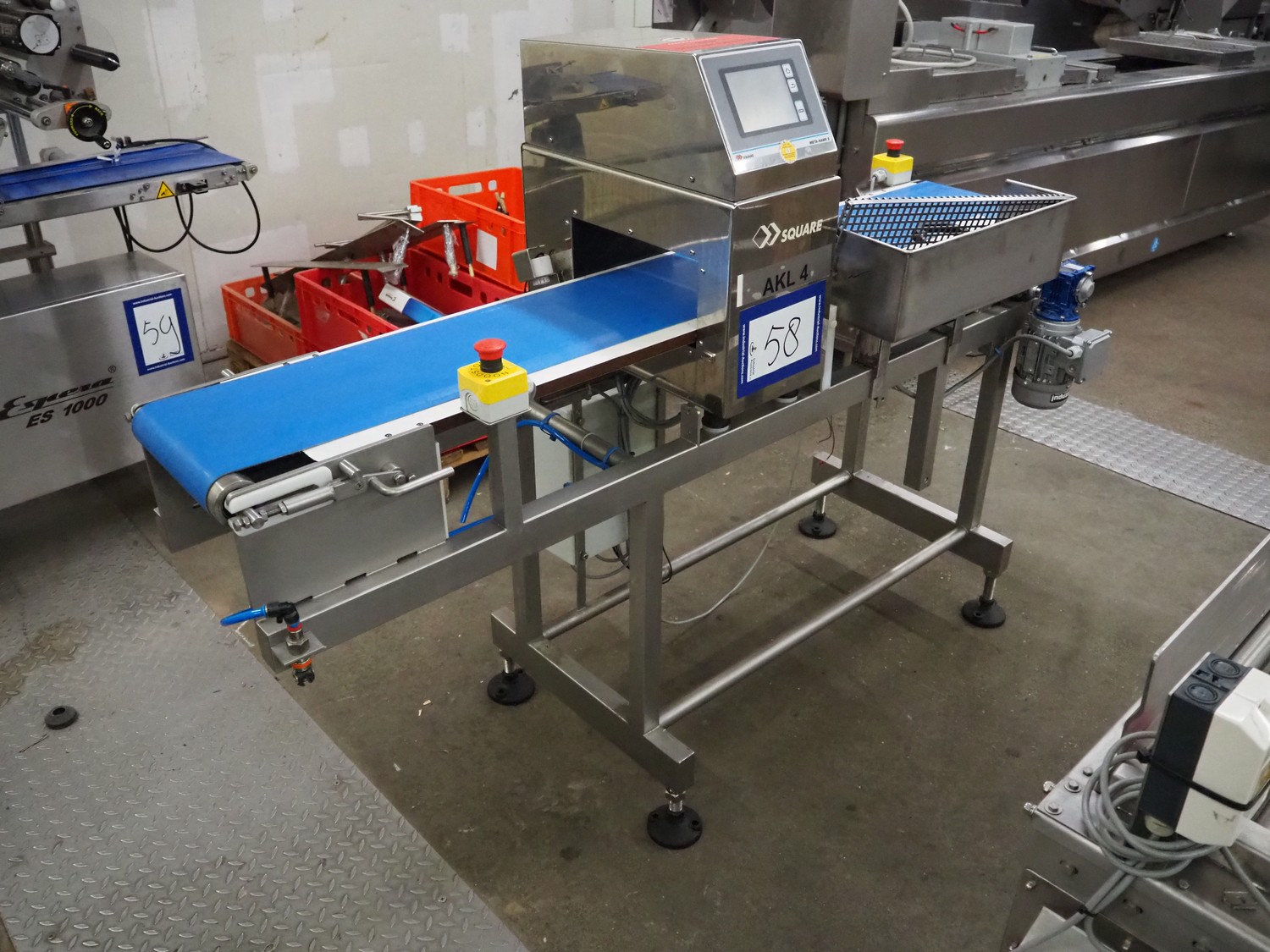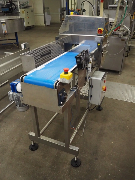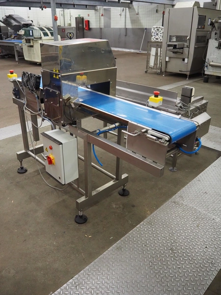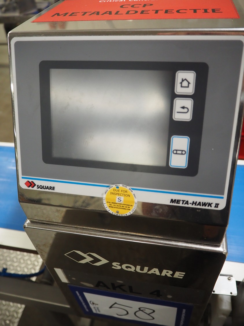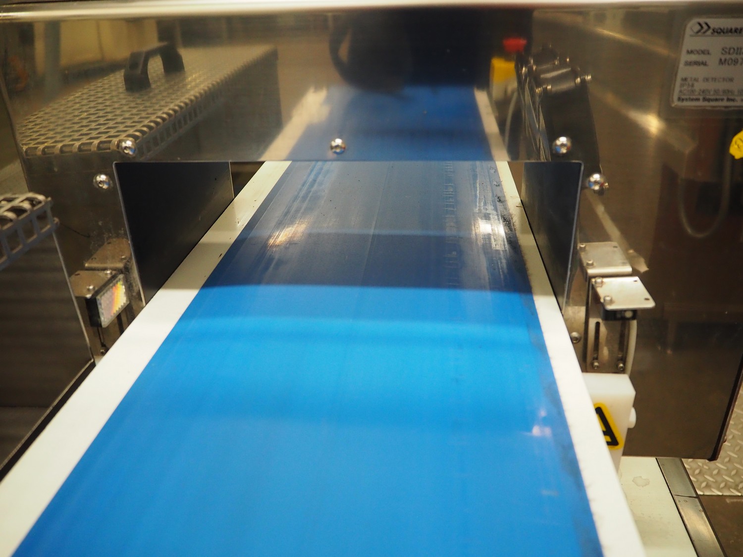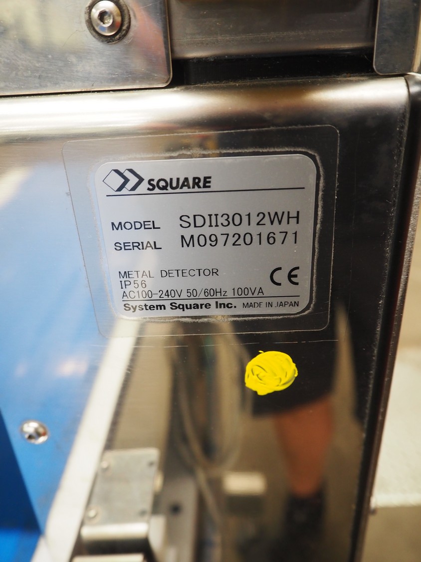 Square metal detector, model: SDII3012WH, serial number: M097201671, 100-240 V, 50/60 Hz, plastic belt, belt width: 250 mm, clearance: 300 mm x 110 mm, total dimensions: 1800 mm x 640 mm x 1320 mm.