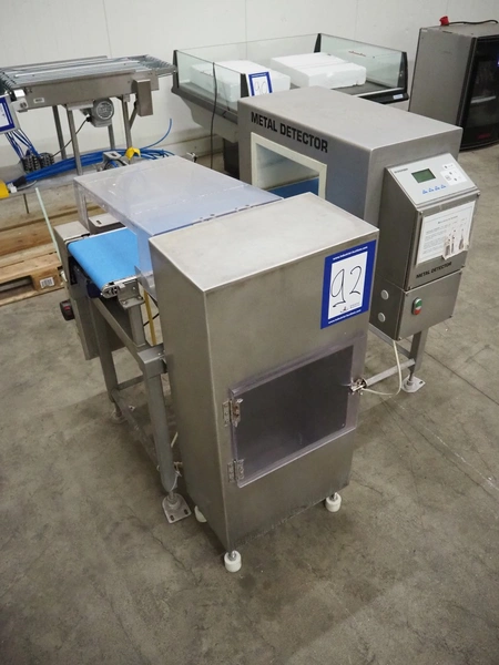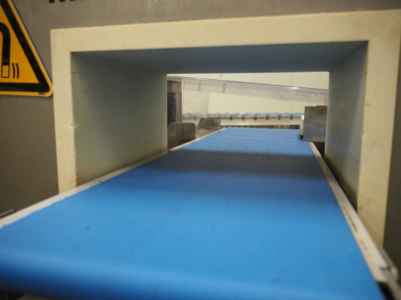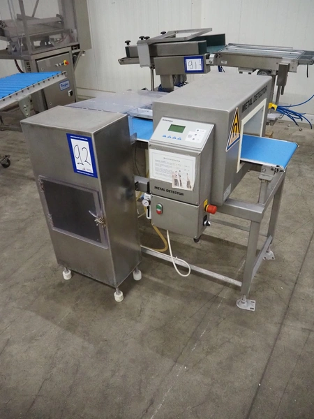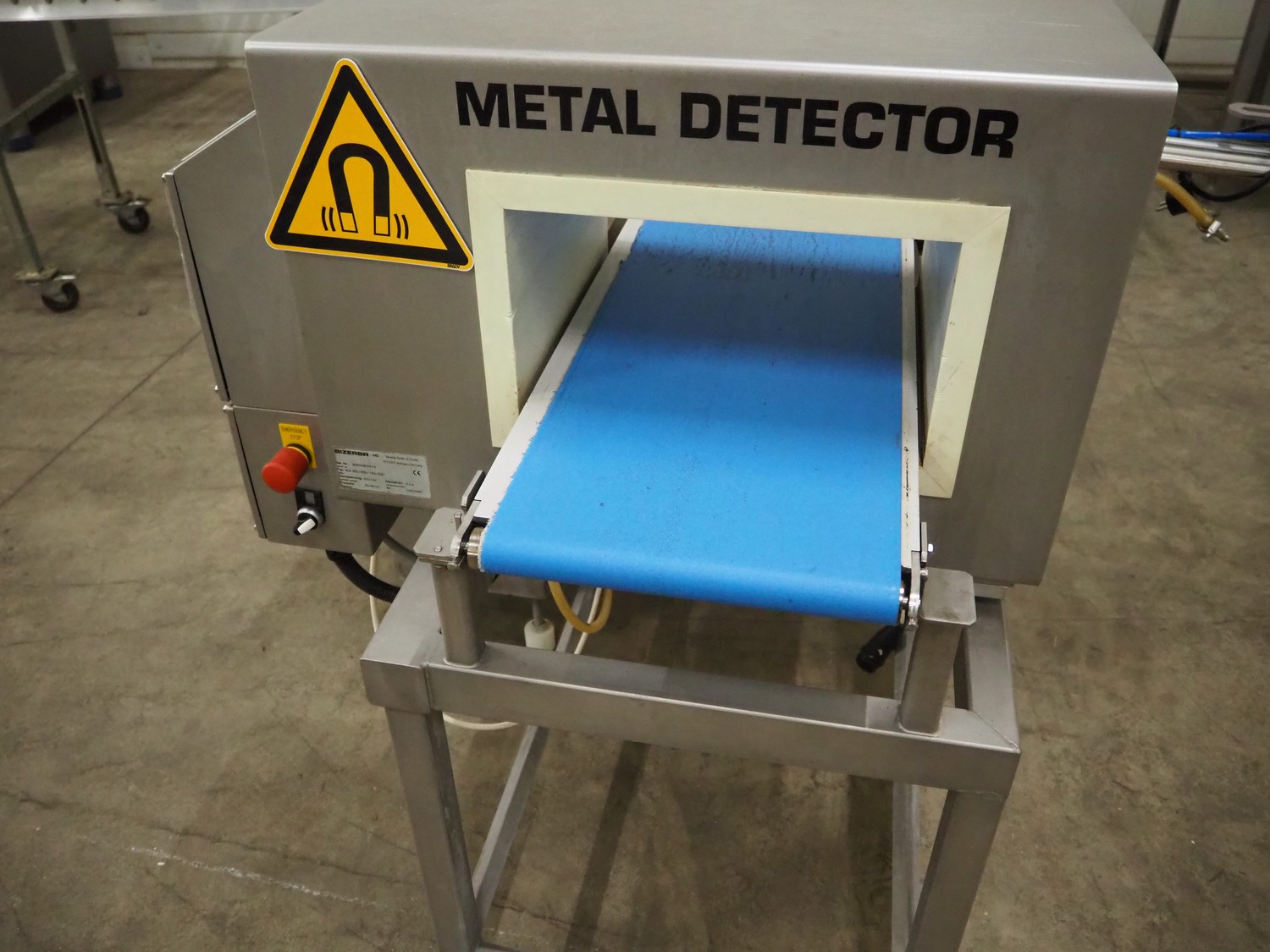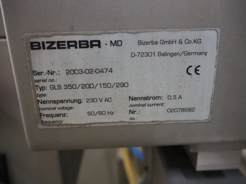 Bizerba metal detector with rejector, type: GLS 350/200/150/290, serial number: 2003-02-0474, year of construction: 2003, 230 V, 50/60 Hz, 0.5 A, plastic belt, belt width: 300 mm, clearance: 350 mm x 170 mm, total dimensions: 1300 mm x 1250 mm x 1140 mm.