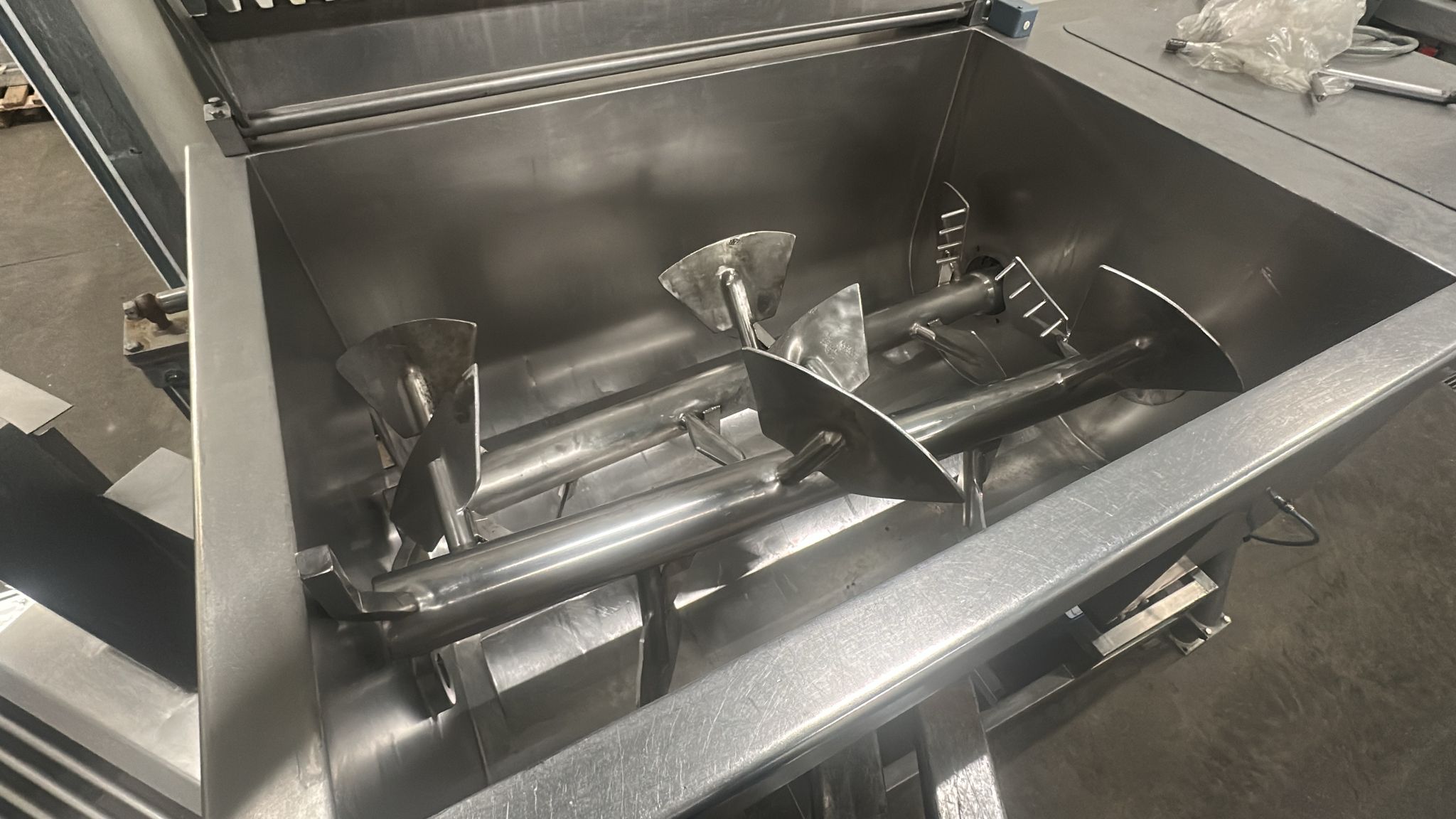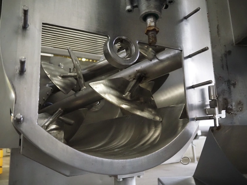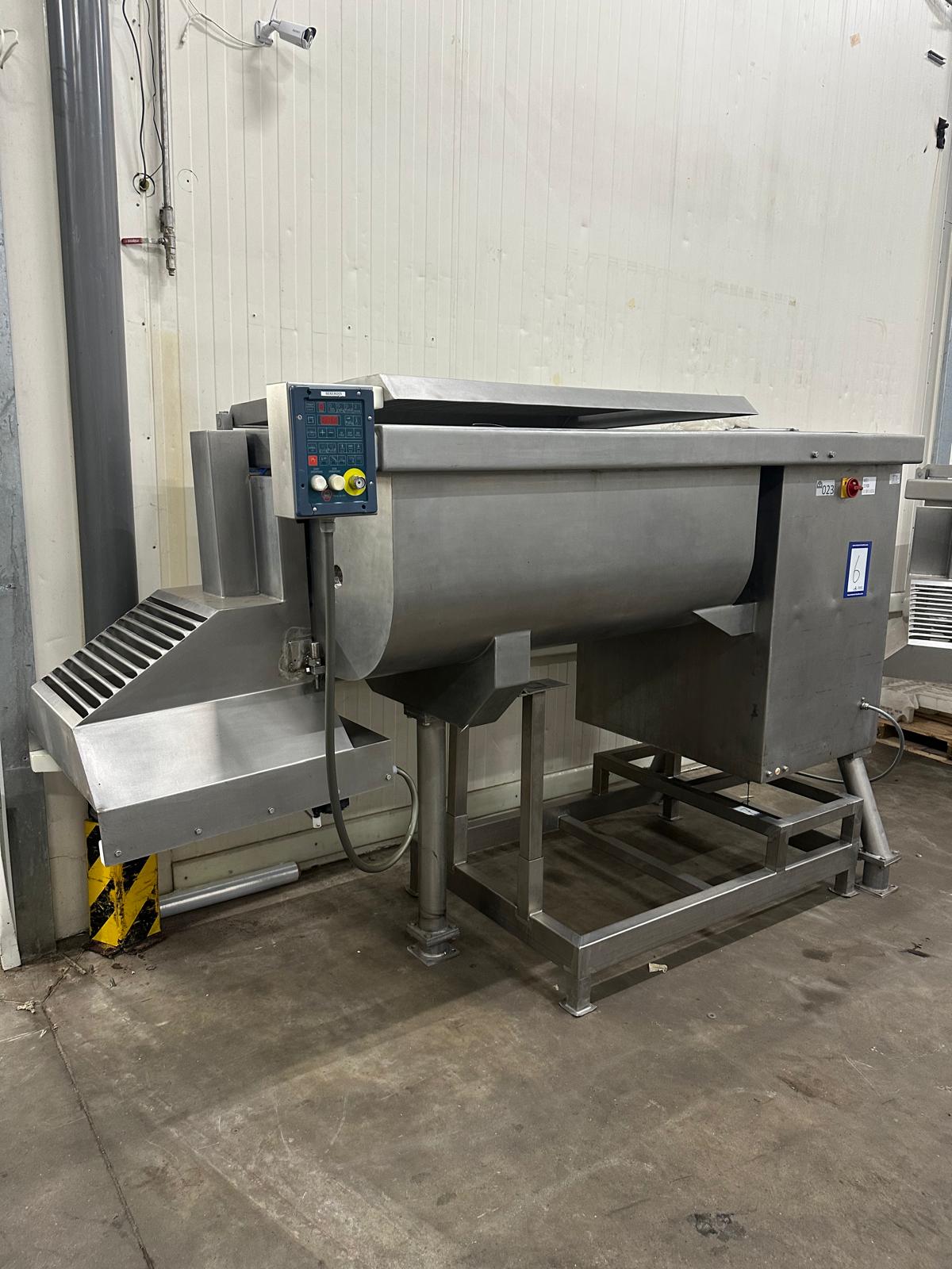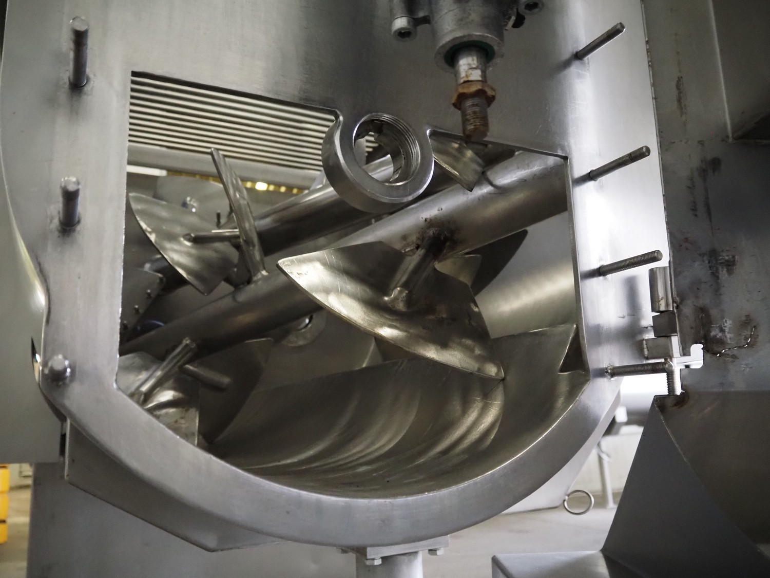 Risco S.p.A. double shaft paddle mixer, model: RS 750, serial number: 1207001, year of construction: 2007, 400 V, 3 Ph, 50 Hz, 7.8 kW, weight: 1010 kg, volume: 750 liter, dimensions: 2760 mm x 1170 mm x 1820 mm.