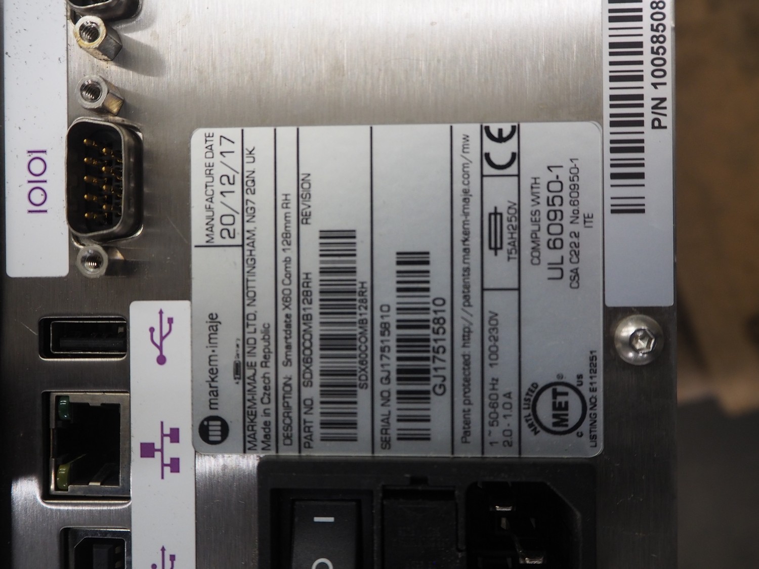Markem Imaje date printer, serial number: GJ17515810, year of construction: 20/12/17, dimensions: 700 mm x 420 mm x 400 mm.