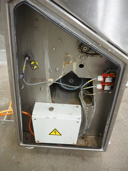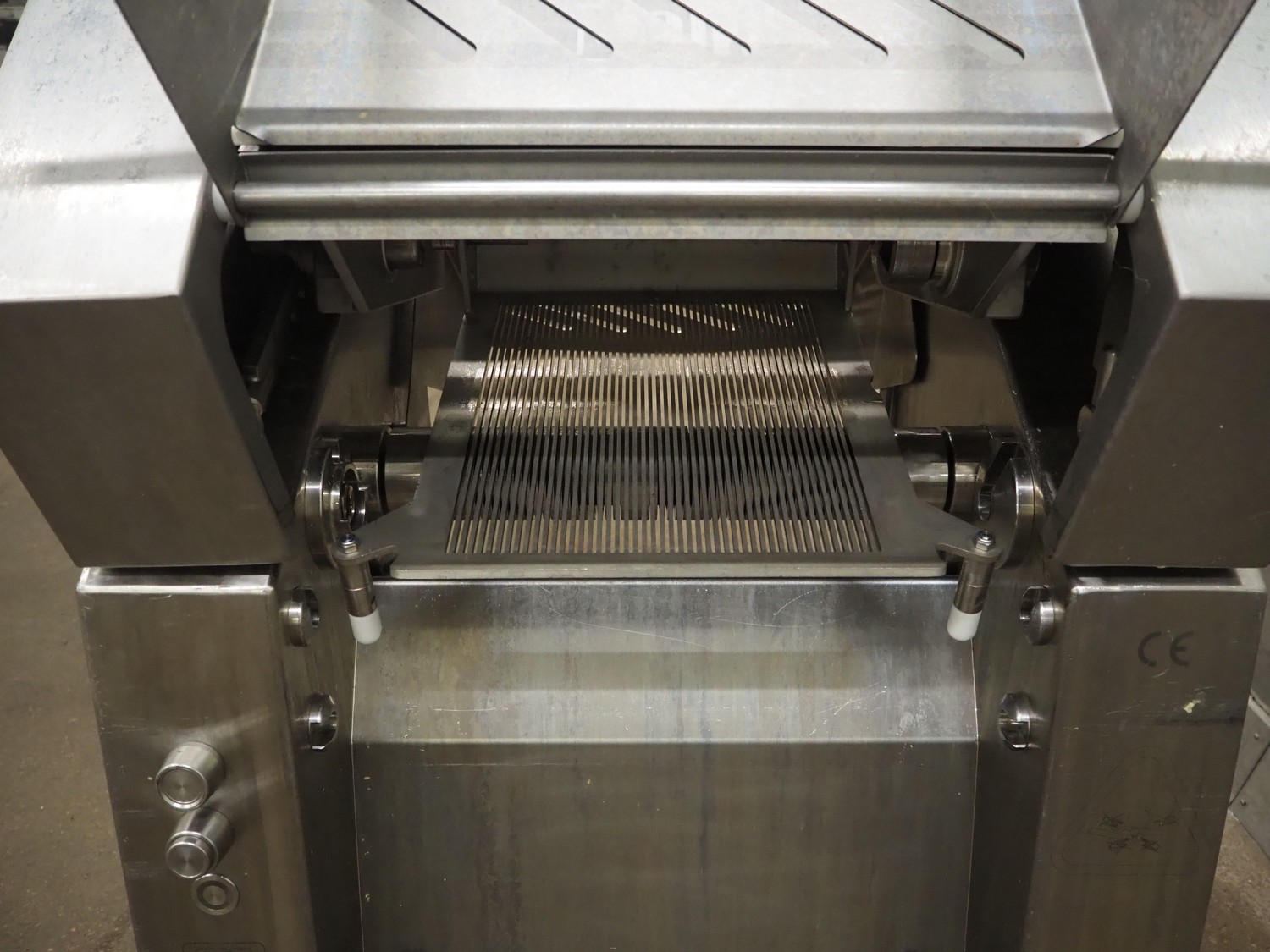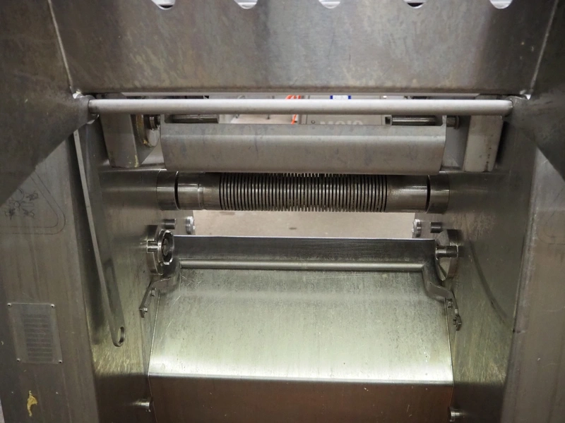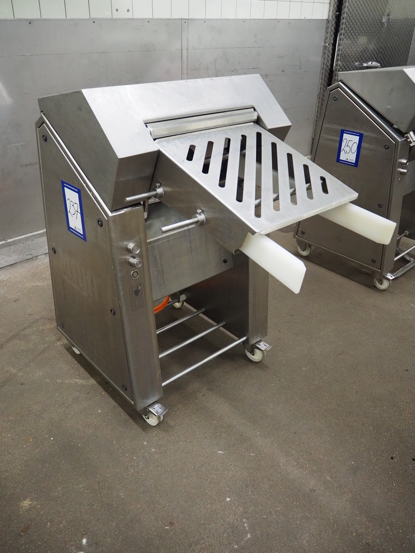 Maja Maschinenfabrik mobile strip cutter, type: ESB 4434 SH, serial number: C-01159, year of construction: 2011, 400 V, 3 Ph, 50 Hz, 3.55 A, 1.5 kW, working width: 440 mm, distance between knives: 0.5 mm, total dimensions: 1600 mm x 800 mm x 1300 mm. Incomplete, missing belts and knife.