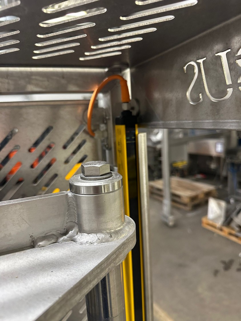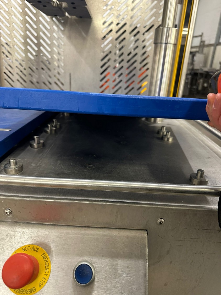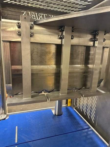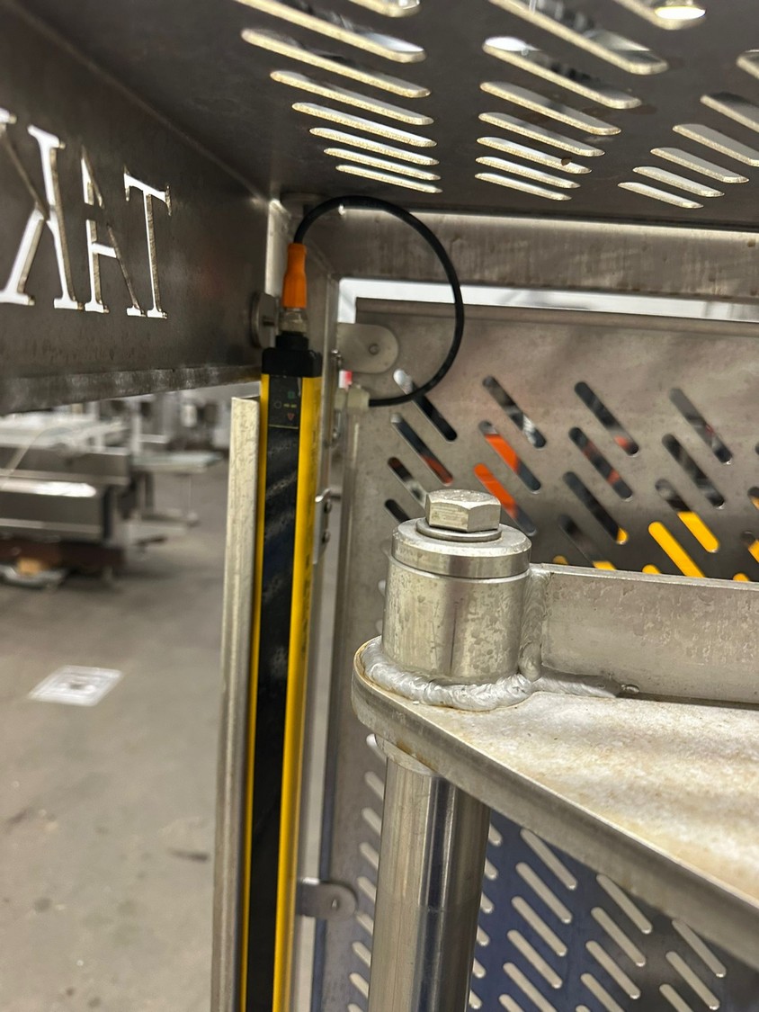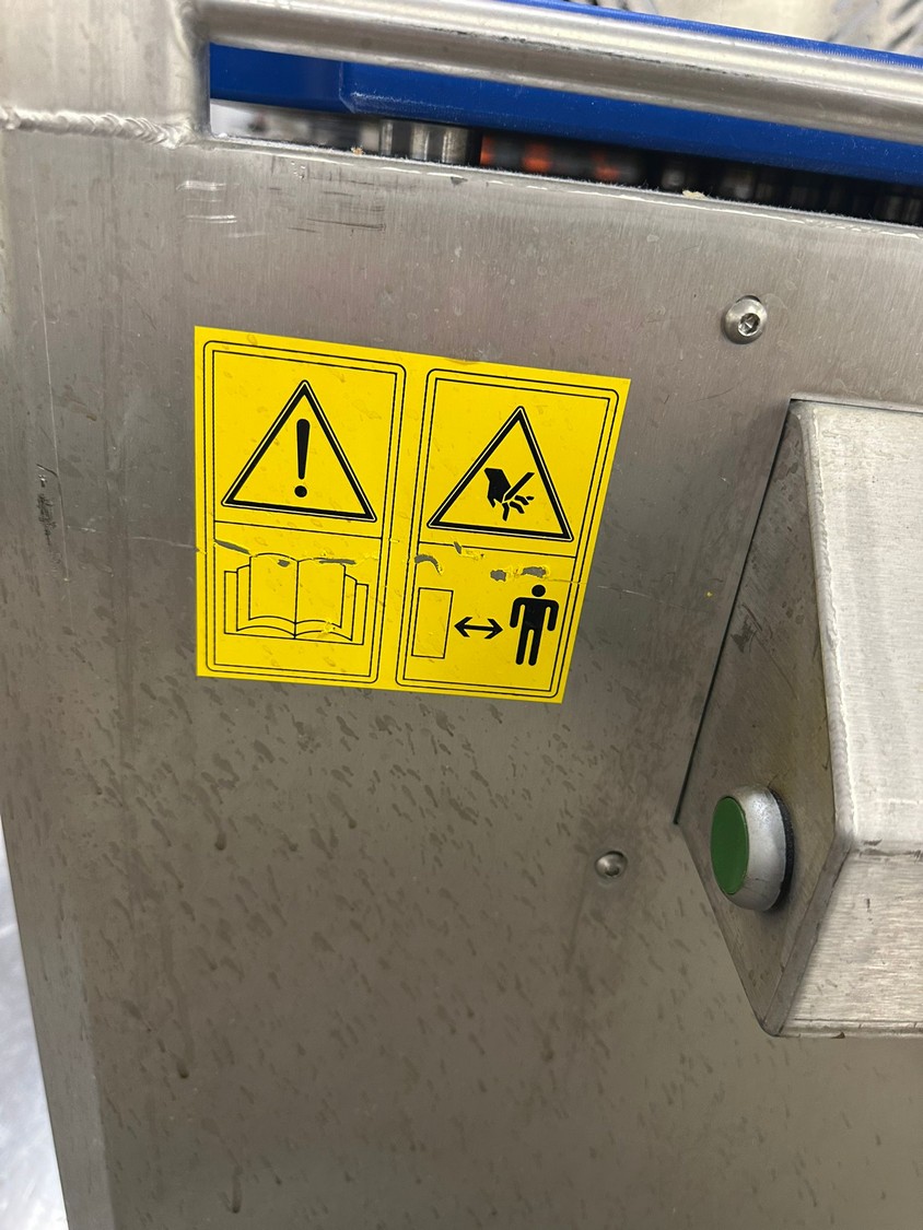 Tak-Tribus bacon slicer, type: SSE18, number: SSE180801, year of construction: 08-2018, 230 V, 50 Hz, 8 A, 1.5 kW, weight: 396 kg, knife width: 600 mm, total dimensions: 850 mm x 750 mm x 1880 mm.