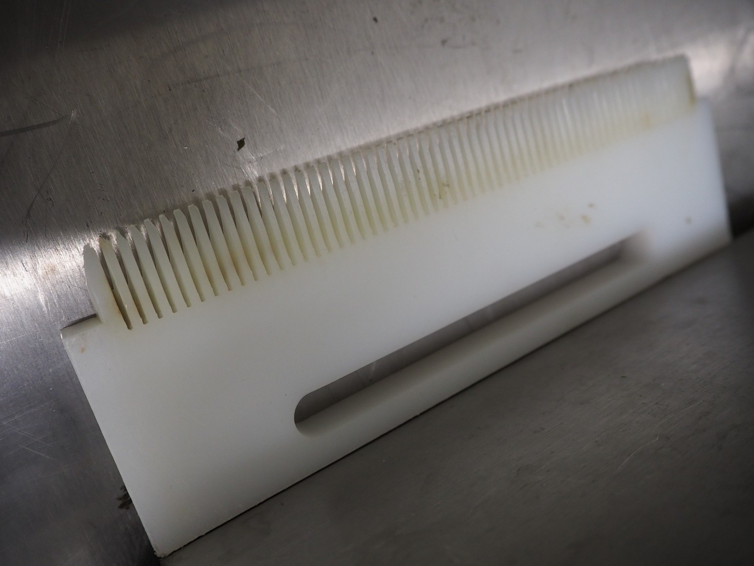 Strip cutter, working width: 200 mm, distance between knives: 2 mm, total dimensions: 500 mm x 170 mm x 300 mm.