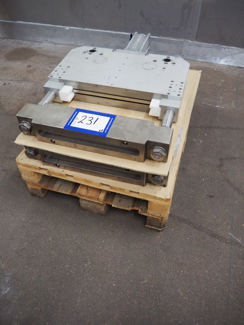 Pallet with 2 presses for thermoformer, dimensions: (2x) 1000 mm x 720 mm x 130 mm. Never used.