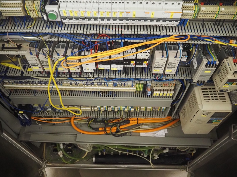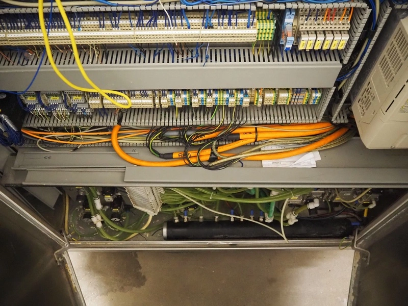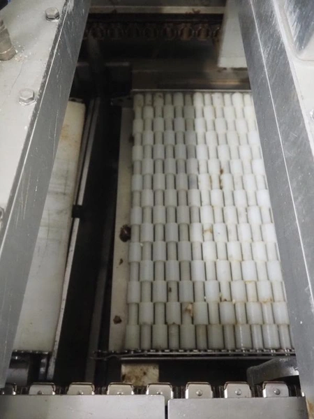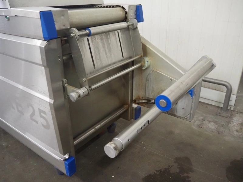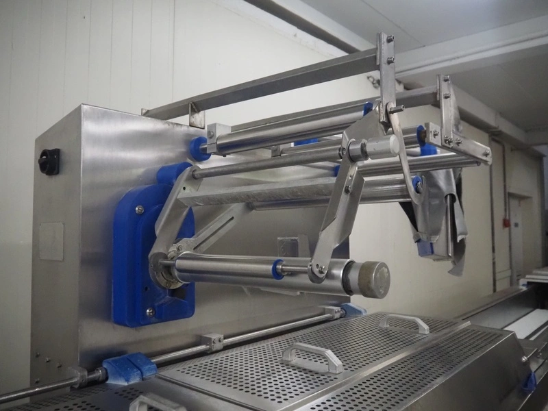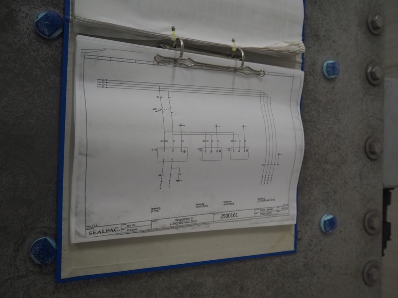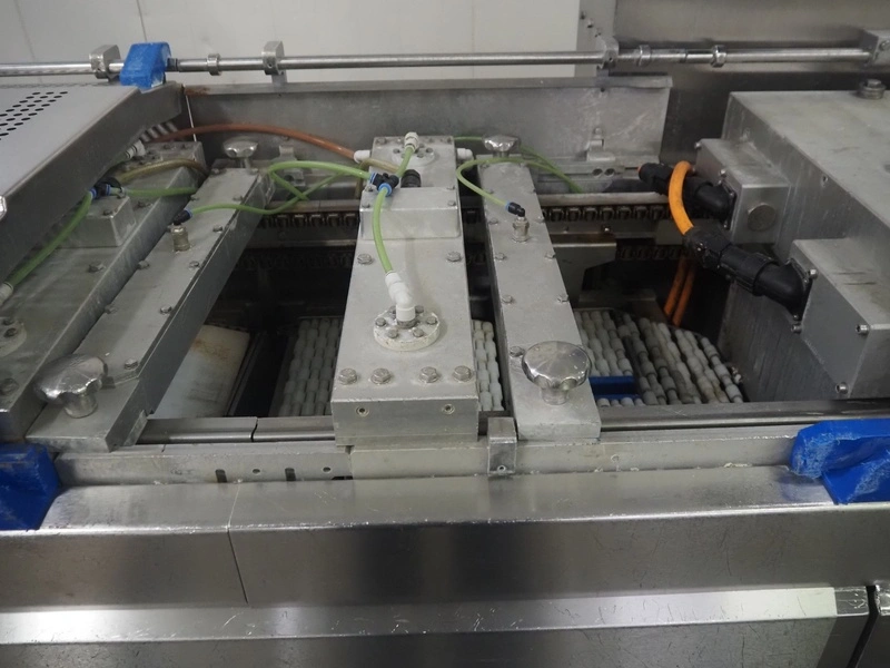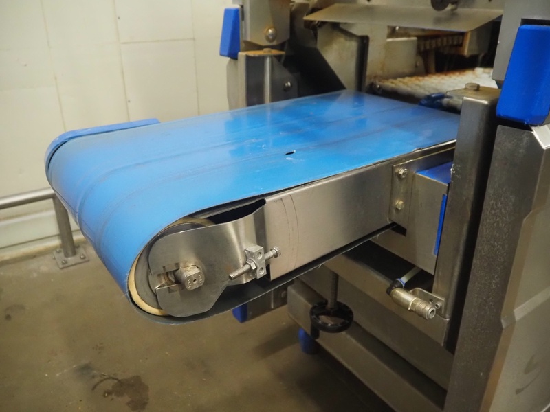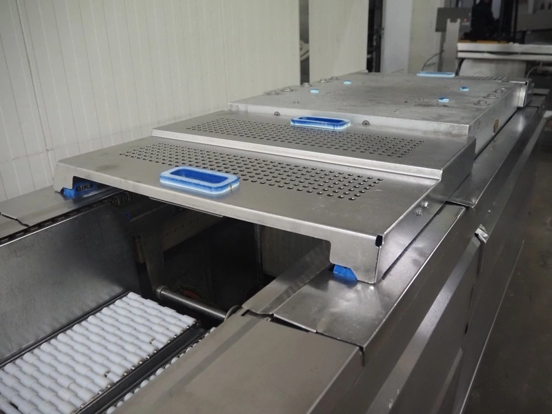 Sealpac thermoformer, type: RE25, machine number: 2500161, year of construction: 2009, 240/400 V, 3 Ph, 50 Hz, 30 A, 12 kW, film width: 450 mm, dye: 390 mm x 350 mm, plastic outfeed belt, belt width: 400 mm, total dimensions: 8700 mm x 1100 mm x 2150 mm.