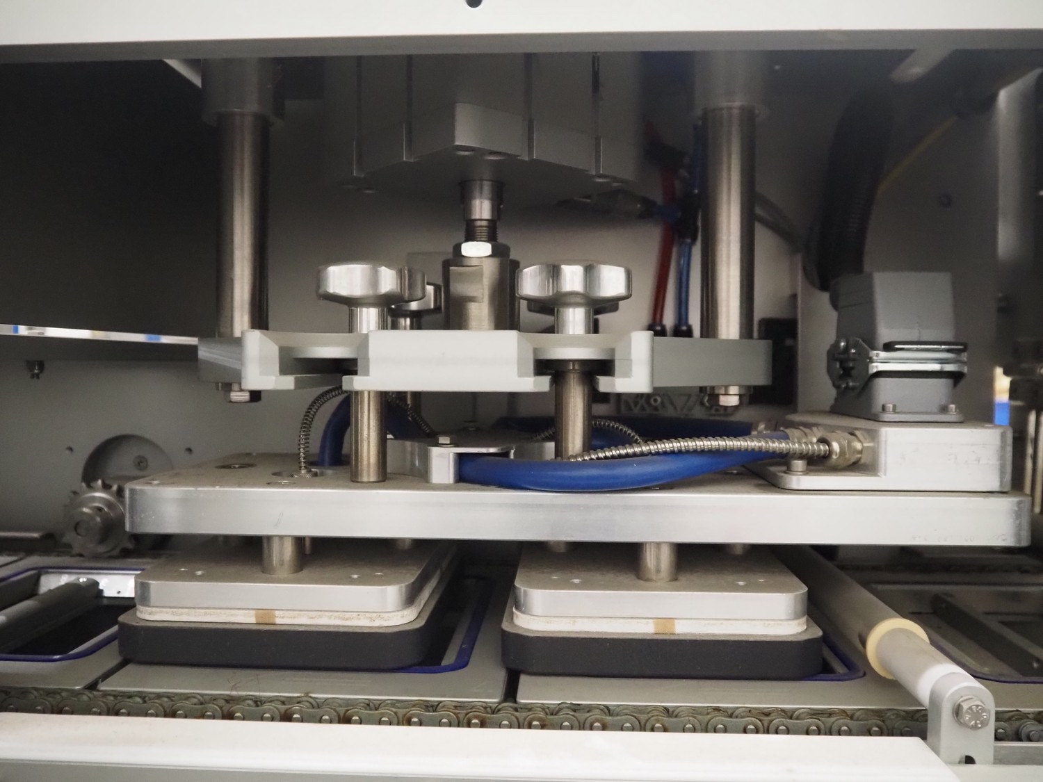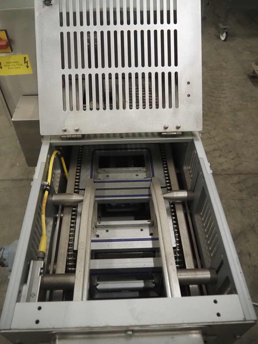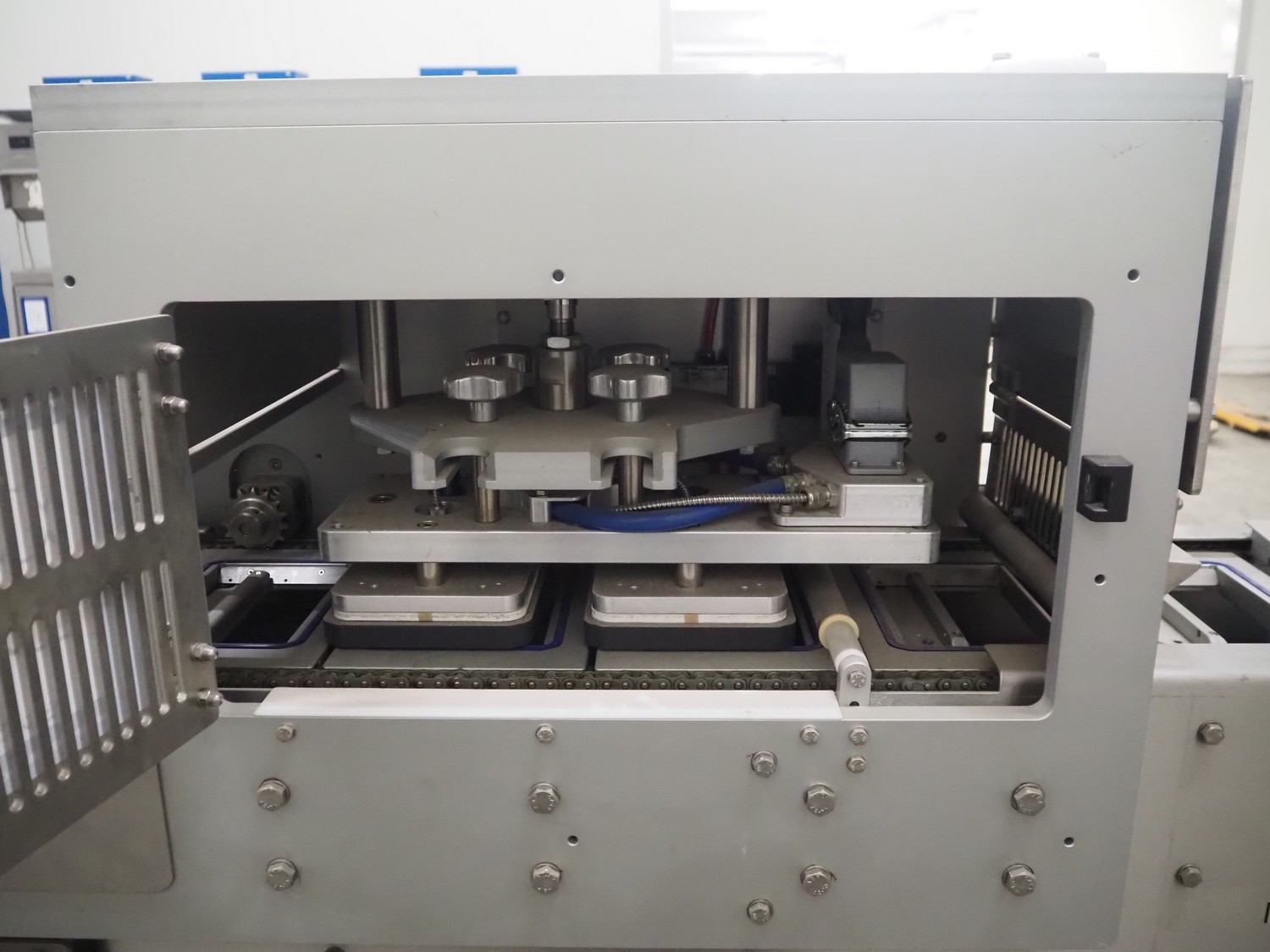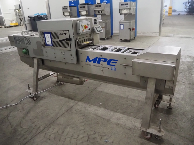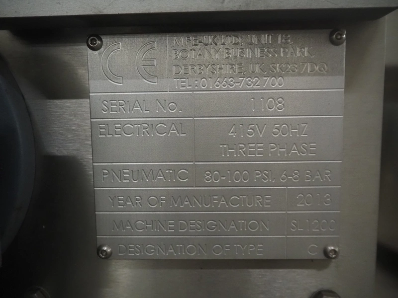 MPE mobile traysealer, model: SL 1200, serial number: 1108, year of construction: 2013, 415 V, 3 Ph, 50 Hz, dimensions dye: 190 mm x 145 mm, total dimensions: 2750 mm x 780 mm x 1230 mm.