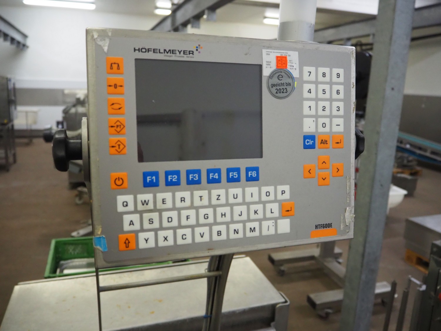 Höfelmeyer indicator for weighing scale, model: HKW2843HE-C7.55-A-3.75-S, serial number: 6113276, year of construction: 2018, 400 V, 50 Hz, 1.55 kVA, weighing range: 150 gram - 2500 gram, dimensions: 800 mm x 870 mm x 1850 mm.
