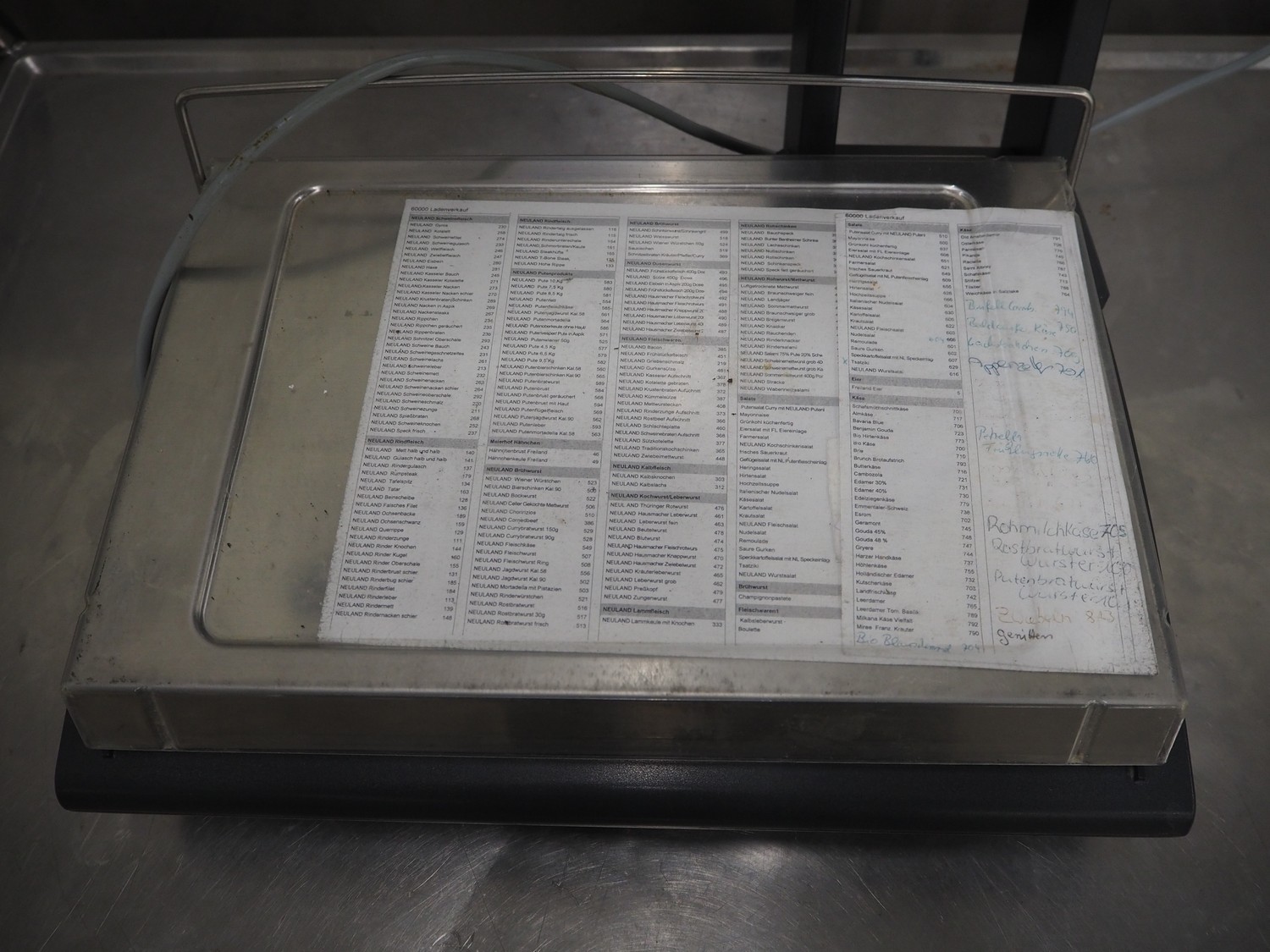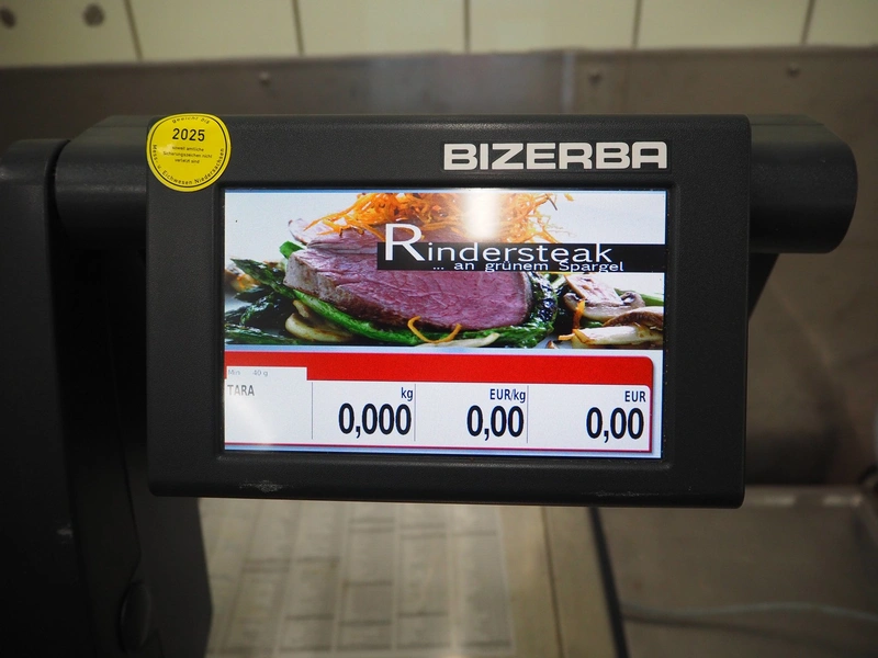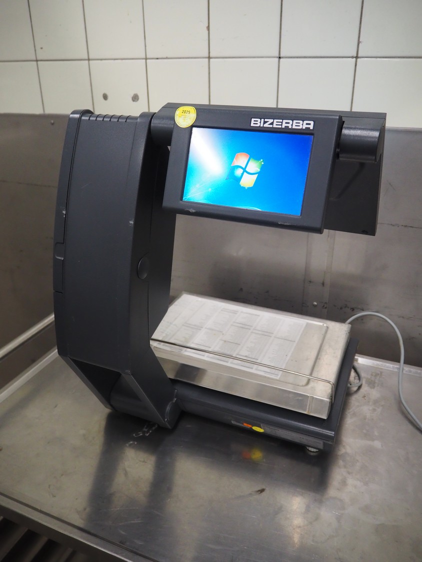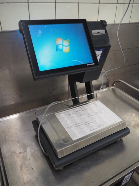 Bizerba weighing scale with indicator, type: KH II 800, serial number: 11387843, 120-240 V, 50/60 Hz, 0.7-0.35 A, maximum weight: 6/15 kg, minimum weight: 40 gram, e = 2/5 gram, T= -6/15 kg, dimensions: 440 mm x 430 mm x 580 mm.