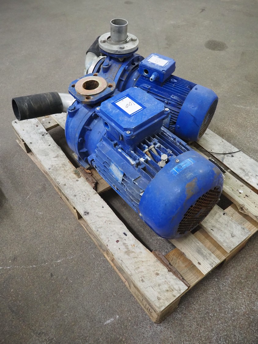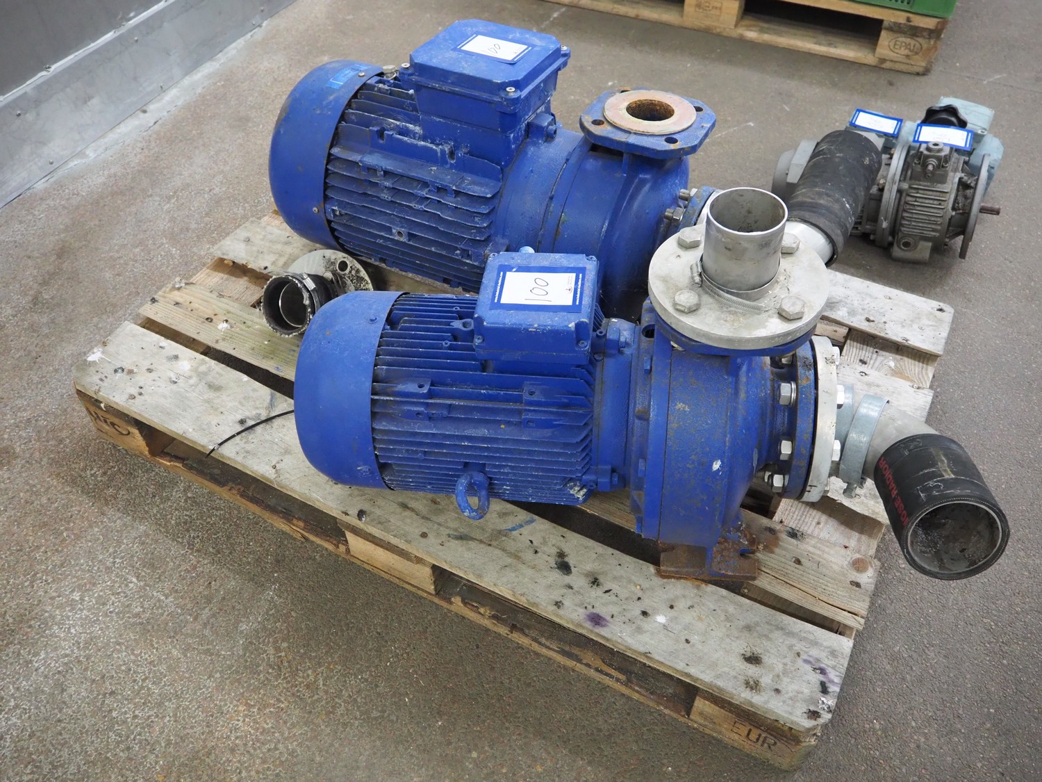 2 Loware centrifugal pumps, dimensions: 900 mm x 300 mm x 440 mm and 750 mm x 300 mm x 480 mm.