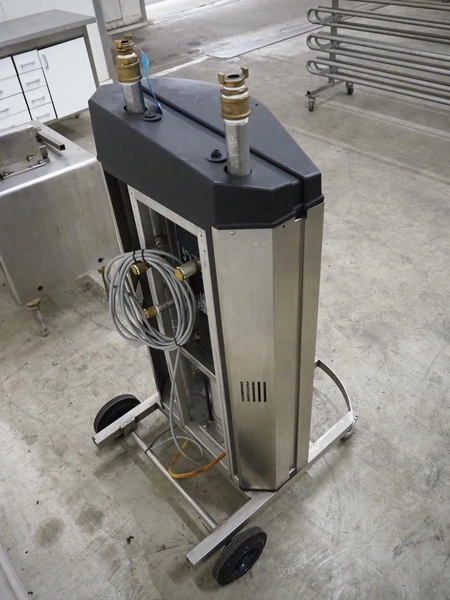 Grundfos mobile centrifugal booster pump, diameter in/output pipe: 50 mm, total dimensions: 800 mm x 700 mm x 1450 mm.