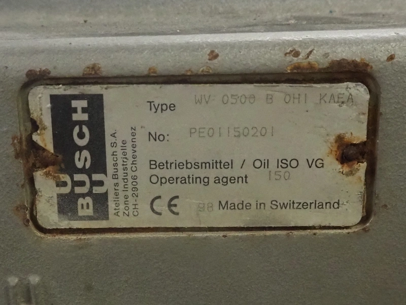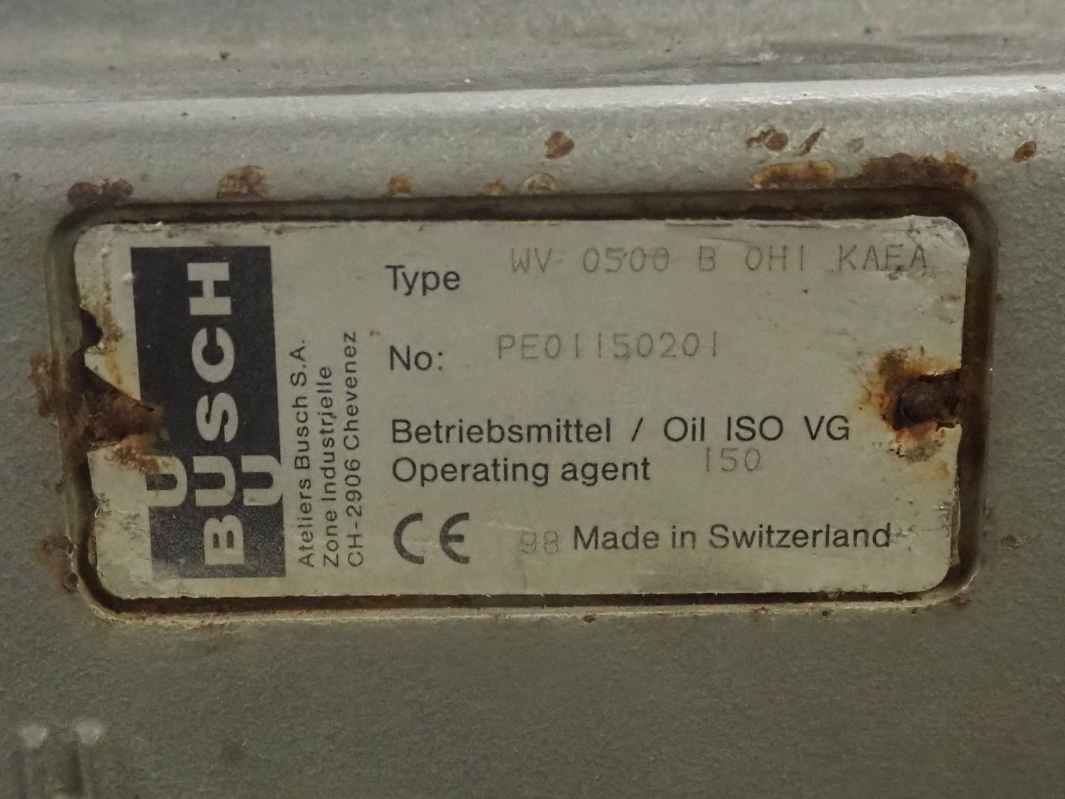 Busch booster pump, type: WV 0500 B 0HI KAEA, number: PE01150201, year of construction: 1998, capacity: 500 m³ per hour, dimensions: 880 mm x 350 mm x 530 mm.