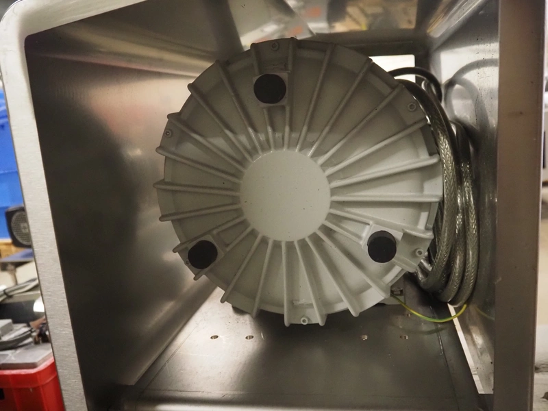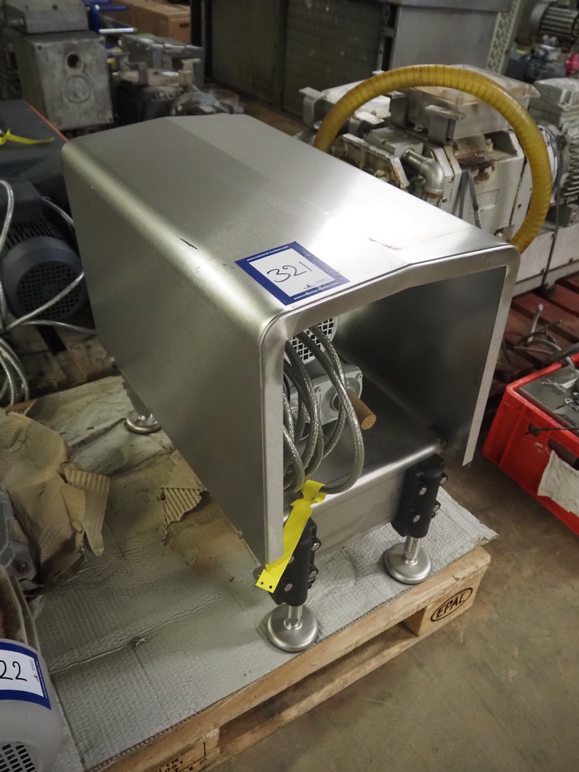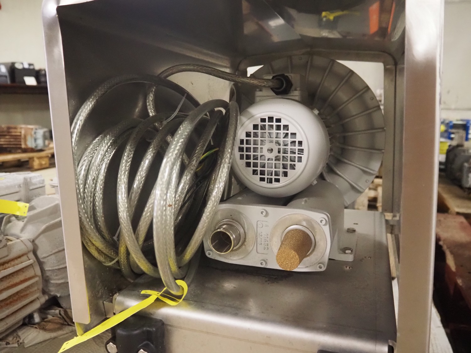 Side channel vacuum pump with s/s frame and covers, dimensions: 600 mm x 360 mm x 590 mm.