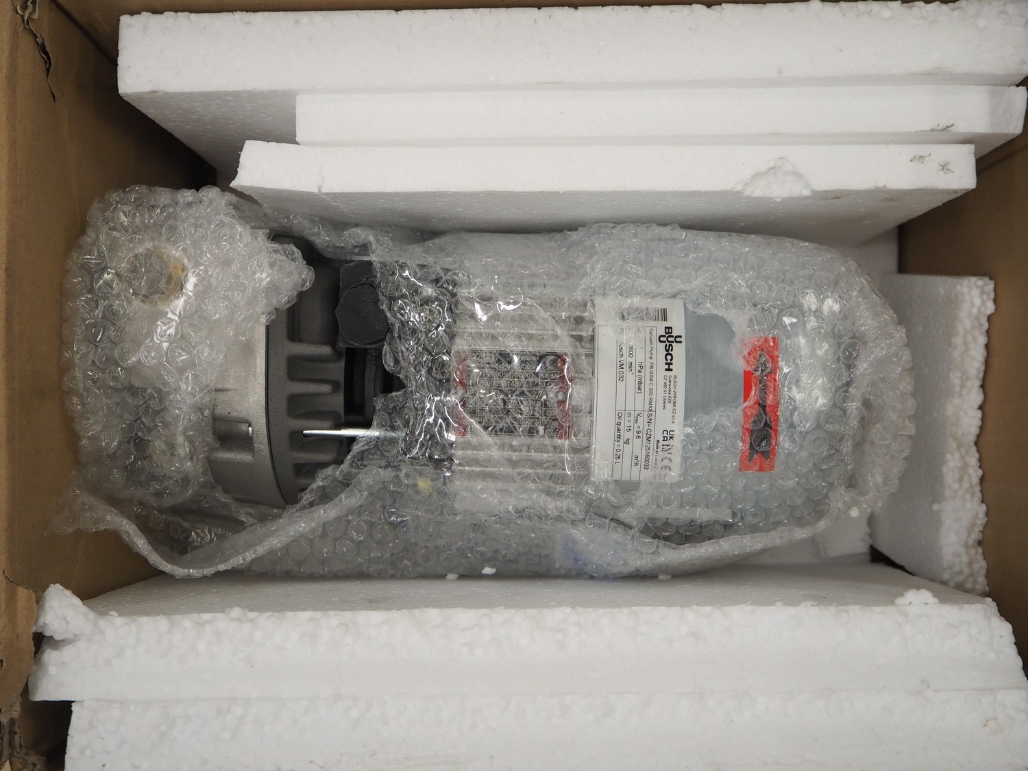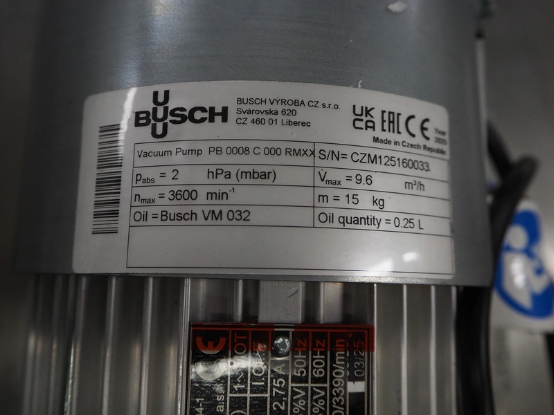 Busch vacuum pump, type: PB 0008 C 000 RMXX, serial number: CZM125160033, year of construction: 2025, capacity: 9.6 m³ per hour, dimensions: 350 mm x 200 mm x 200 mm.