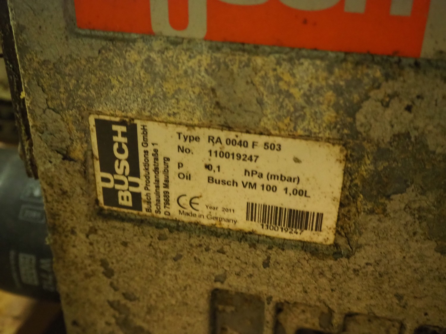 Busch vacuum pump, type: RA 0040 F 503, number: 110019247, year of construction: 2011, capacity: 40 m³ per hour, dimensions: 650 mm x 300 mm x 400 mm.