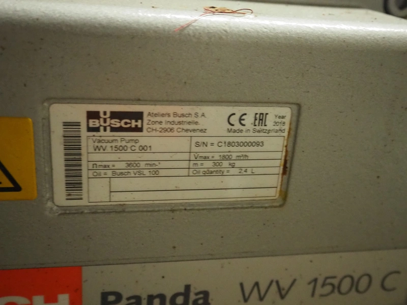Busch vacuum booster pump, type: WV 1500 C 001, serial number: C1803000093, year of construction: 2018, capacity: 1800 m³ per hour, dimensions: 1050 mm x 400 mm x 400 mm.