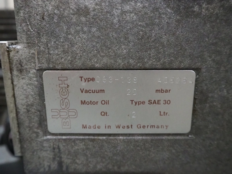 Busch vacuum pump, type: 063-138, number: 405264, capacity: 63 m³ per hour, dimensions: 680 mm x 400 mm x 300 mm.