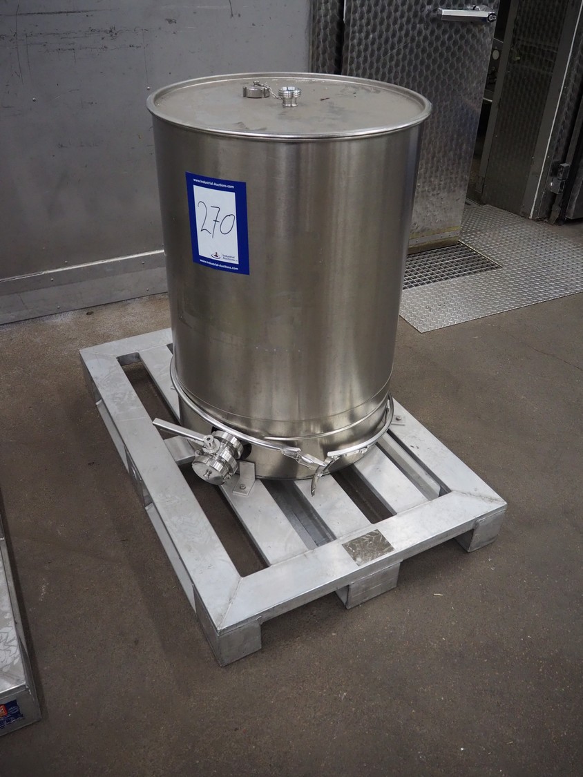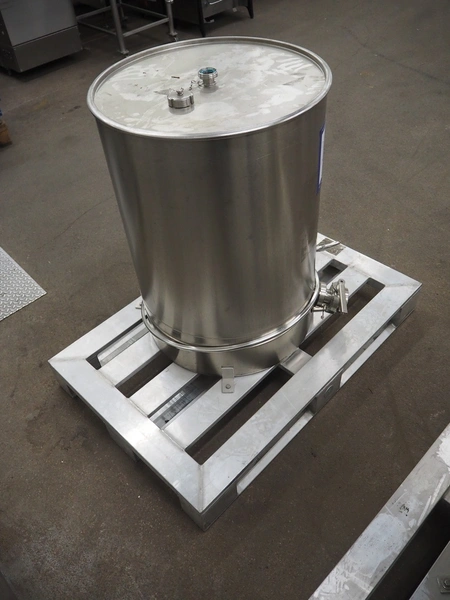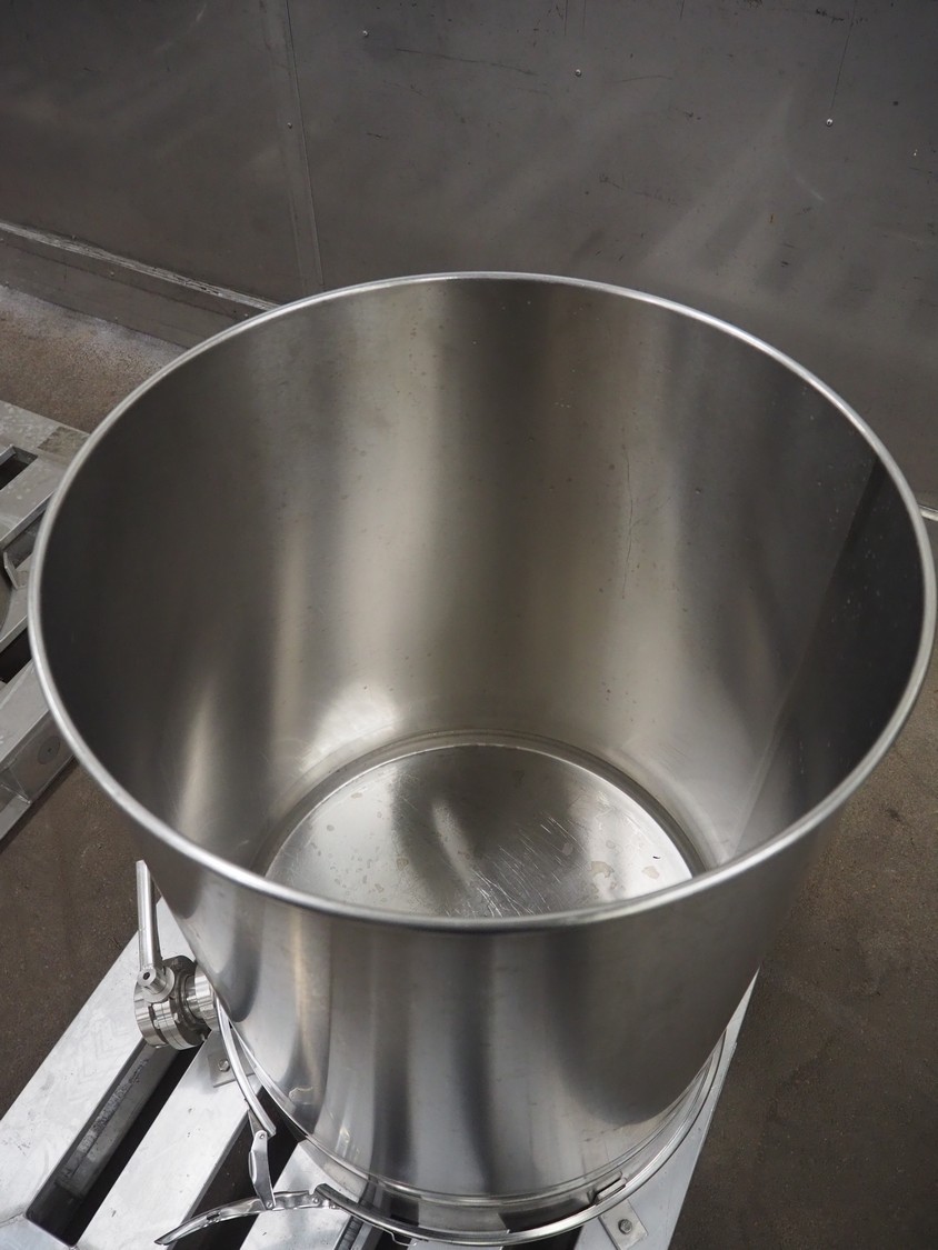S/s tank, inside dimensions: 600 mm x 600 mm x 730 mm, dimensions: 1200 mm x 800 mm x 1030 mm.