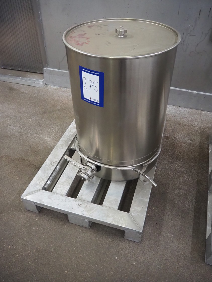 S/s tank, inside dimensions: 600 mm x 600 mm x 730 mm, dimensions: 1200 mm x 800 mm x 1030 mm.