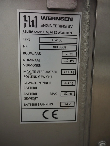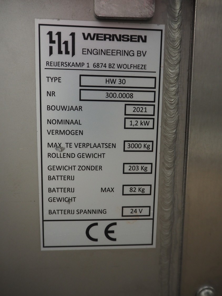 Wernsen s/s mover, type: HW 30, number: 300.0008, year of construction: 2021, capacity: 3000 kg, weight: 285 kg, dimensions: 1600 mm x 600 mm x 1050 mm.